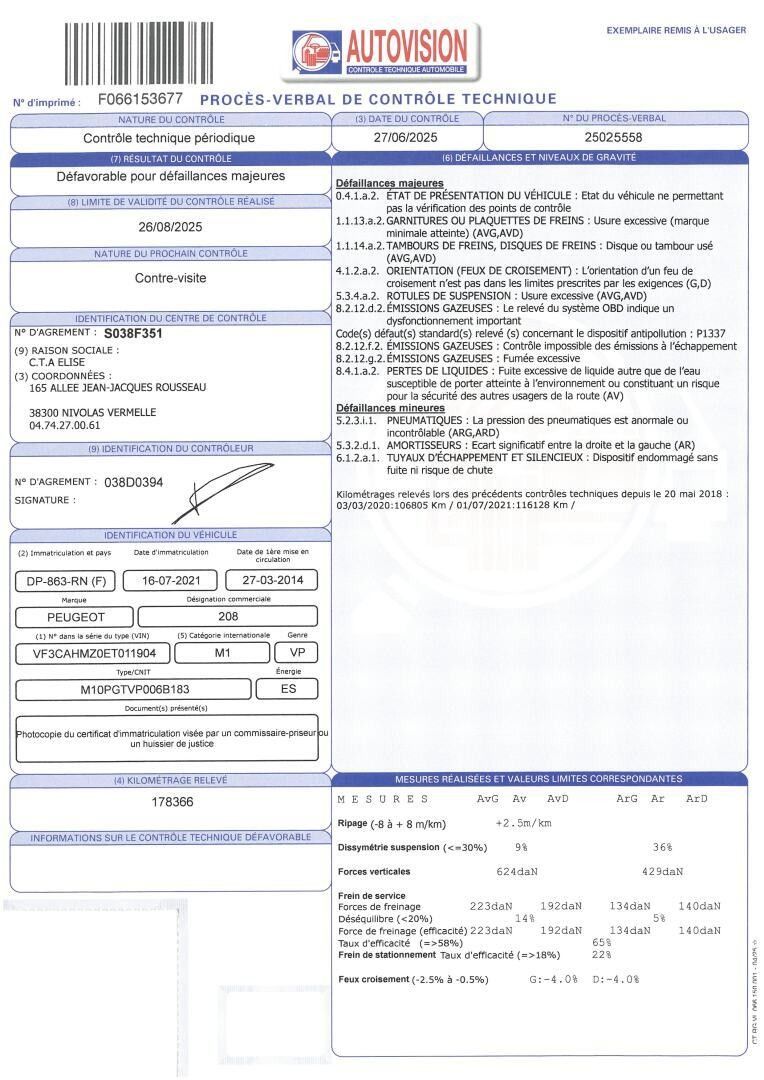 PEUGEOT 208 1.2 PureTech 82ch BVM5 Active - Type: PC - Body: CI - Energy: ES - Colour: WHITE - Odometer reading: 178366 - 1ere M.E.C: 27/03/2014 - Power: 4 - Recoverable VAT - Mine type: M10PGTVP006B183 - Seats: 5 - Remarks: Battery to be replaced, engine warning light, engine slamming