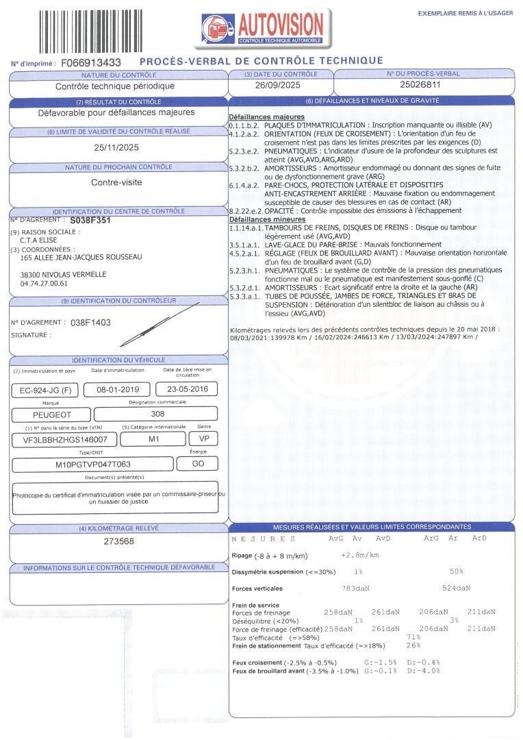 PEUGEOT 308 1.6 BlueHDi 120ch S&S BVM6 Allure - Type : VP - Body : CI - Energy : GO - Color : BLACK - Mileage : 273567 - 1ere M.E.C : 23/05/2016 - Power : 5 - Type mines : M10PGTVP047T063 - Seats : 5 - Equipment : USB / CLIM / GPS / BLUETOOTH / RADAR DE RECUL / FRAIS : 14.28% + 100€ MISE A DISPOSITION