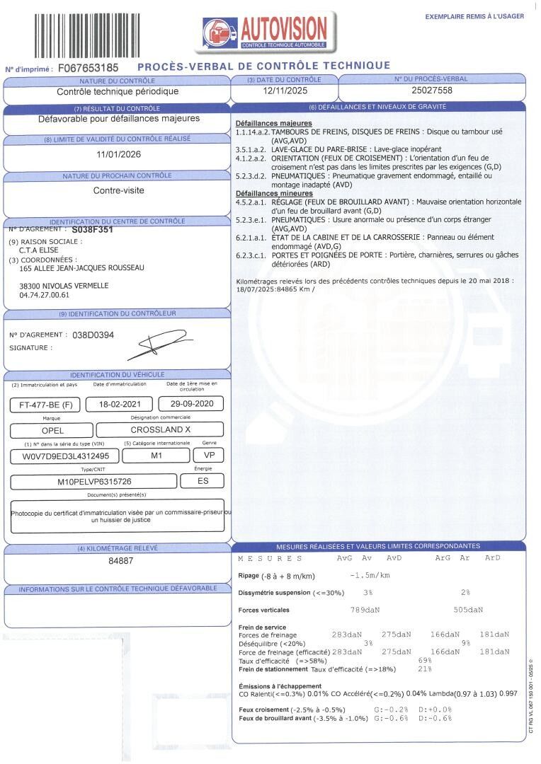 OPEL Crossland X 1.2 TURBO 110CH OPEL 2020 6CV - Type : PC - Body : CI - Energy : ES - Color : DARK GREY - Mileage : 84866 - 1ere M.E.C : 29/09/2020 - Power : 6 - Tva récupérable - Type mines : M10PELVP6315726 - Seats : 5 - Equipment : BLUETOOTH / REVERSING CAMERA / AIR CONDITIONING / REVERSING RADAR / CHARGES: 14.28% + €100 DISPOSAL / USB