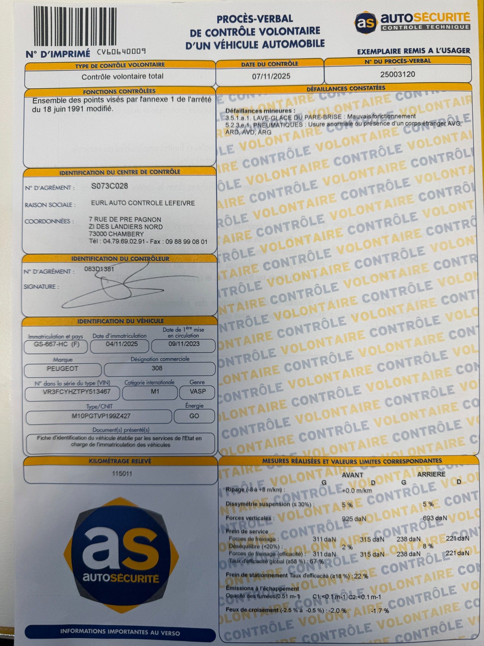 VASP PEUGEOT 308 N° GS-667-HC du 09/11/2023 - 07cv GO - 115 …
