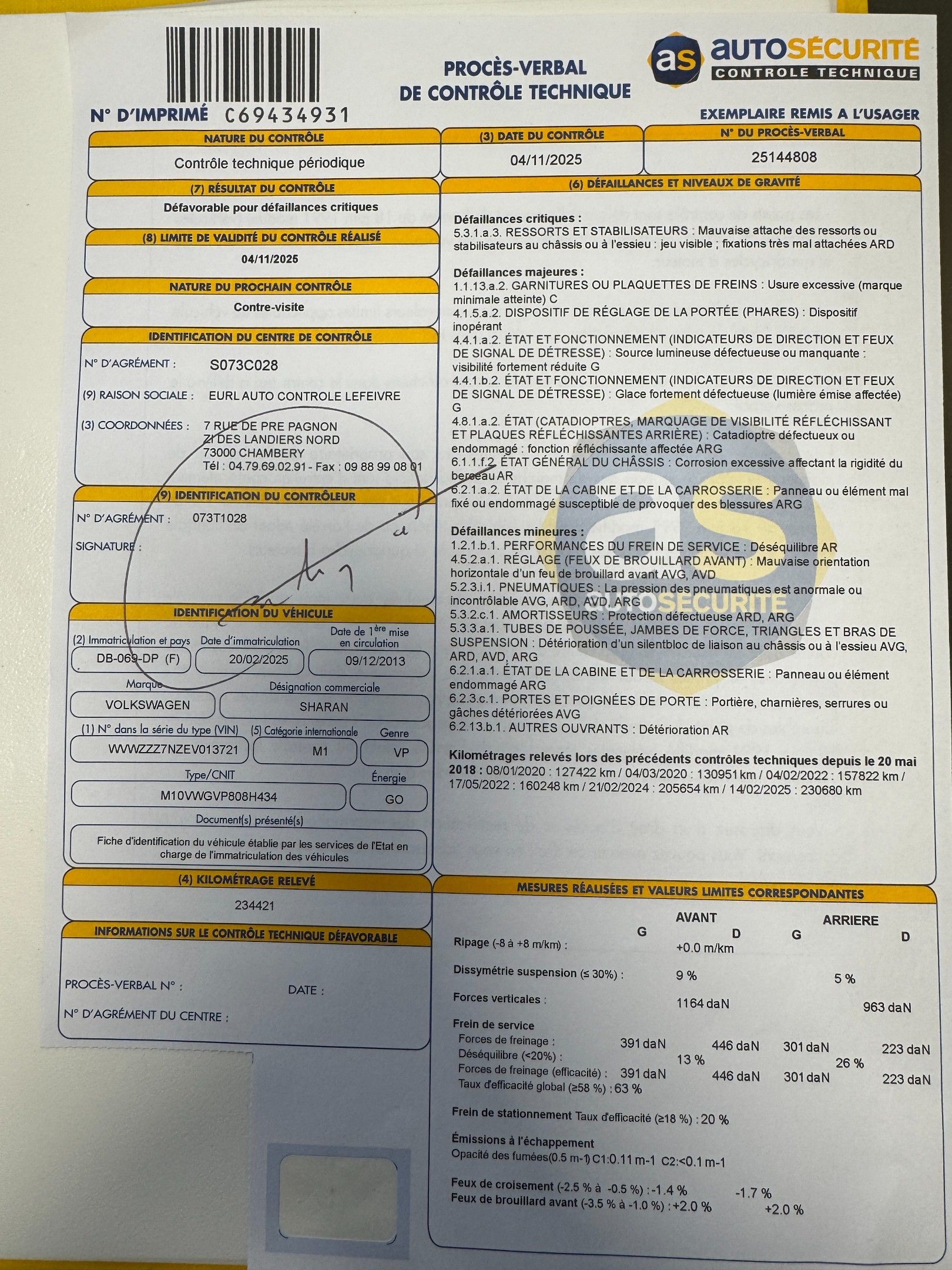 VP VOLKSWAGEN SHARAN N° DB-069-DP du 09/12/2013 - 08cv GO - …