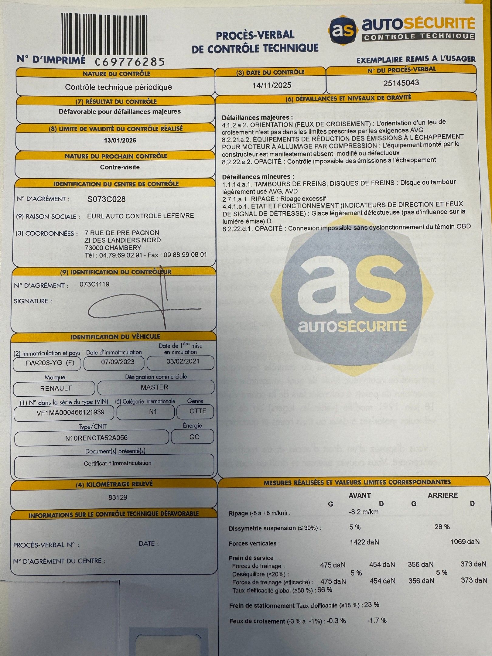 CTTE RENAULT MASTER N°FW-203-YG du 03/02/2021 - 08cv GO - 83…