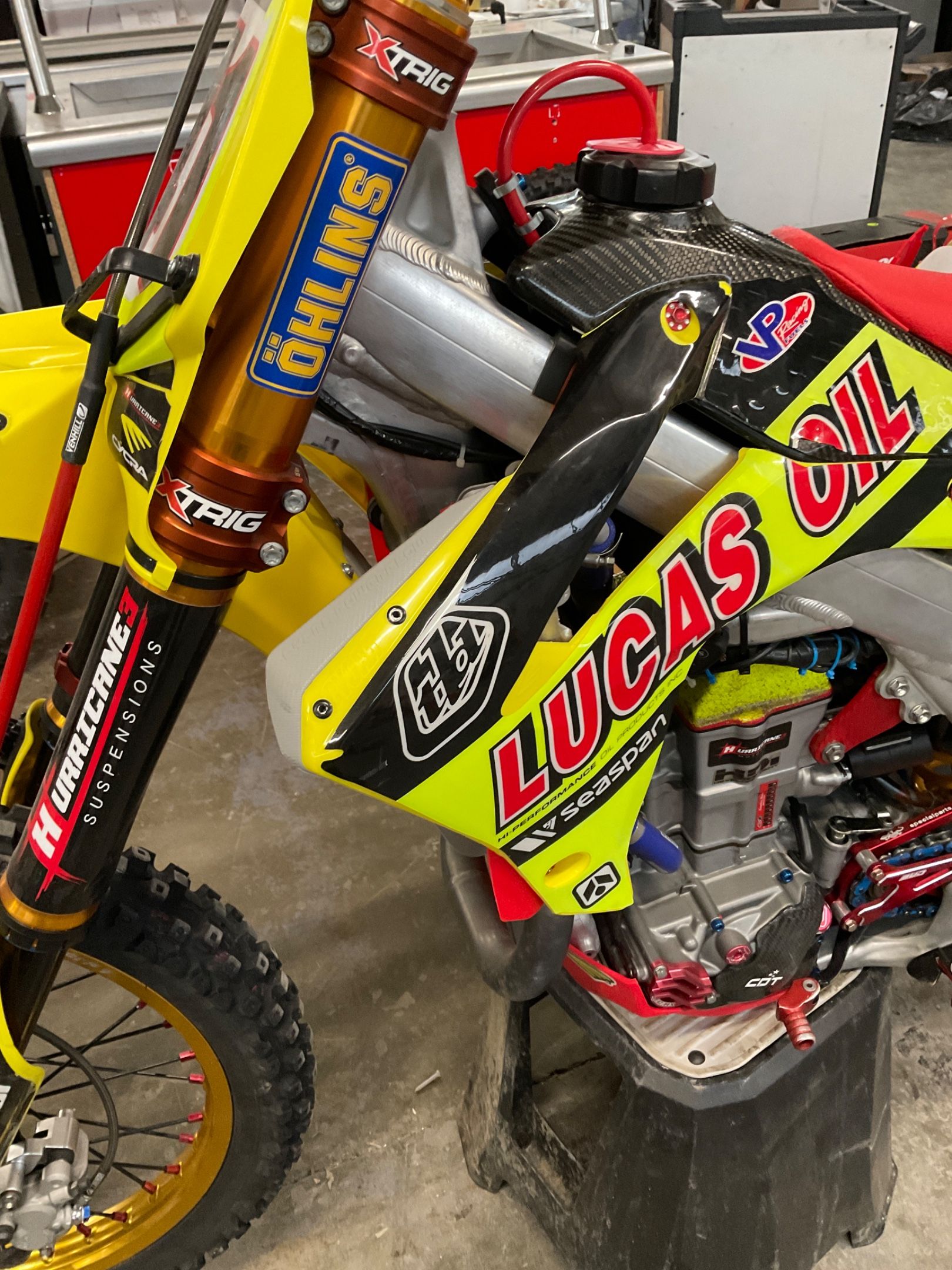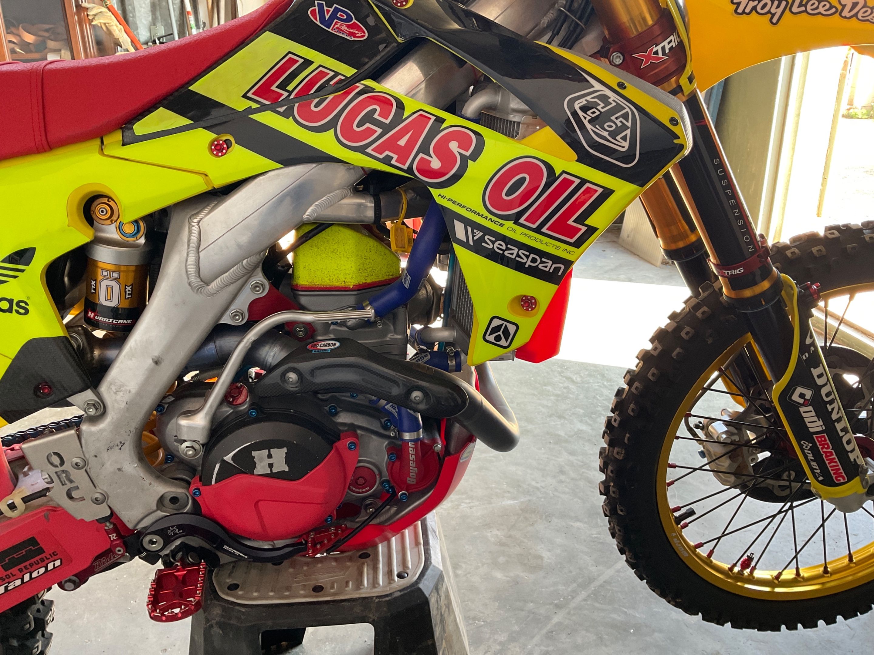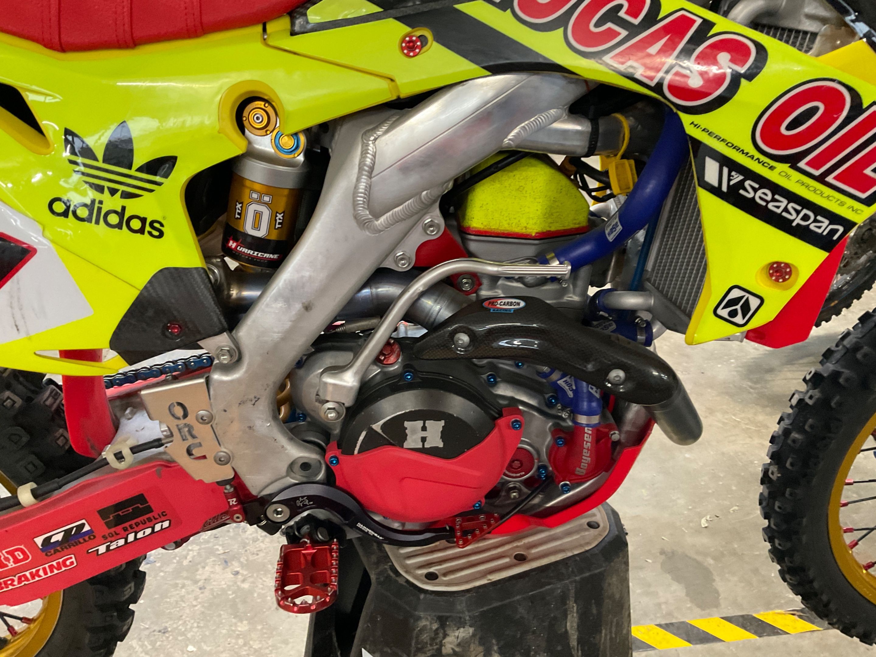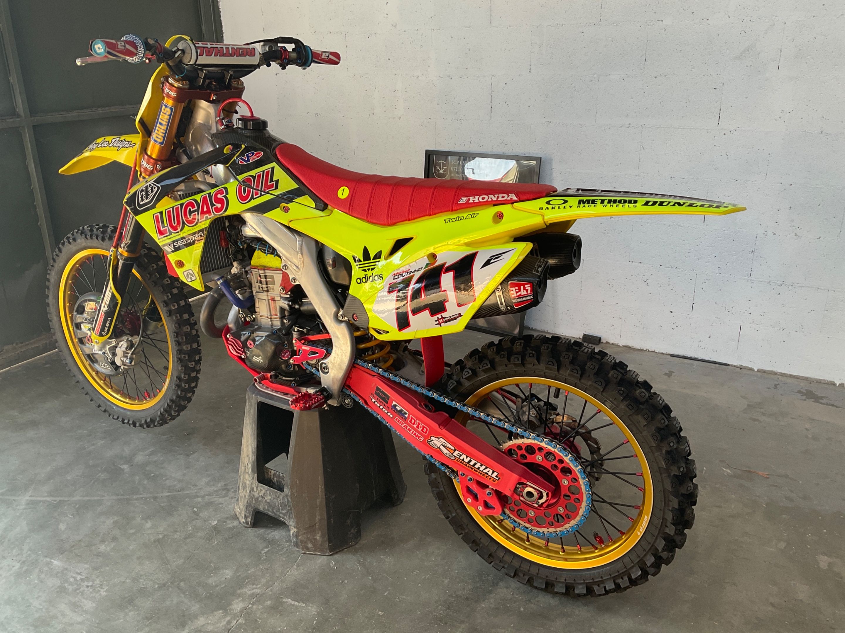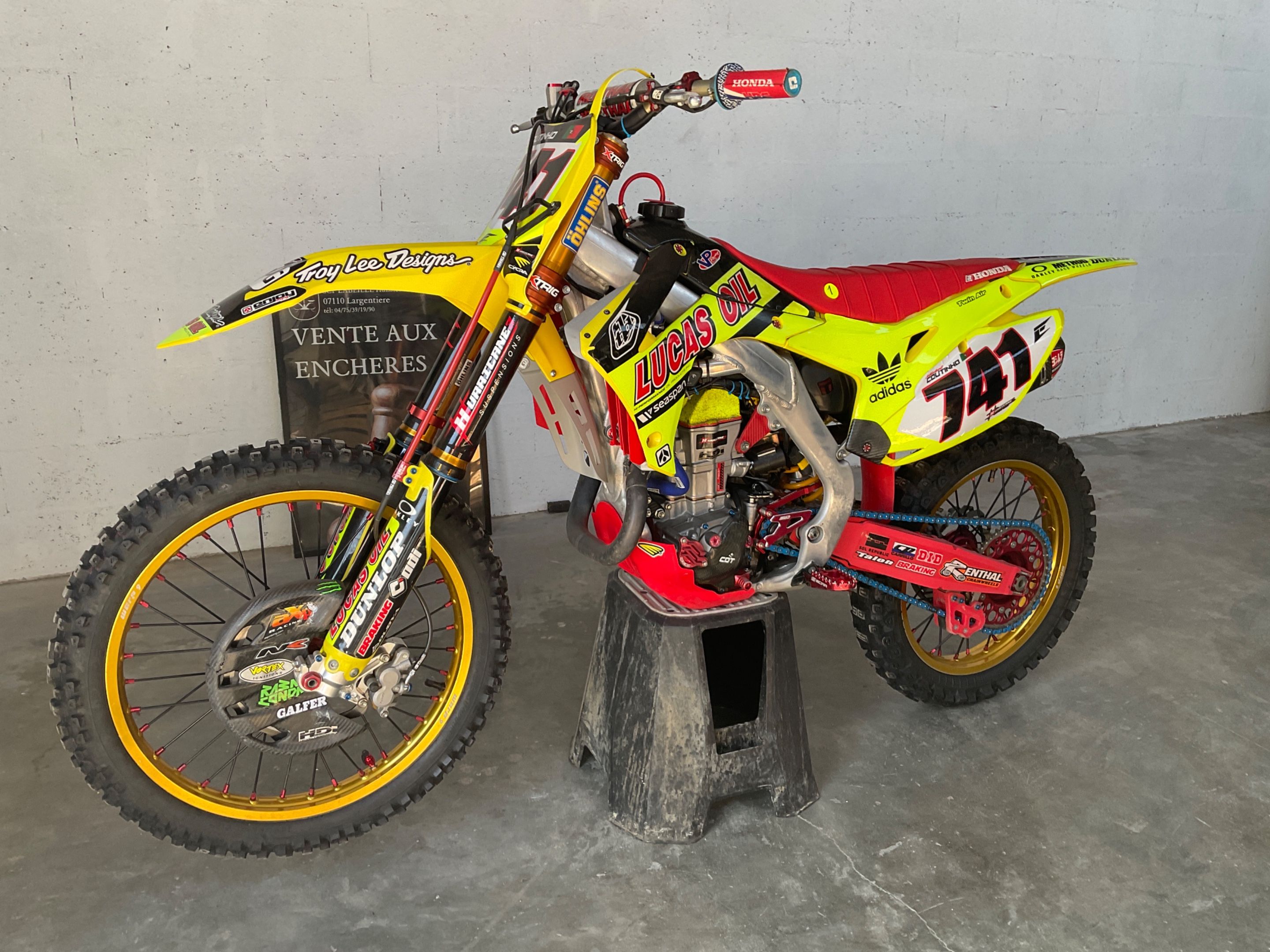 Motorbike HONDA CRF 450 R from 2013 cross with carbon tank and many parts added (exhaust system, YOSH OHLINS front and rear suspensions, WARP 9 wheels complete clutch kit HINSON .) with 44 hours (number of hours not guaranteed)