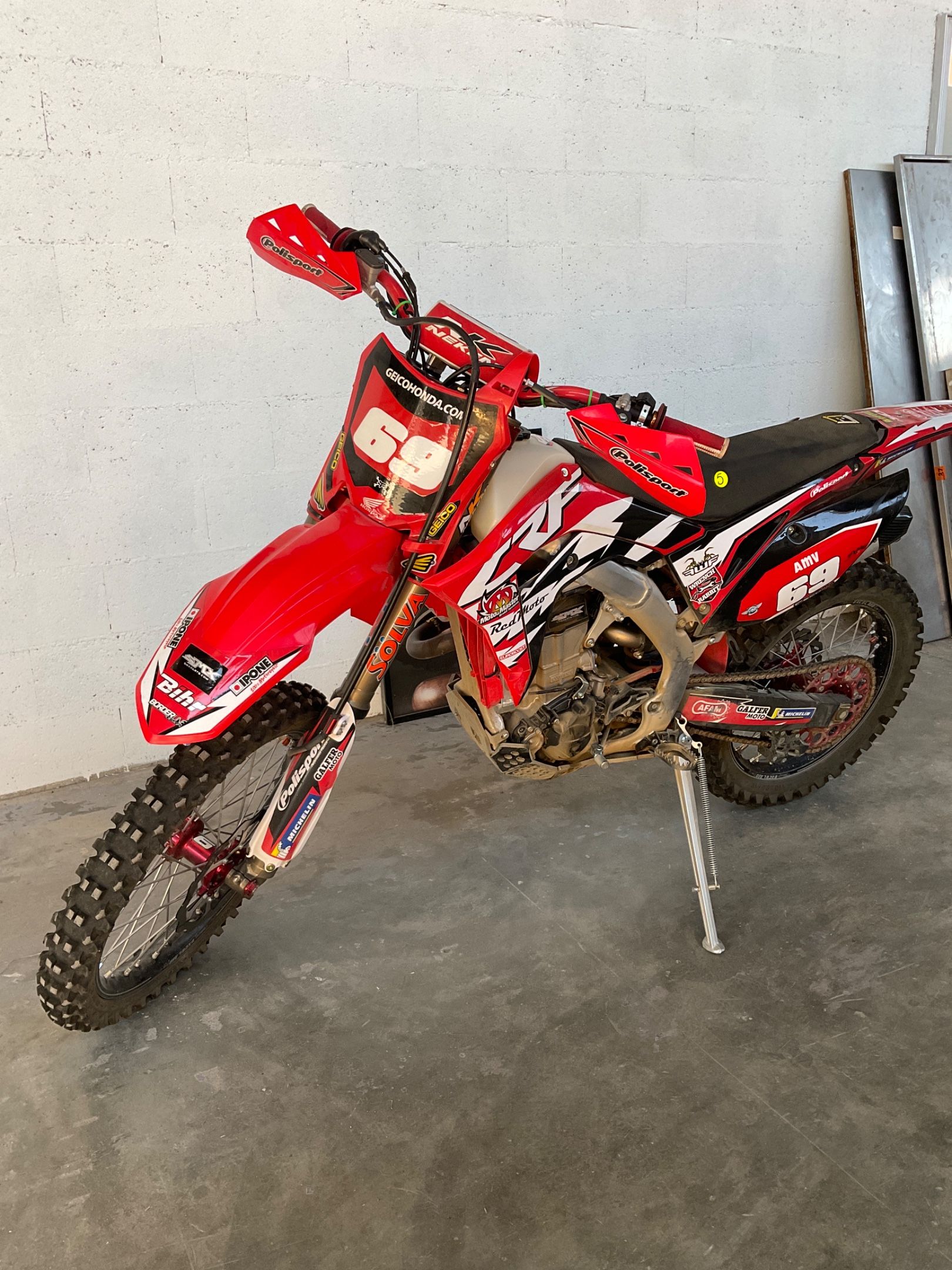 Competition motorbike having belonged BELLINO HONDA 450 rx of 02.2020 with fork And armotissueurs SOLVA, wheels HAAN WEELS A60 with kit plastic enduro origin