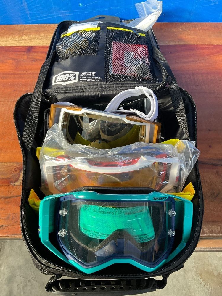 Case containing 3 SCOTT masks with visors and miscellaneous items
