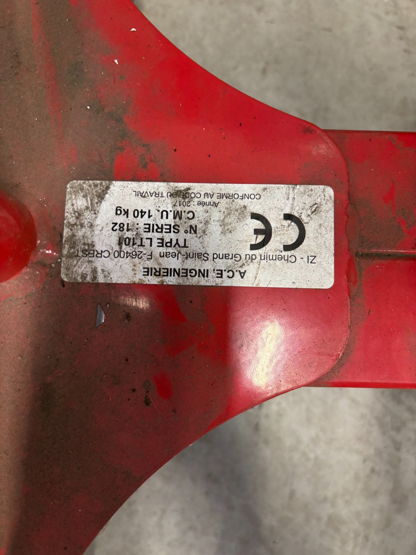 2 pneumatic jacks, 2 MEKABOY wheel carriers including 1 red and 1 black, all sold as is, Display on Wednesday 19/11/2025 from 10am to 11am in 38280 JANNEYRIAS, Collection on Thursday 27/11/2025 from 8am to 6pm in 38280 JANNEYRIAS (following Judicial Liquidation, Mandataire Judiciaire SELARL ALLIANCE MJ, according to sale order dated 05/08/2025)