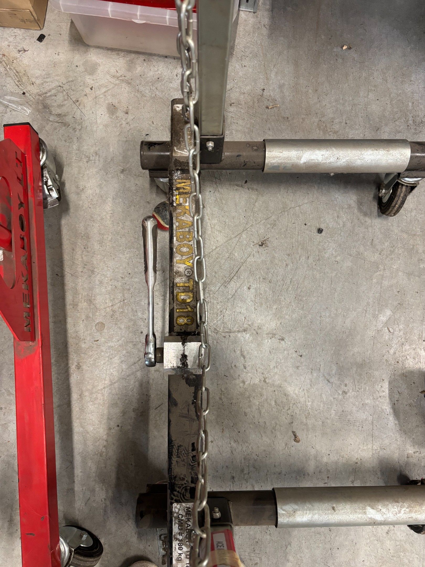 2 pneumatic jacks, 2 MEKABOY wheel carriers including 1 red …