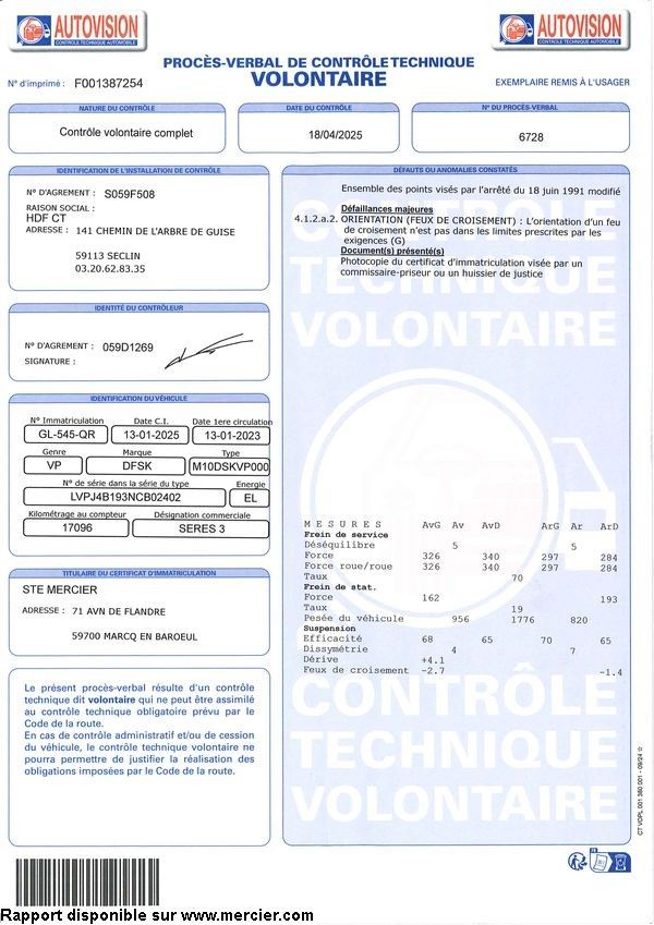 VP SERES 3 ELECTRIC 165CH 53,6 kWh LUXURY BVA - Dmec : 13/01/2023-17091Kms-4CV-Body : BREAK-Energy : EL-Color : BLEU-TVA non récupérable-Observations : carte grise sous 1 mois ecran central à verifier :fonctionne 1 fois / 2 -Equipements : 5 SEATS/5 DOORS/AUTO RADIO/BLUETOOTH/AUTO BOX/AIR CONDITIONING/RAIN SENSOR/LIGHT SENSOR/CENTRAL LOCKING/18 INCH ALLOY WHEELS/USB SOCKET/REGULATION AND LIMITER/REAR RADAR/WHEEL MOUNTED RADIO/ELECTRIC MIRRORS/KEYLESS START/LEATHER SEATS/HEATED SEATS/SUNROOF/PANORAMIC ROOF/ELECTRIC WINDOWS/AVAILABLE REGISTRATION CARD
