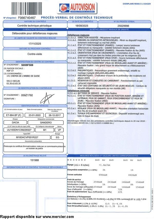 VP DACIA SANDERO STEPWAY 0.9TCE GPL - Dmec: 28/12/2017-151983Kms-5CV-Bodywork: CI-Energy: EG-Color: BROWN-Non-recoverable VAT-Observations: /carte grise sous 1 mois -Equipements : 5 SEATS/5 DOORS/AUTO RADIO/BLUETOOTH/5 GEARBOX/MANUAL AIR CONDITIONING/REVERSING CAMERA/CENTRAL LOCKING/GPS//REGULATION AND LIMITER/REAR RADAR/WHEEL-MOUNTED RADIO/ELECTRIC MIRRORS/ELECTRIC WINDOWS/