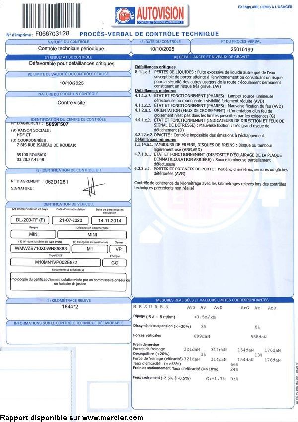 VP MINI COUNTRYMAN 2.0 SD 145CH JOHN COOPER WORKS BVA - Dmec: 14/11/2014-184464Kms-8CV-Body : BREAK-Energy : GO-Color : VIOLET-TVA non récupérable-Observations : NO POWER -Equipment: 5 DOORS/AIRBAG FRONT PILLAR/ABS/AUTO RADIO/BLUETOOTH/ROBOTISED GEARBOX/CD CHARGER/AUTO AIR CONDITIONING/ASSISTED STEERING/ESP/CENTRAL LOCKING/GPS/18 INCH ALLOY WHEELS/FOG LAMPS/REGULATION AND LIMITER/REAR RADAR/RADIO STEERING WHEEL CONTROLS/ELECTRIC MIRRORS/ELECTRIC WINDOWS/REAR ELECTRIC WINDOWS/AVAILABLE GREY CARD