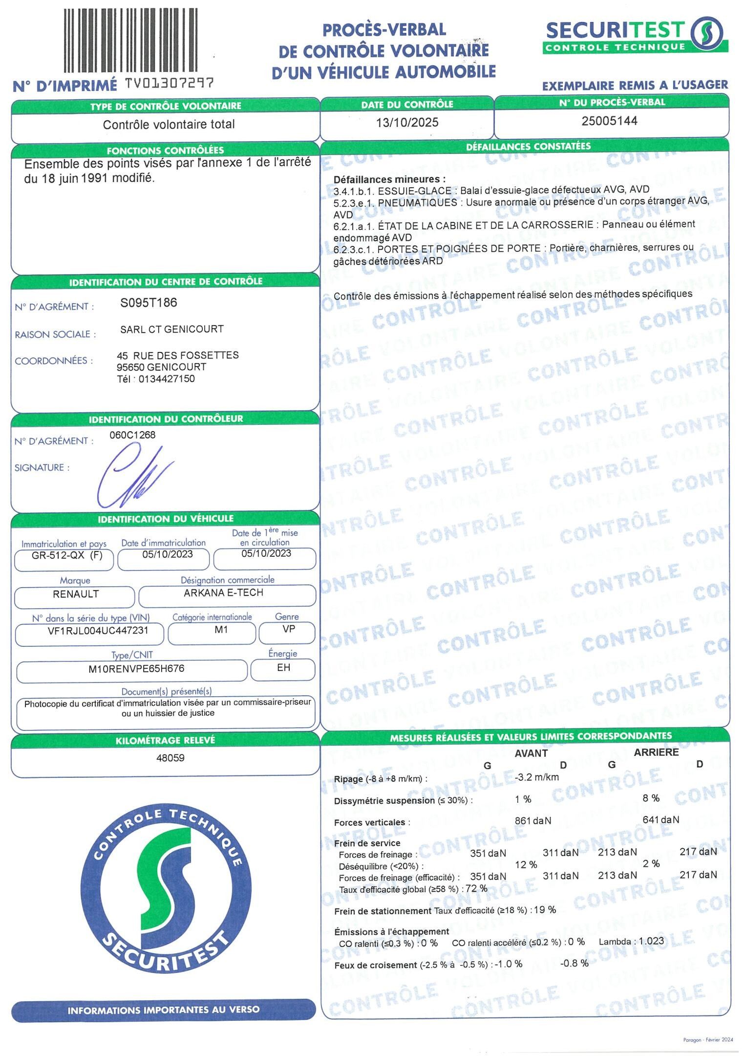 RENAULT ARKANA E-TECH 1.6 I GPF 145 HYBRID 95 CH - Type : PC - Body : CI - Energy : EH - Colour : GRIS - Mileage : 48058 - 1ere M.E.C : 05/10/2023 - Power : 5 - VAT recoverable - Remarks : VOLUNTARY 13 % VAT included + 200 € Administration fees (+ 48 € VAT included in case of purchase on live)
