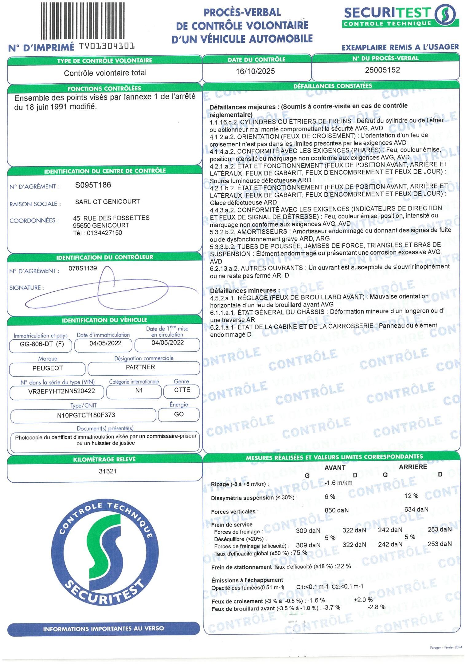 1 CLEF - VERY BAD BODY - Dirty INTERIOR - OPENING ¨ REAR DOOR + LAT DOOR IMPOSSIBLE NO KEY FOR ANTI-THEFT - VERY IMPORTANT TOLERANCE ON THE 2 SIDEWALLS - BA SDE CHEST BEAMED - REAR LIGHT BROKEN - SCratches ON THE 2 REAR DOORS - Equipment : SPEED LIMITER / ELECTRIC MIRRORS / ELECTRIC WINDOWS / AIR CONDITIONING / REAR PARKING AID / RADIO CD / SIDE DOOR / CRUISE CONTROL / ROOF RACK / STEERING WHEEL CONTROLS