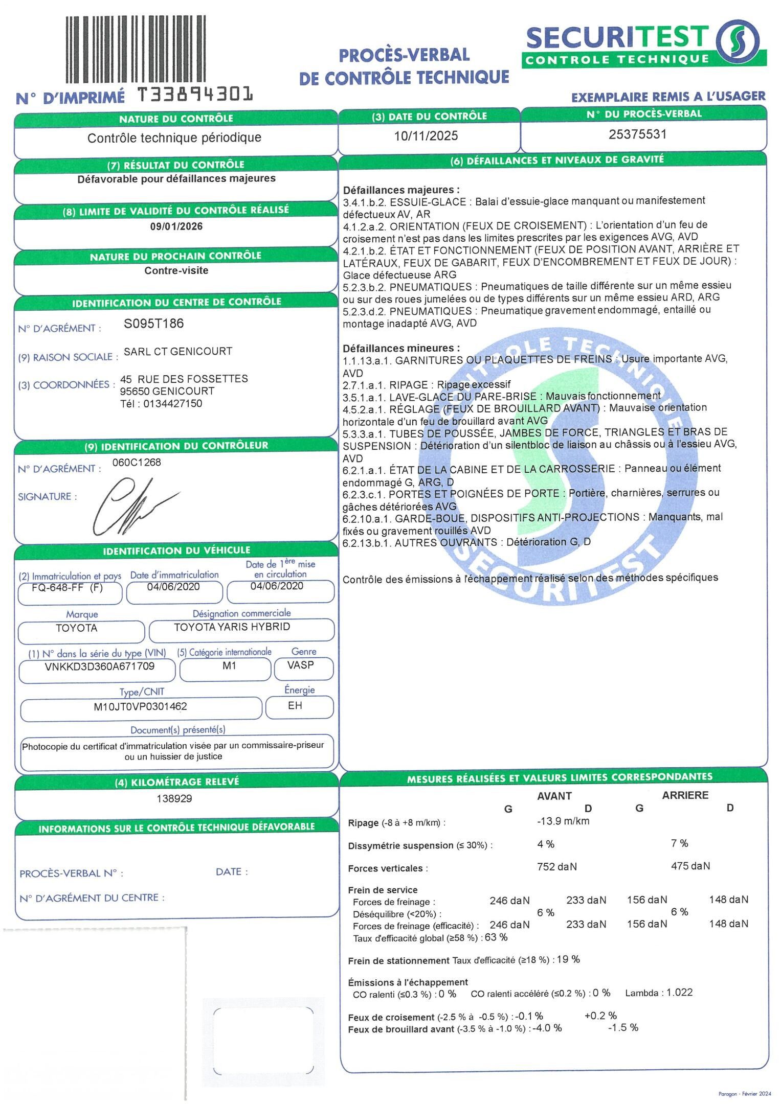 TOYOTA YARIS 1.5 VVTI HSD HYBRID 100 H E.CUT 75 CH - Type : VASP - Body : DERIV VP - Energy : EH - Mileage : 138928 - 1ere M.E.C : 04/06/2020 - Power : 3 - VAT recoverable - Remarks : Judicial sales fees 14.28 % + 48 € TTC en cas d'achat sur le live - JUDICIAL SOLD IN THE STATE WITHOUT CLAIM - VAT RECOVERABLE FOR PROFESSIONALS - SOLD WITH IDENTIFICATION FORM + FORMULA - 1 KEY - VERY IMPORTANT TOLING ON THE WHOLE VEHICLE - VERY SALE INTERIOR - REPLACED SHIELD - 1 KEY - Equipment : ELECTRIC MIRRORS / ELECTRIC WINDOWS / REAR PARKING AID / AIR CONDITIONING / CRUISE CONTROL / SPEED LIMITER / RADIO CD