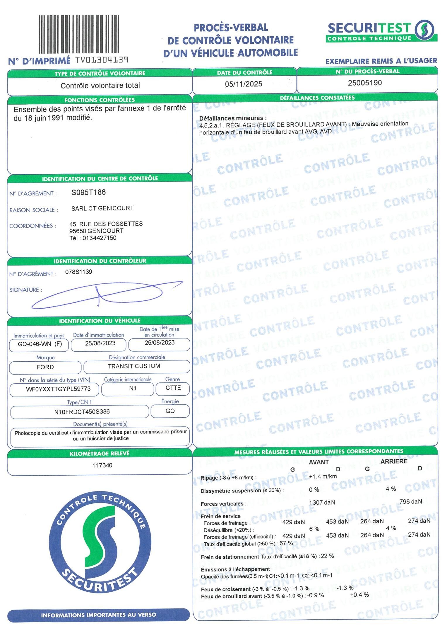 FORD CUSTOM VAN TREND BU 320 L2H1 ECOB 130 TYPE 06-22 - Type : CTTE - Body : FOURGON - Energy : GO - Color : BLANC - Mileage : 117338 - 1ere M.E.C : 25/08/2023 - Power : 7 - VAT recoverable - Seats : 3 - Remarks : Sales charges VOLUNTARY 15 % VAT included + 500 € Administration fees (+ 48 € VAT included in case of purchase on live)
