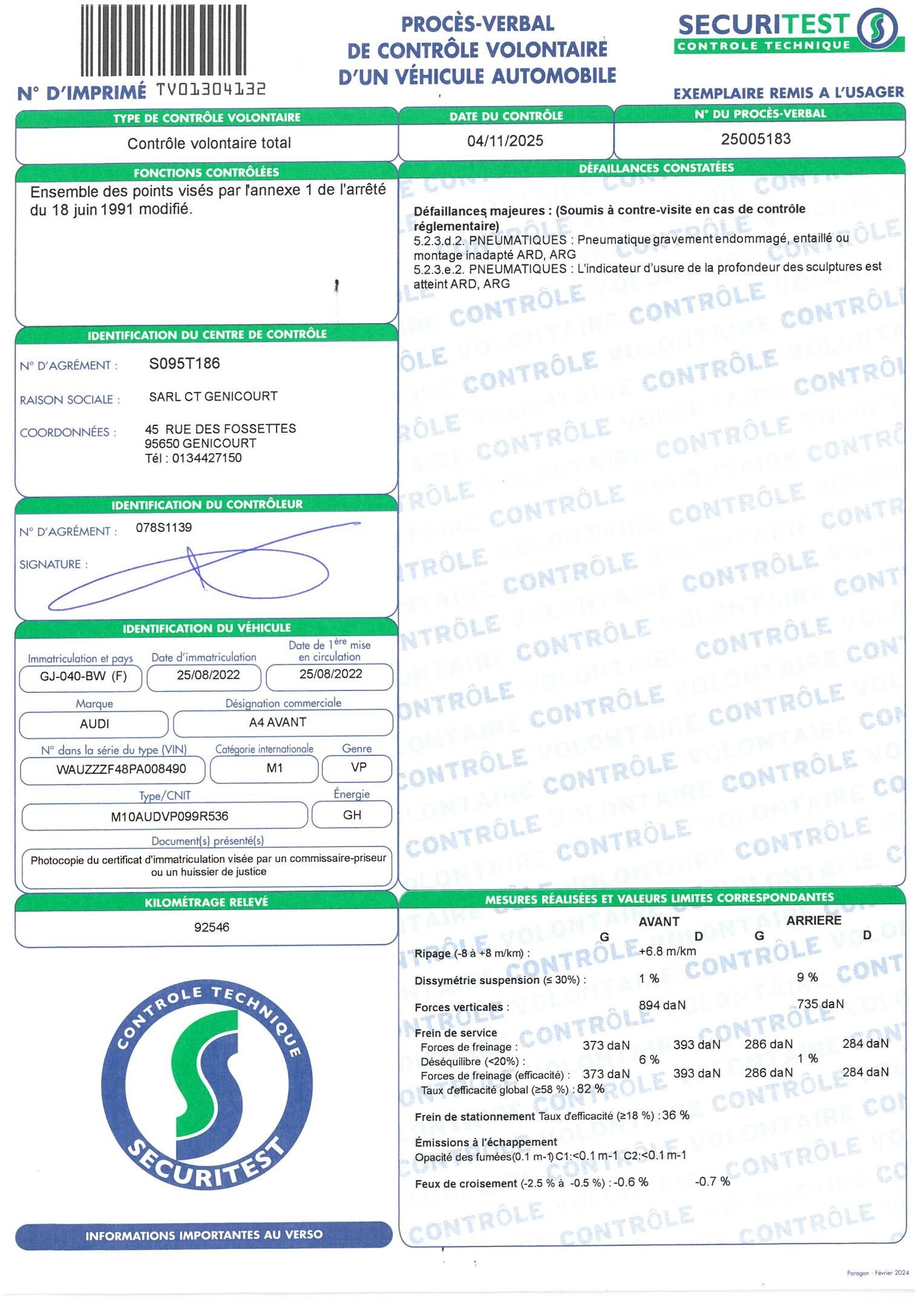 AUDI A4 AVANT 40 TDI 204 S TRONIC 7 S LINE BREAK 5 P - Type: Passenger car - Body: BREAK - Energy: GH - Colour: BLACK - Odometer reading: 92546 - 1st C.E.M.: 25/08/2022 - Power: 11 - Recoverable VAT - Seats: 5 - Remarks: VOLUNTARY 13 % VAT incl. + 300 € handling fee (+ 48 € VAT incl. in case of purchase on live)