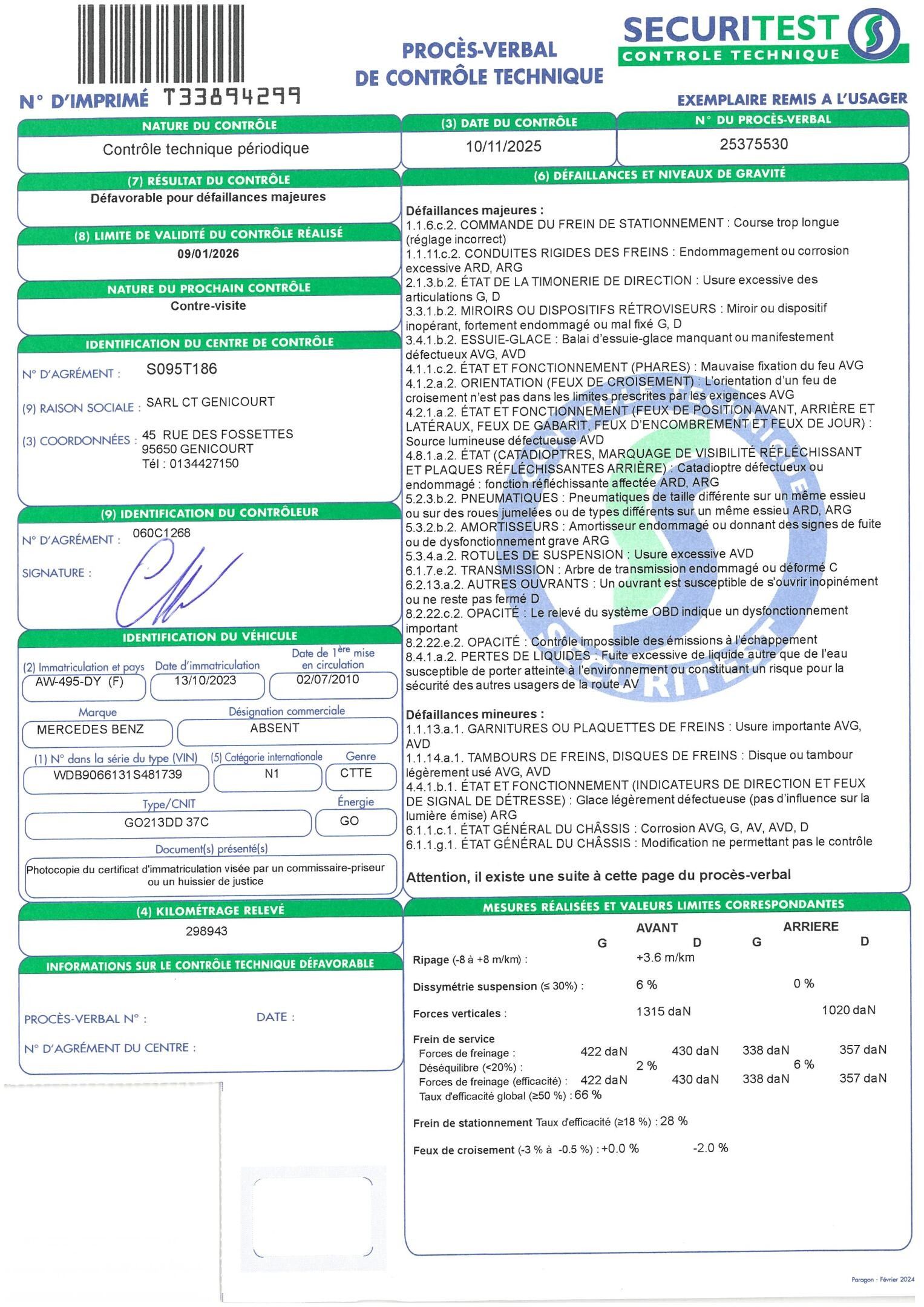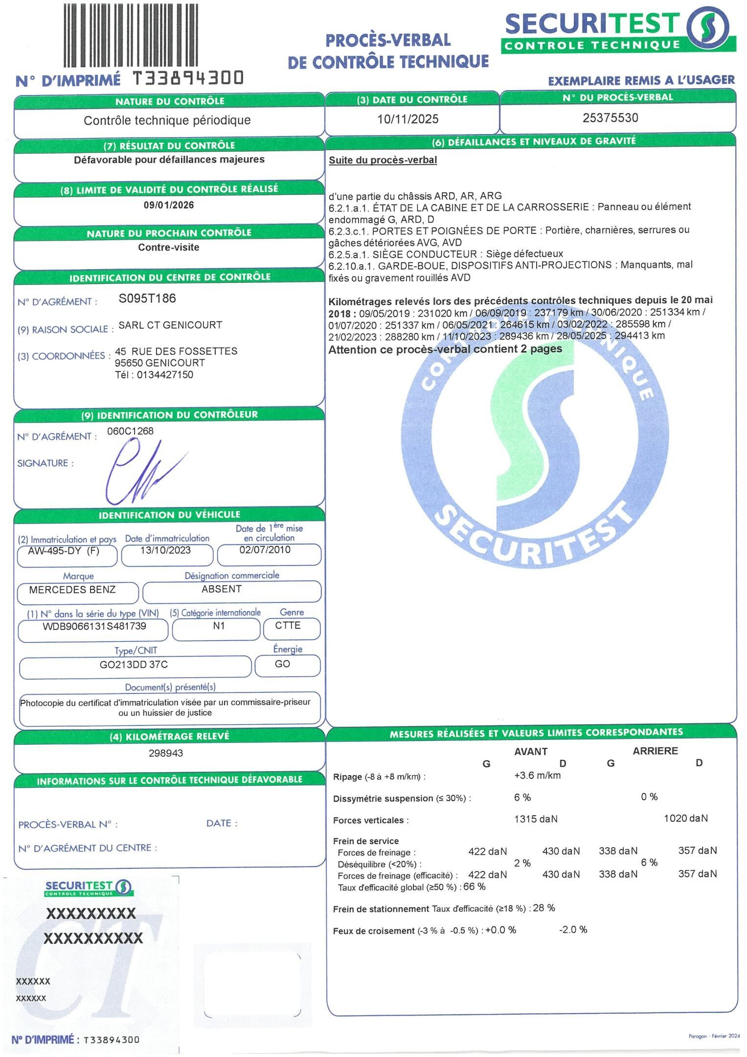 MERCEDES SPRINTER 213 CDI 130 CH - Type : CTTE - Body : FOURGON - Energy : GO - Colour : BLANC - Mileage : 298943 - 1ere M.E.C : 02/07/2010 - Power : 7 - VAT recoverable - Remarks : Judicial sales fees 14.28 % + 48 € VAT in case of purchase on the live - JUDICIAL SOLD IN THE STATE WITHOUT CLAIM - VAT RECOVERABLE FOR PROFESSIONALS - SOLD WITH IDENTIFICATION FORM + FORMULA - 1 KEY - ENGINE AND REFRIGERATION LIQUID INDICATOR LIGHTS ON - DAMAGED AND DAMAGED INTERIOR - DAMAGED AND DAMAGED OUT - DAMAGED AND DAMAGED INNER - DAMAGED AND DAMAGED OUT - DAMAGED AND DAMAGED INNER DAMAGED AND DAMAGED INTERIOR - CORROSION OVER THE ENTIRE VEHICLE - VERY MAJOR LAMIN TOLING OVER THE ENTIRE VEHICLE - BROKEN ARG LIGHT - BROKEN RETRO G - HEAVILY DAMAGED SIDE DOOR - Equipment : SPEED LIMITER / ELECTRIC WINDOWS / SIDE DOOR / ELECTRIC MIRRORS / RADIO CD / CRUISE CONTROL
