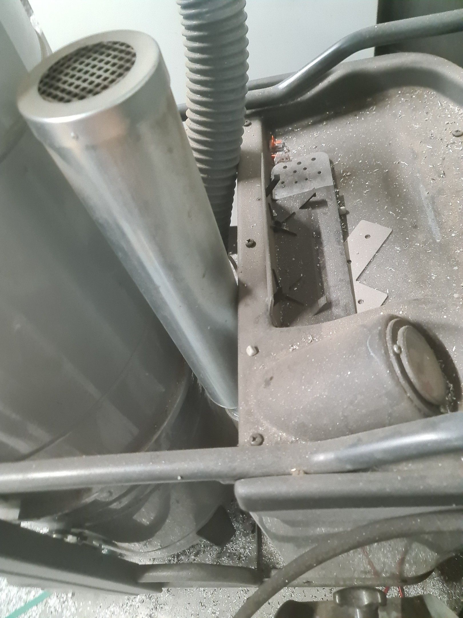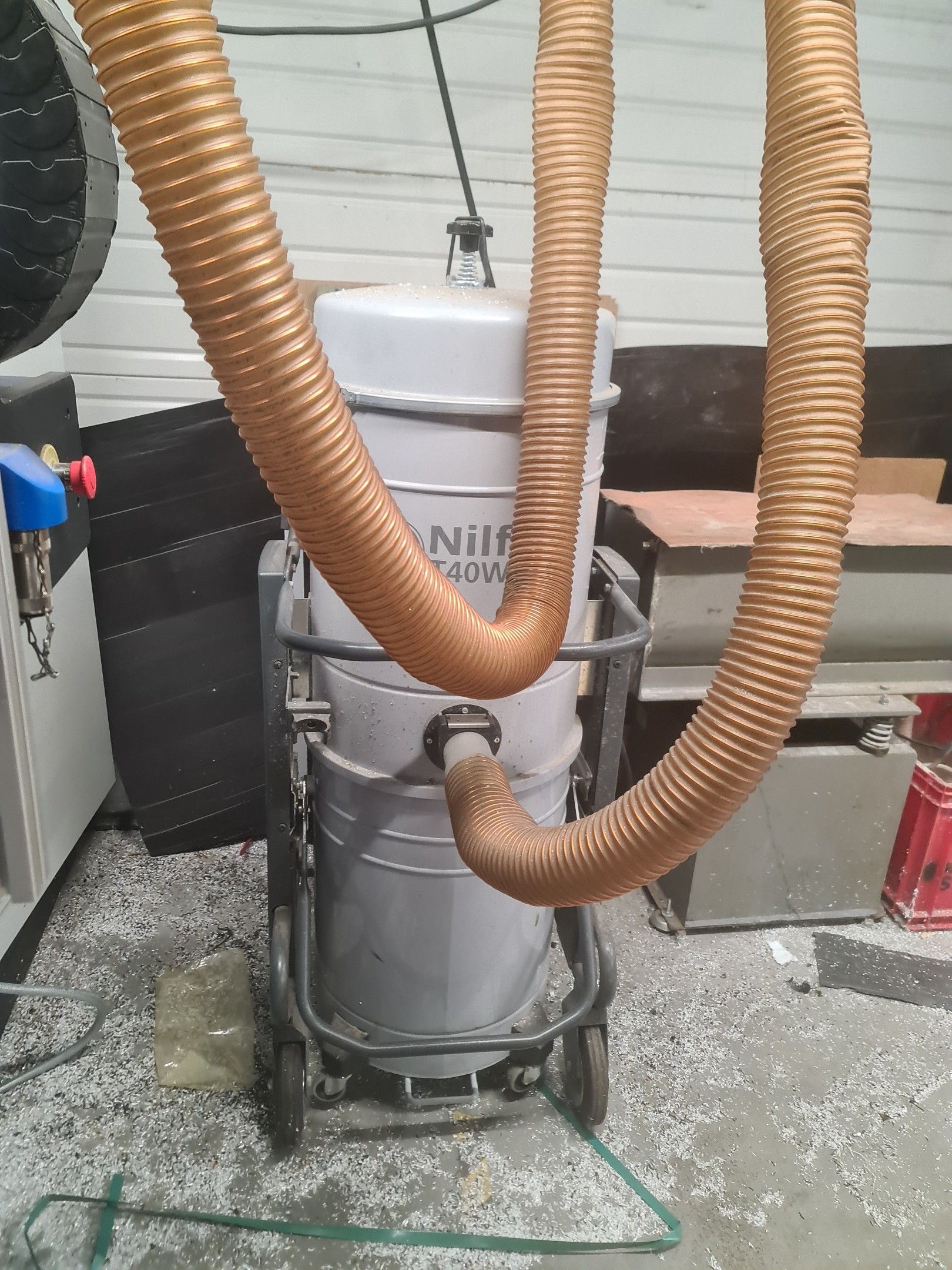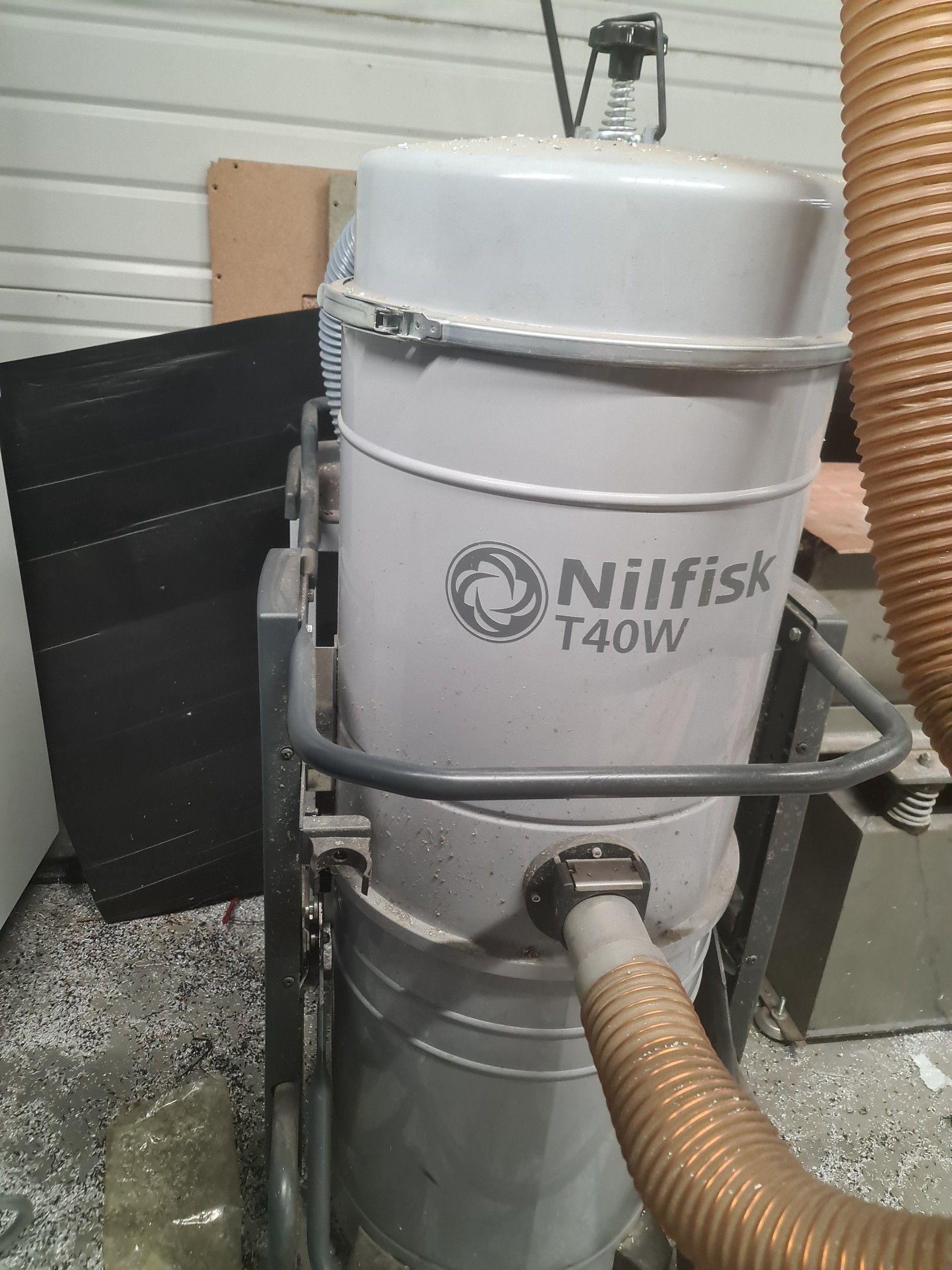 a Nilfisk model T40W professional chip hoover on its metal trolley
