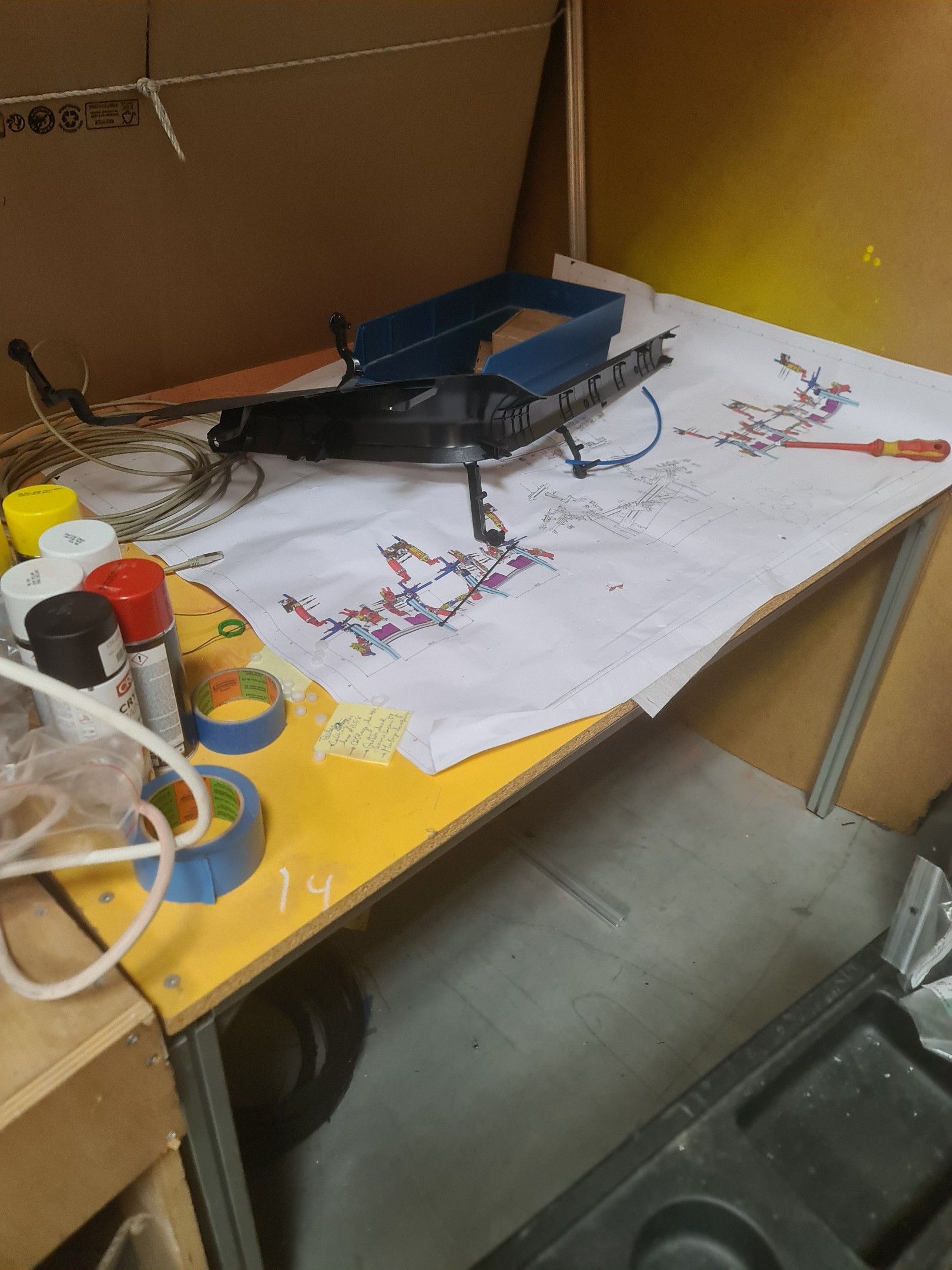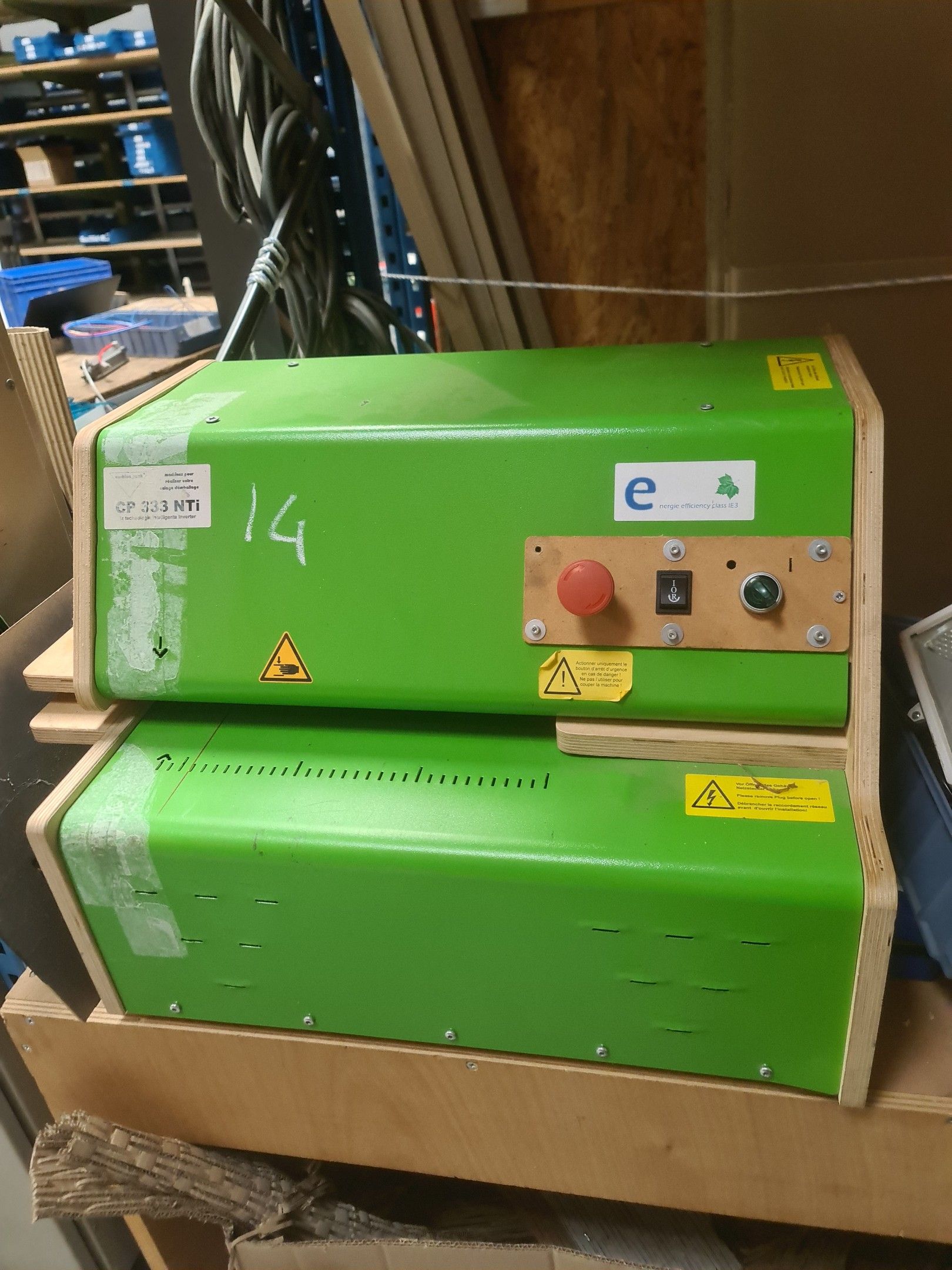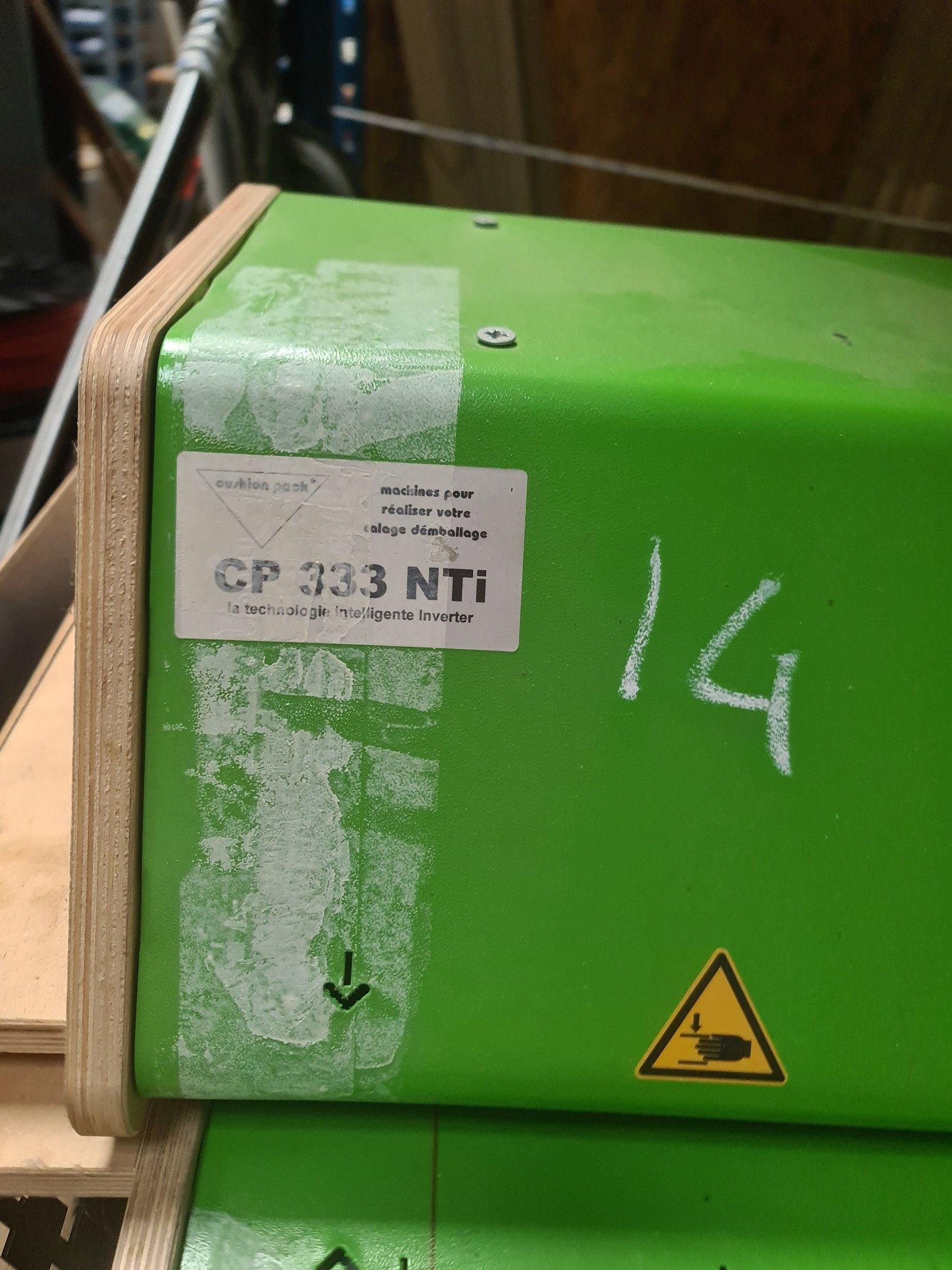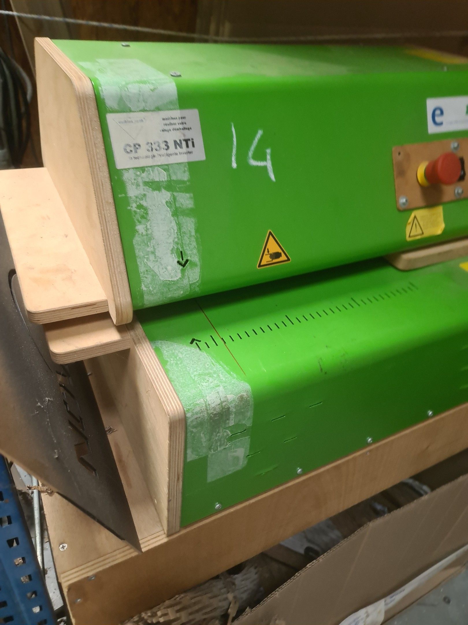 a 2018 Cushion pack CP 333 NTI S2 table wedging machine, 3 halogen lamps and a table.