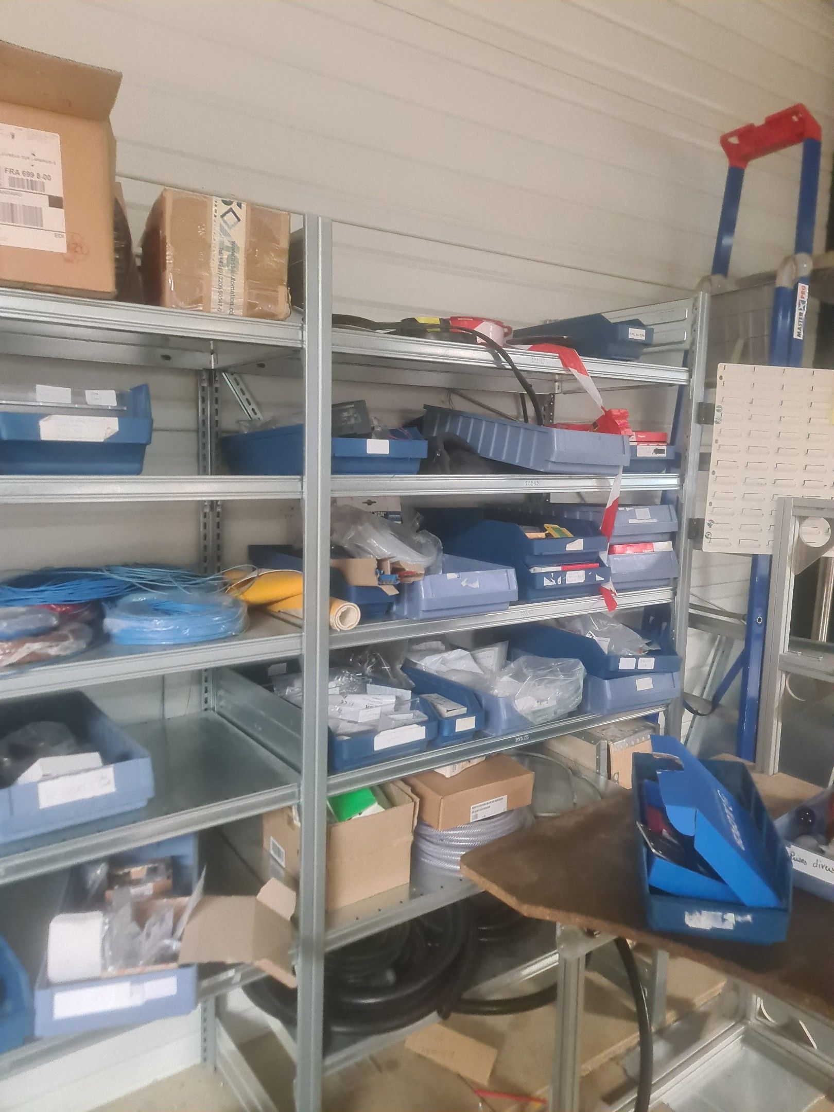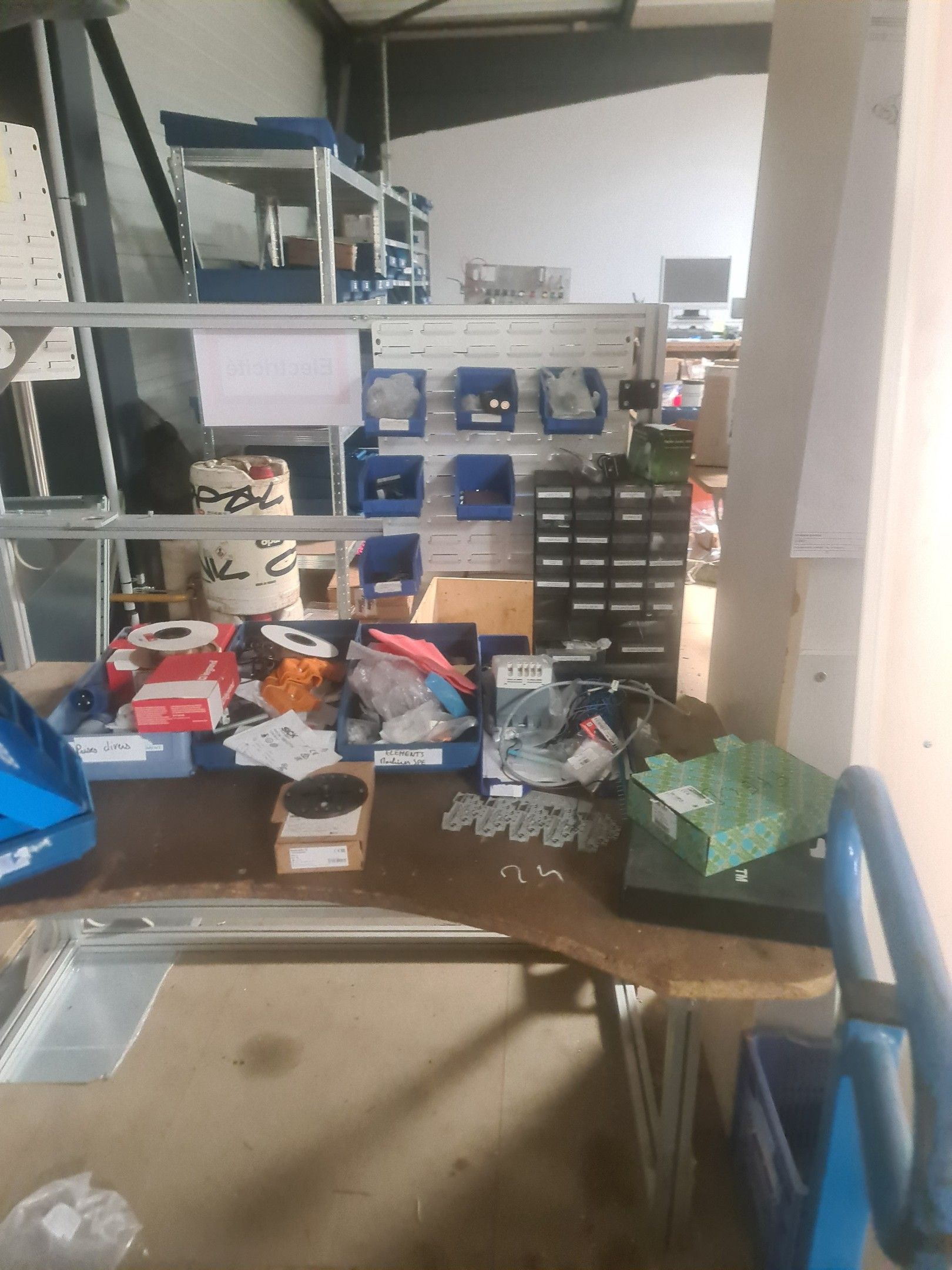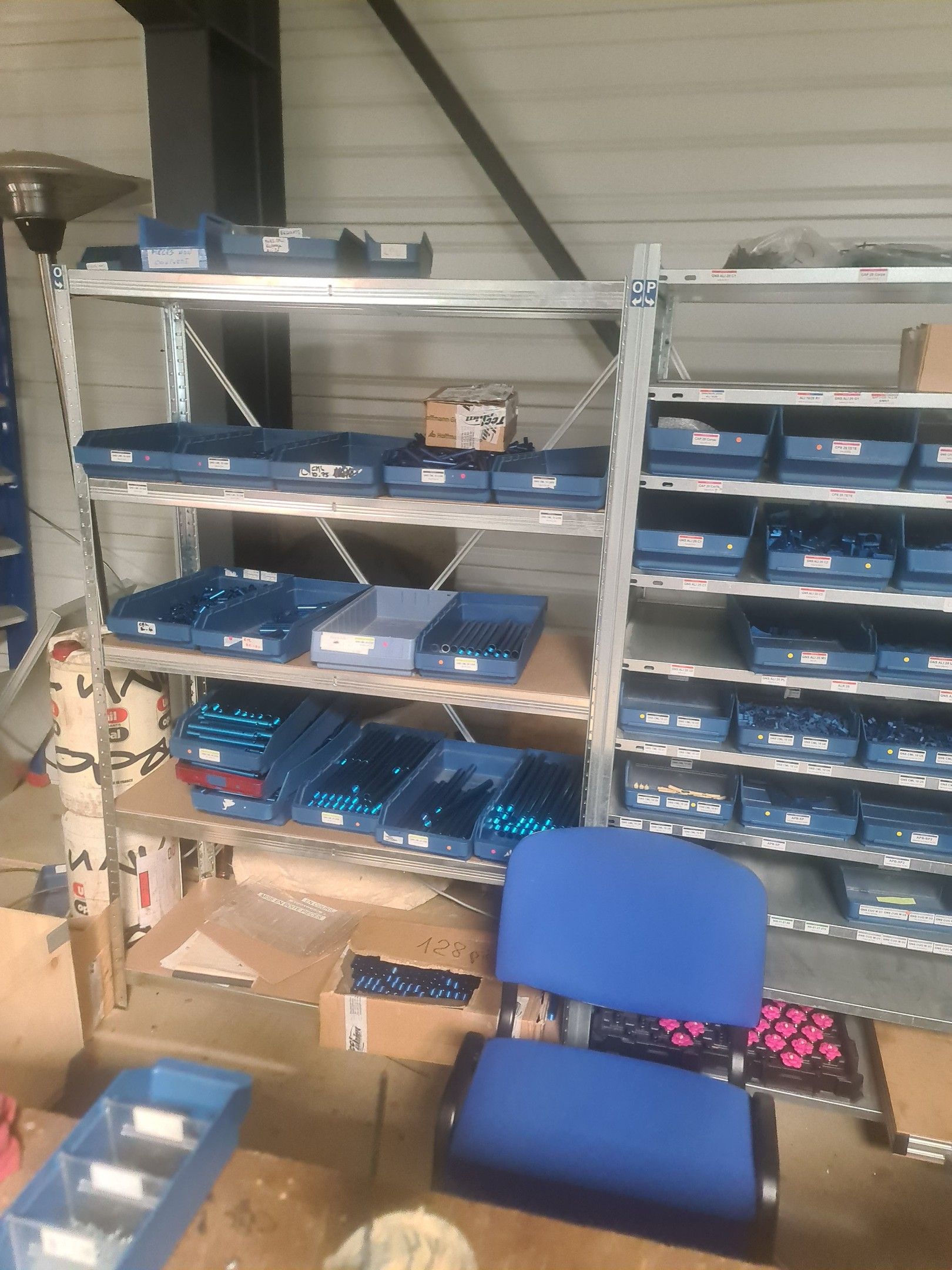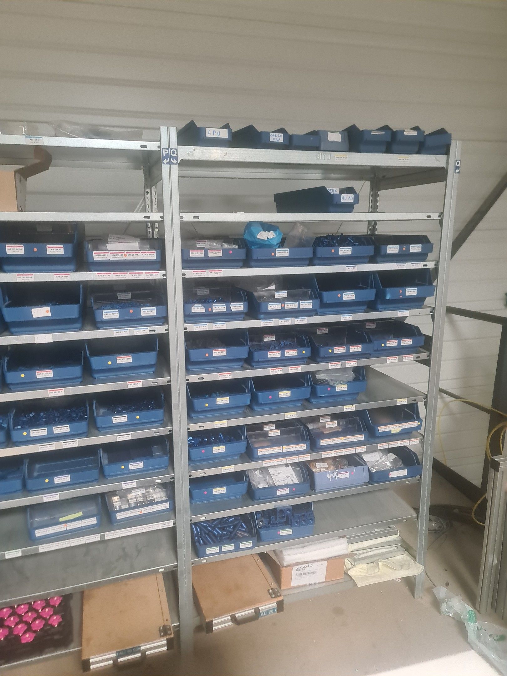 stock of mechanical spare parts, detectors, raw materials, consumables and hardware, mainly of the COVAL, ASS and SIEC brands, in bins