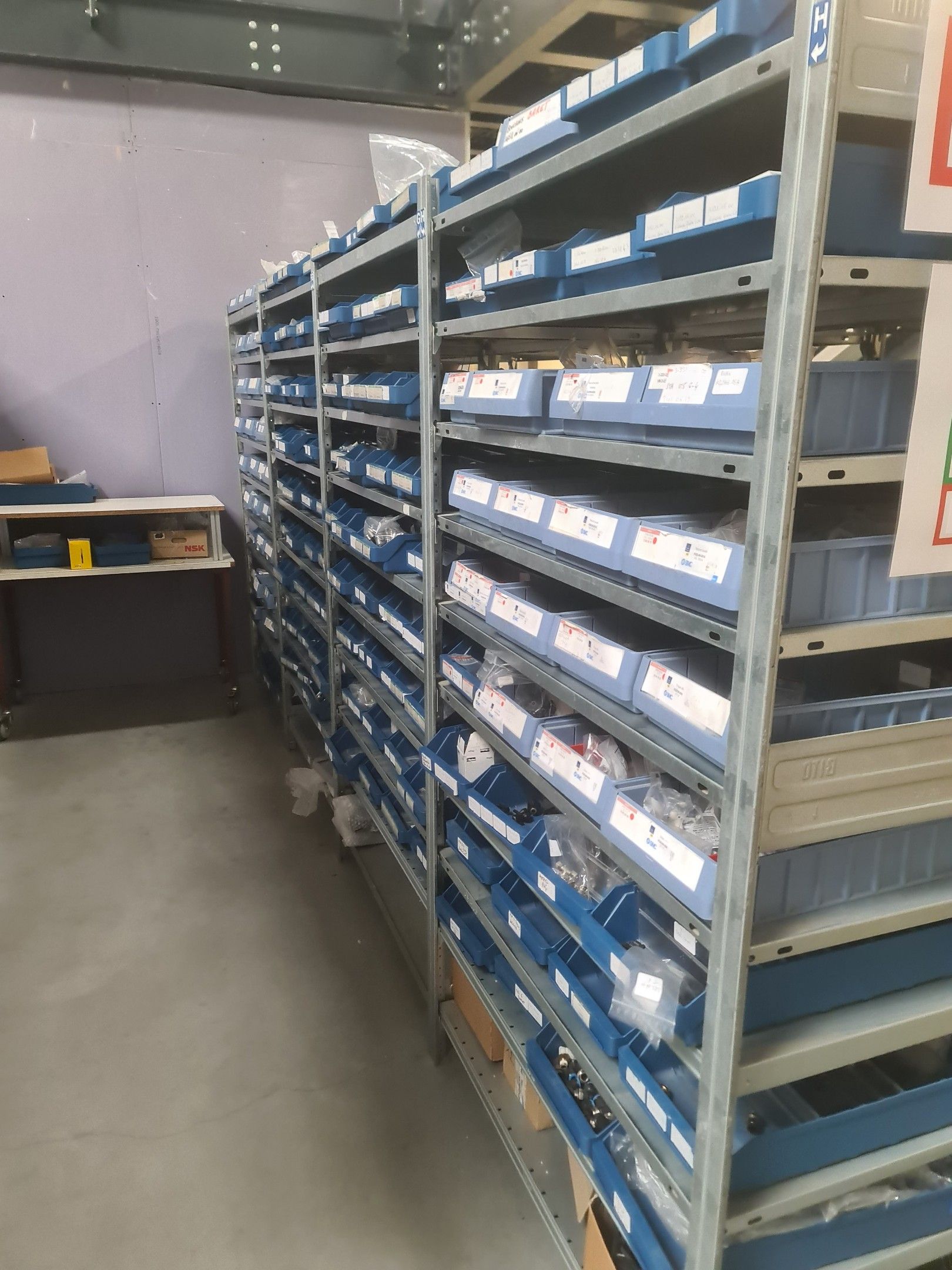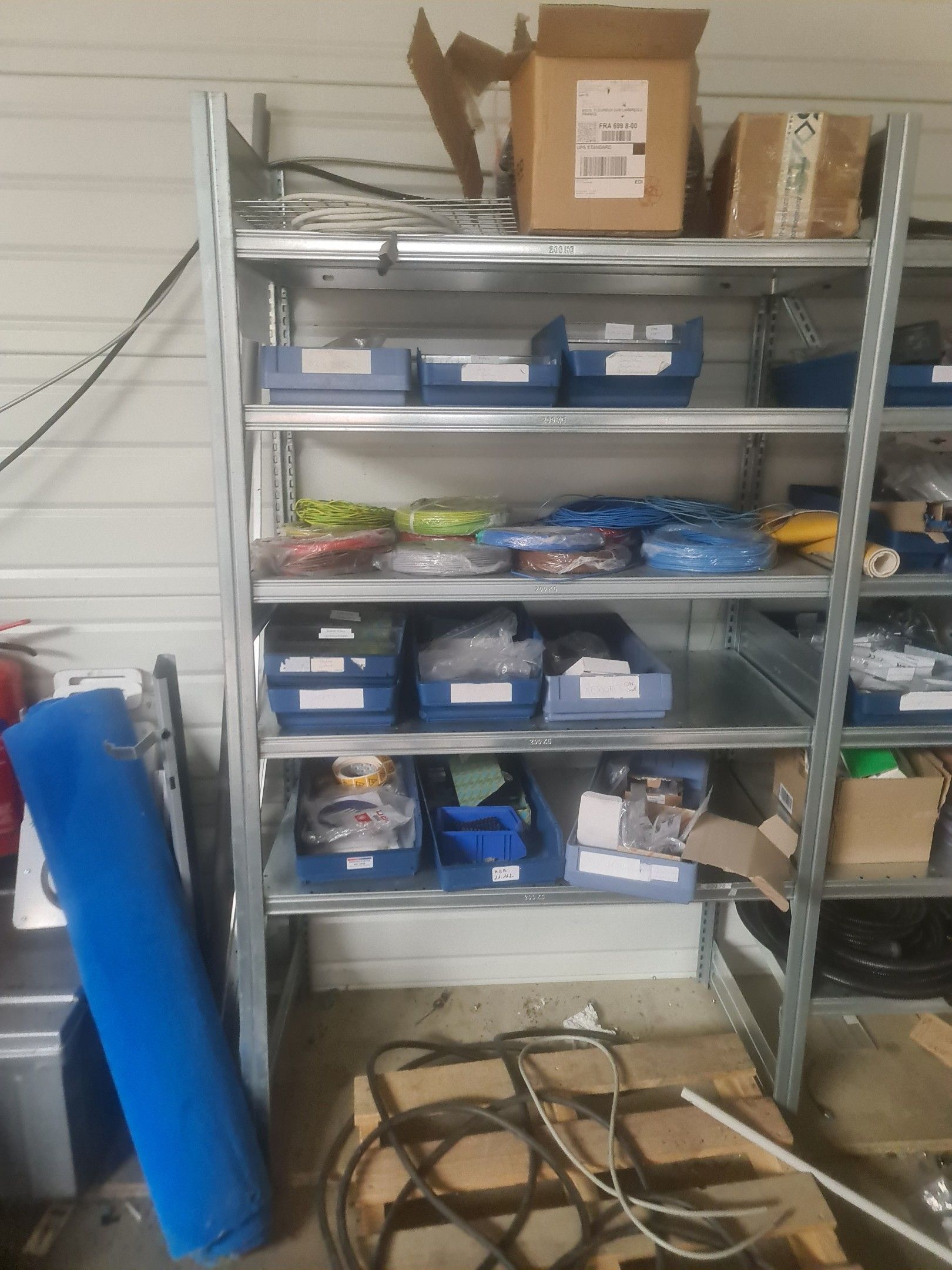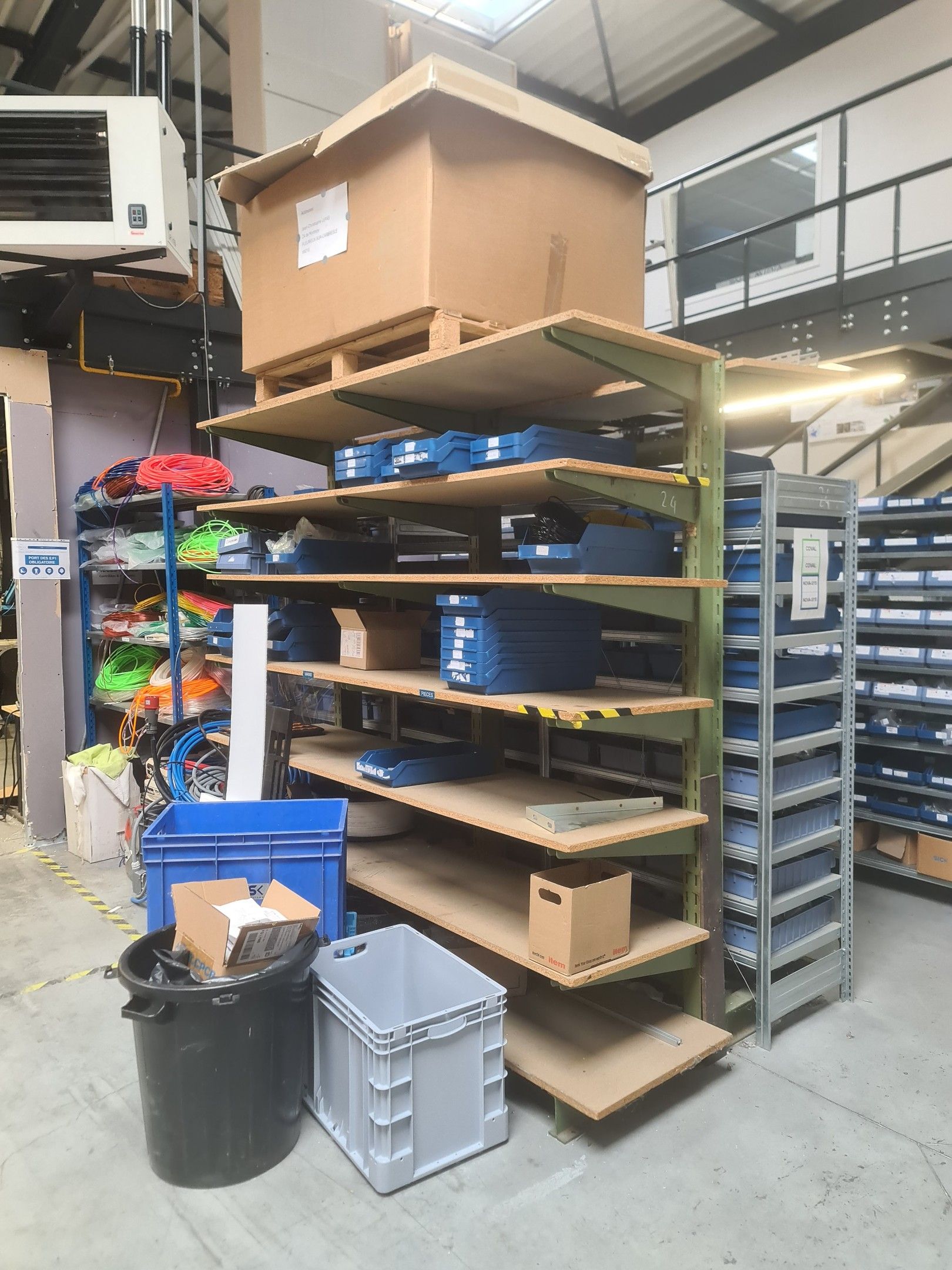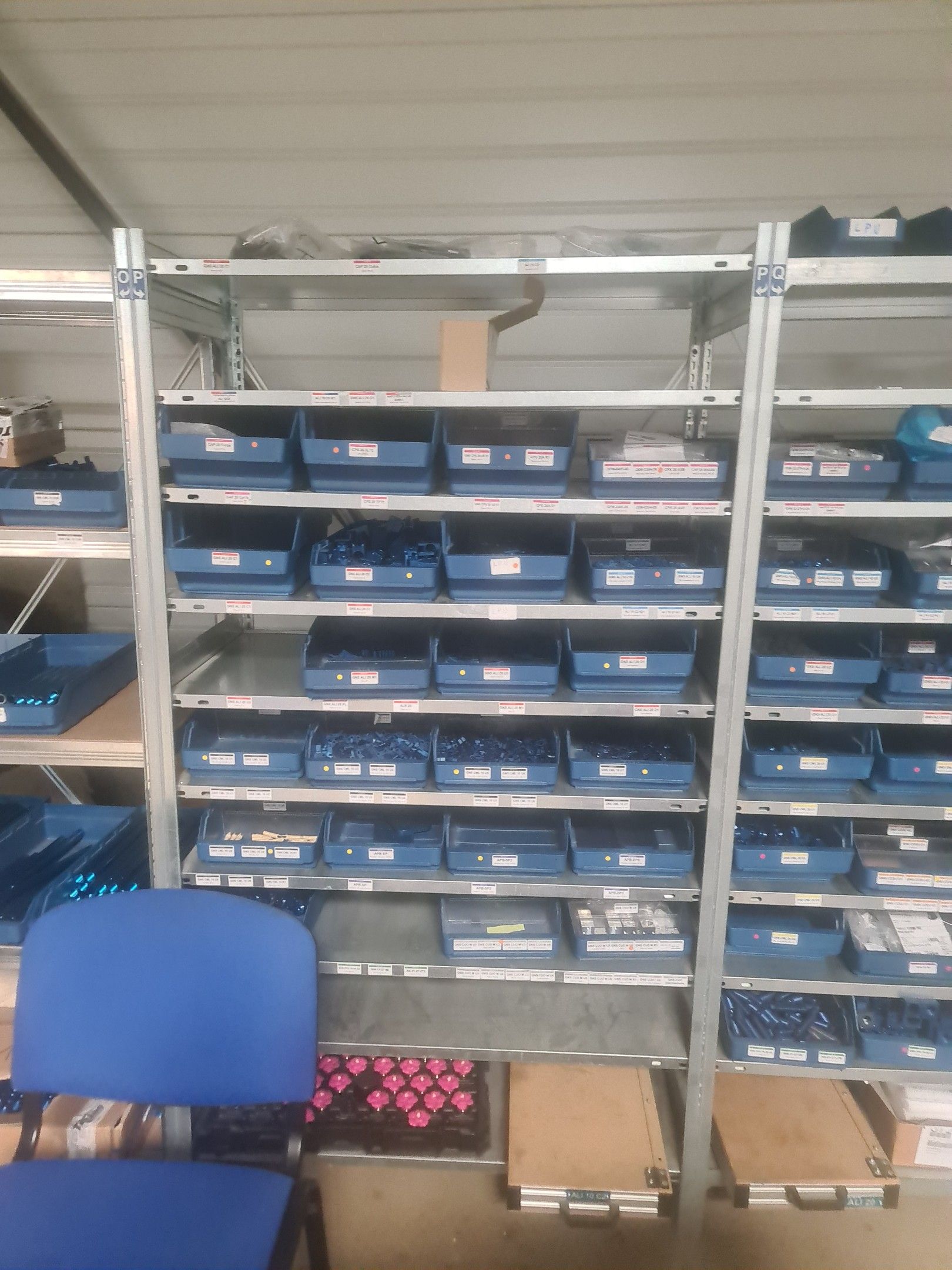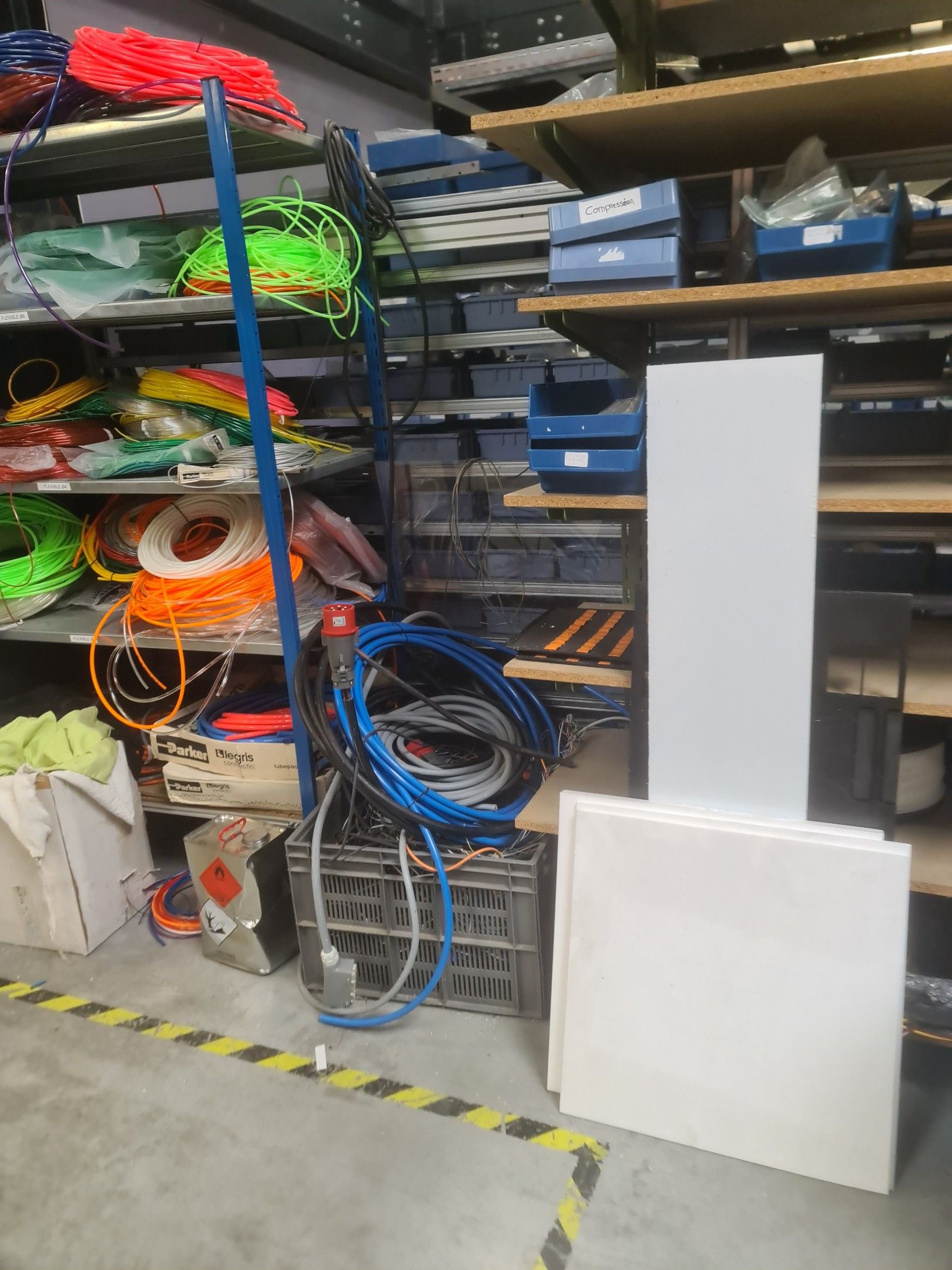 stock of mechanical spare parts, detectors, raw materials, consumables and hardware, mainly of the COVAL, ASS and SIEC brands, in bins