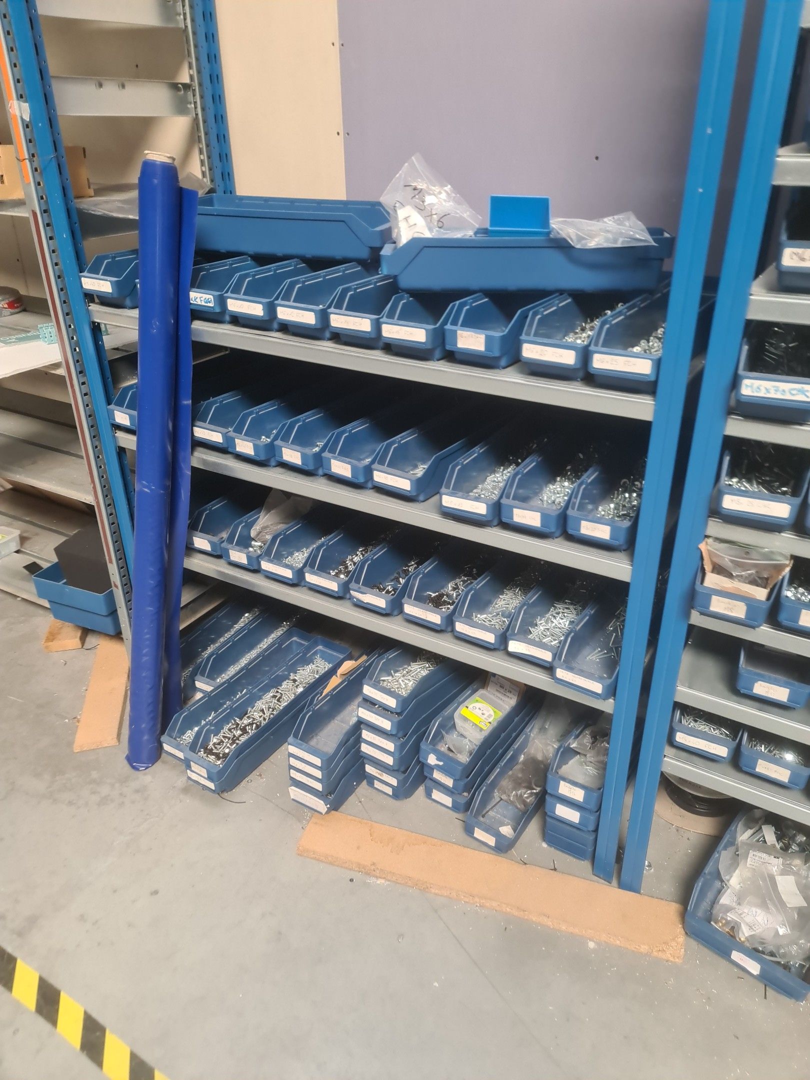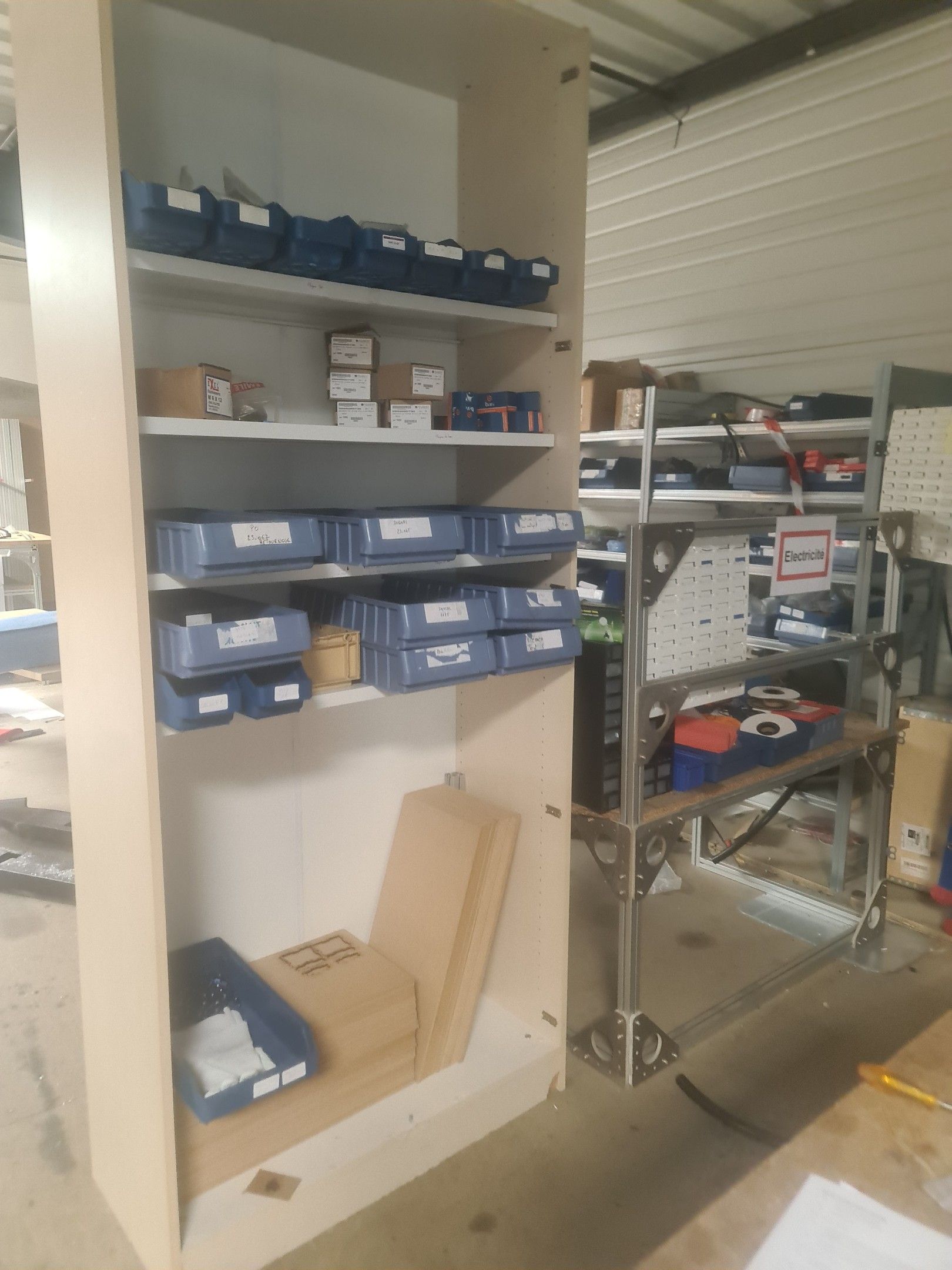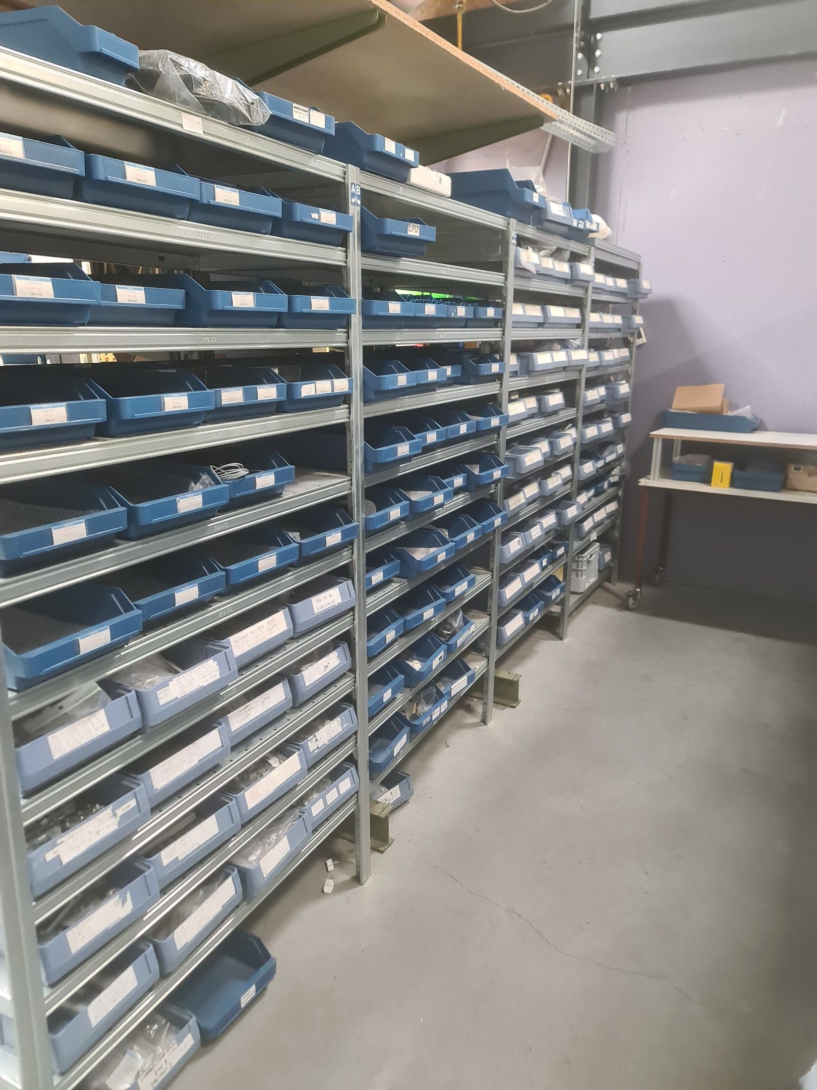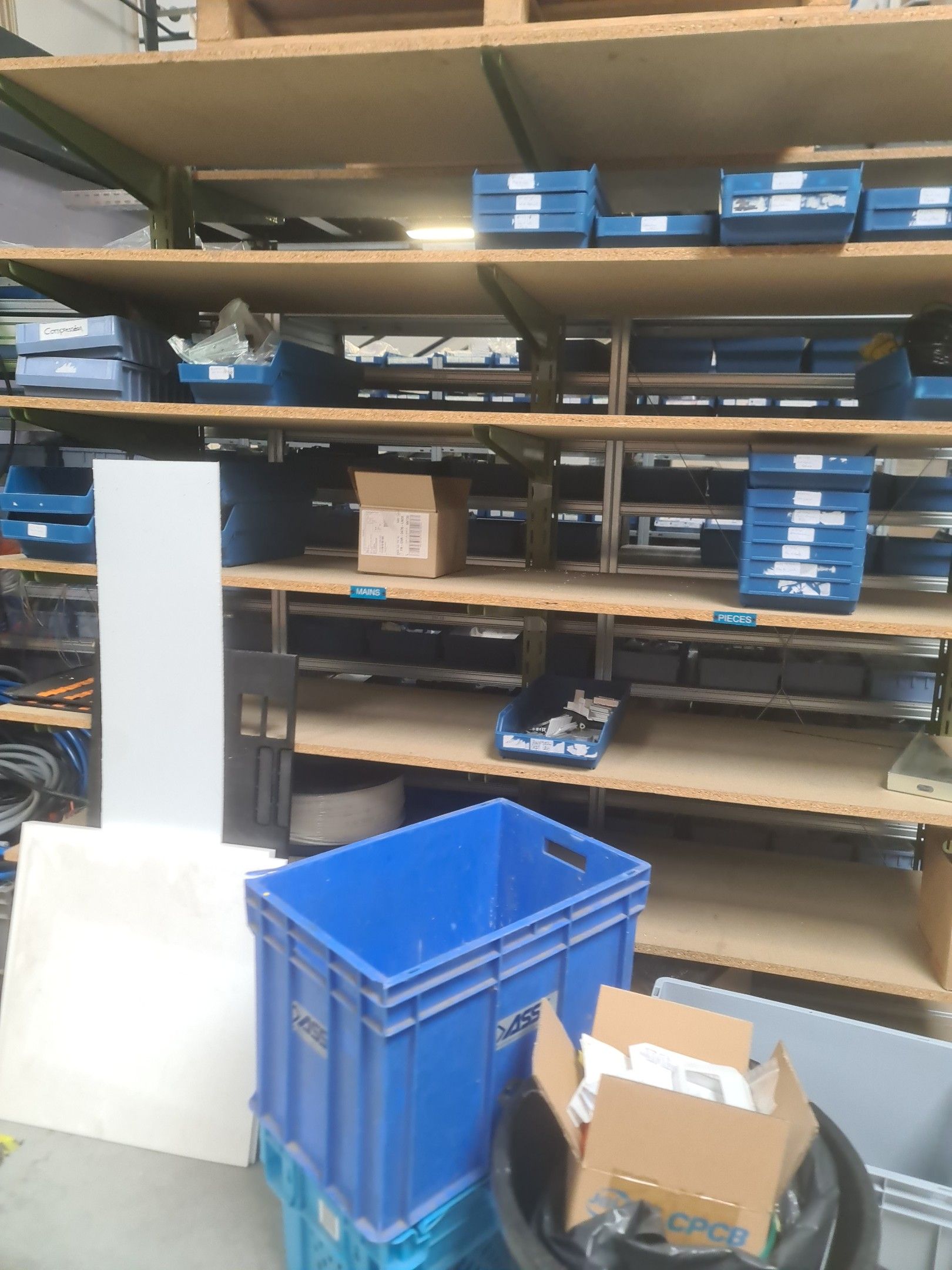 stock of mechanical spare parts, detectors, raw materials, consumables and hardware, mainly of the COVAL, ASS and SIEC brands, in bins