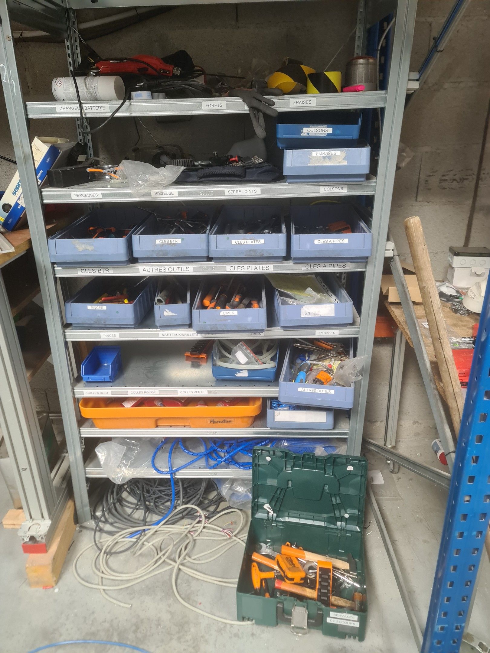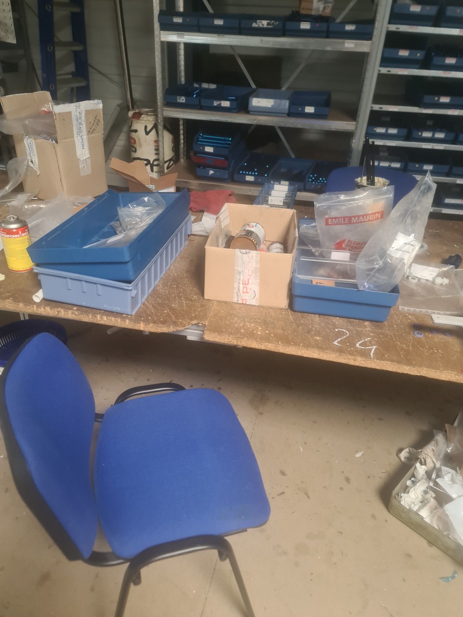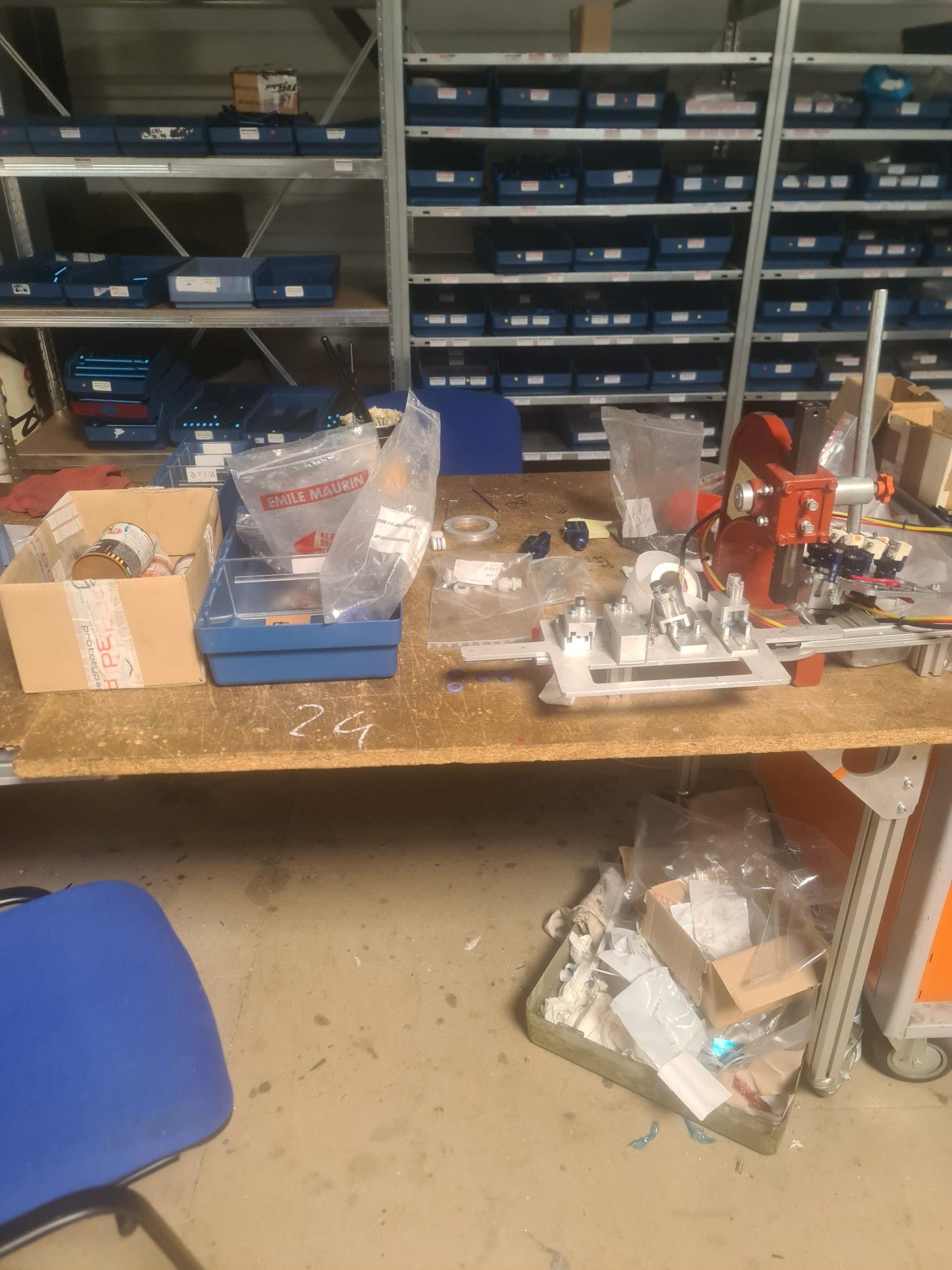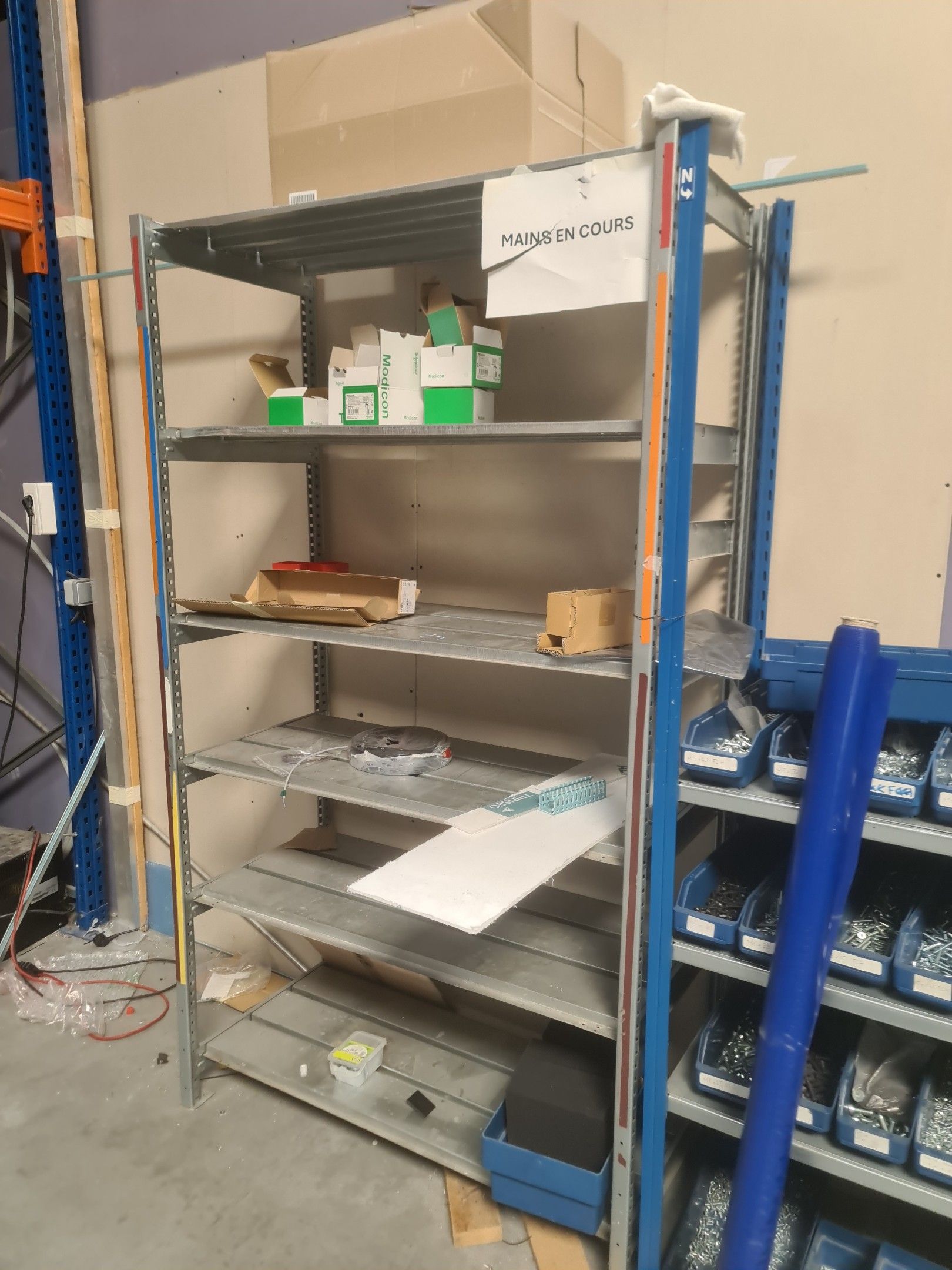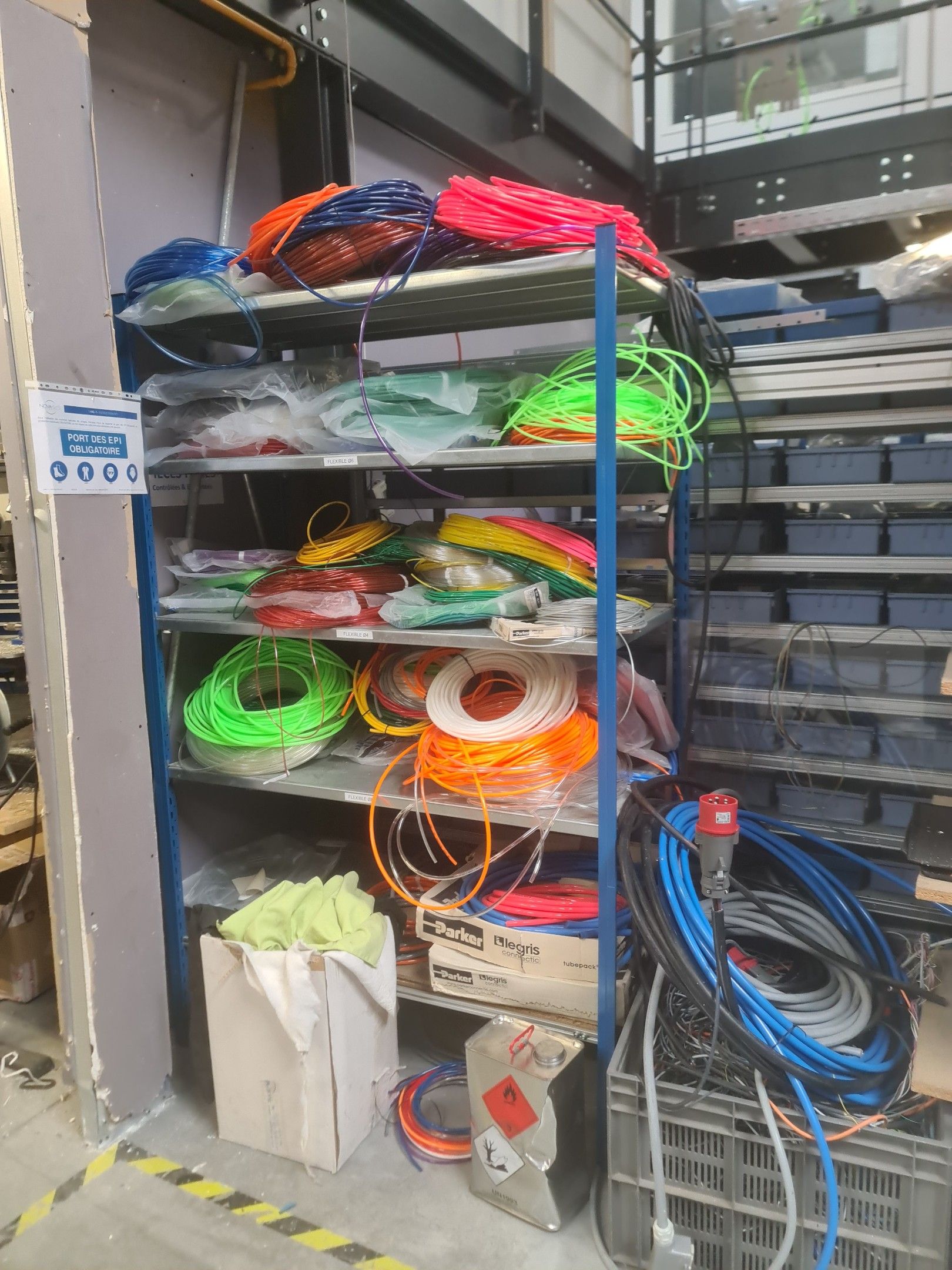 stock of mechanical spare parts, detectors, raw materials, consumables and hardware, mainly of the COVAL, ASS and SIEC brands, in bins