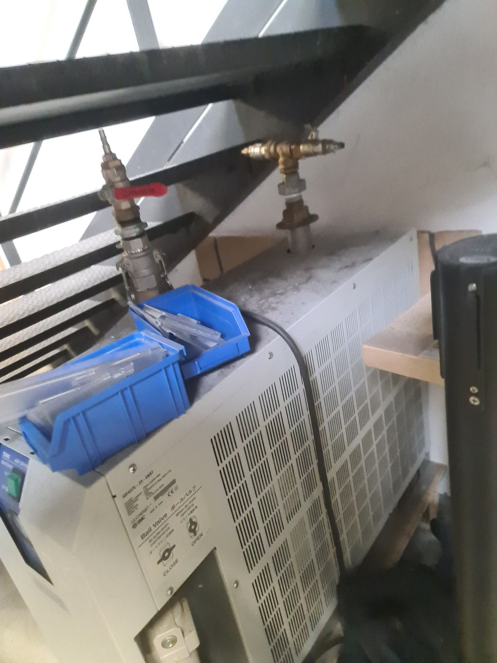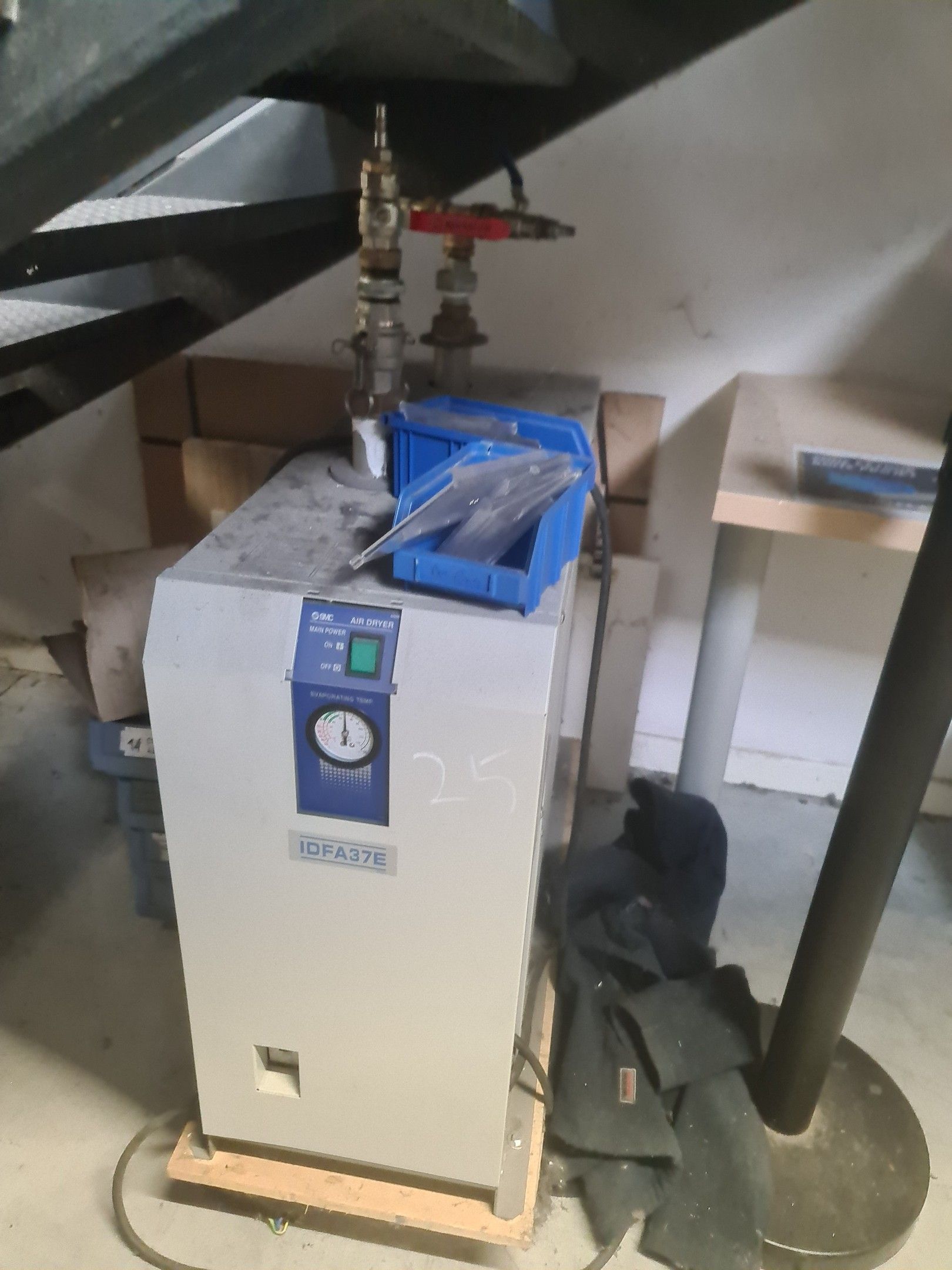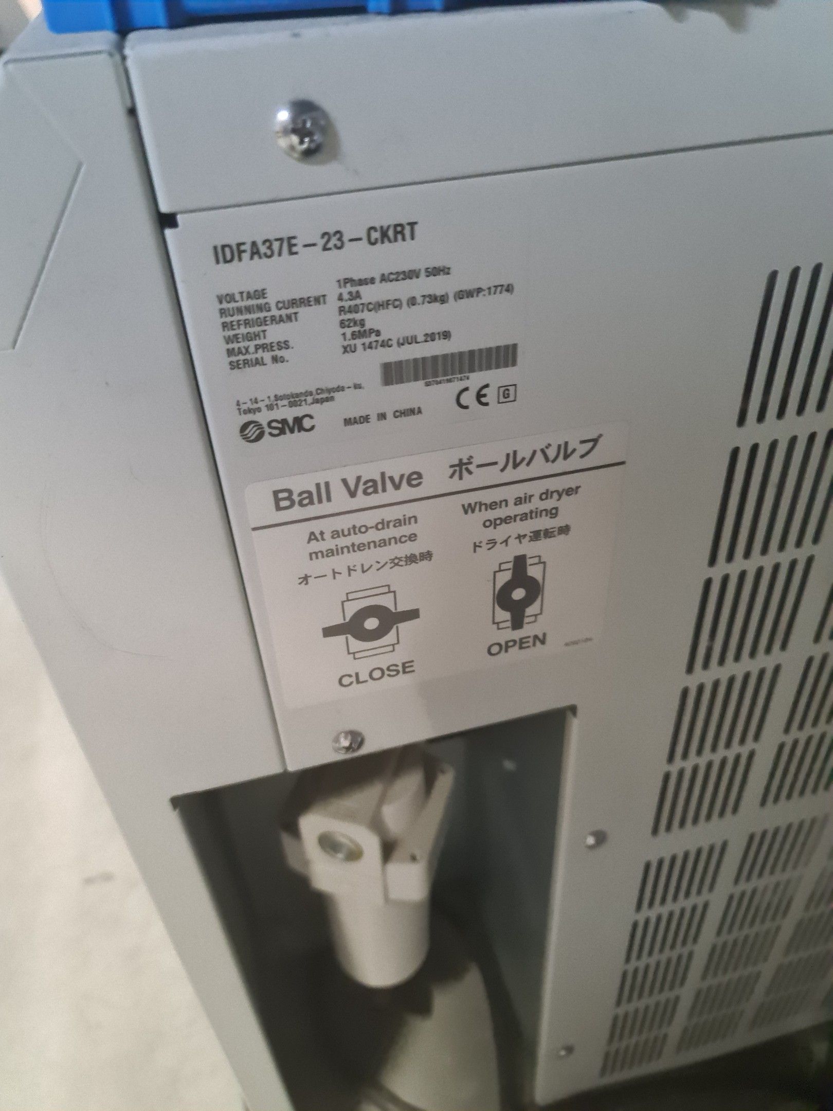 an SMC Air Dryer model IDF A37E, a beige laminated flat desk