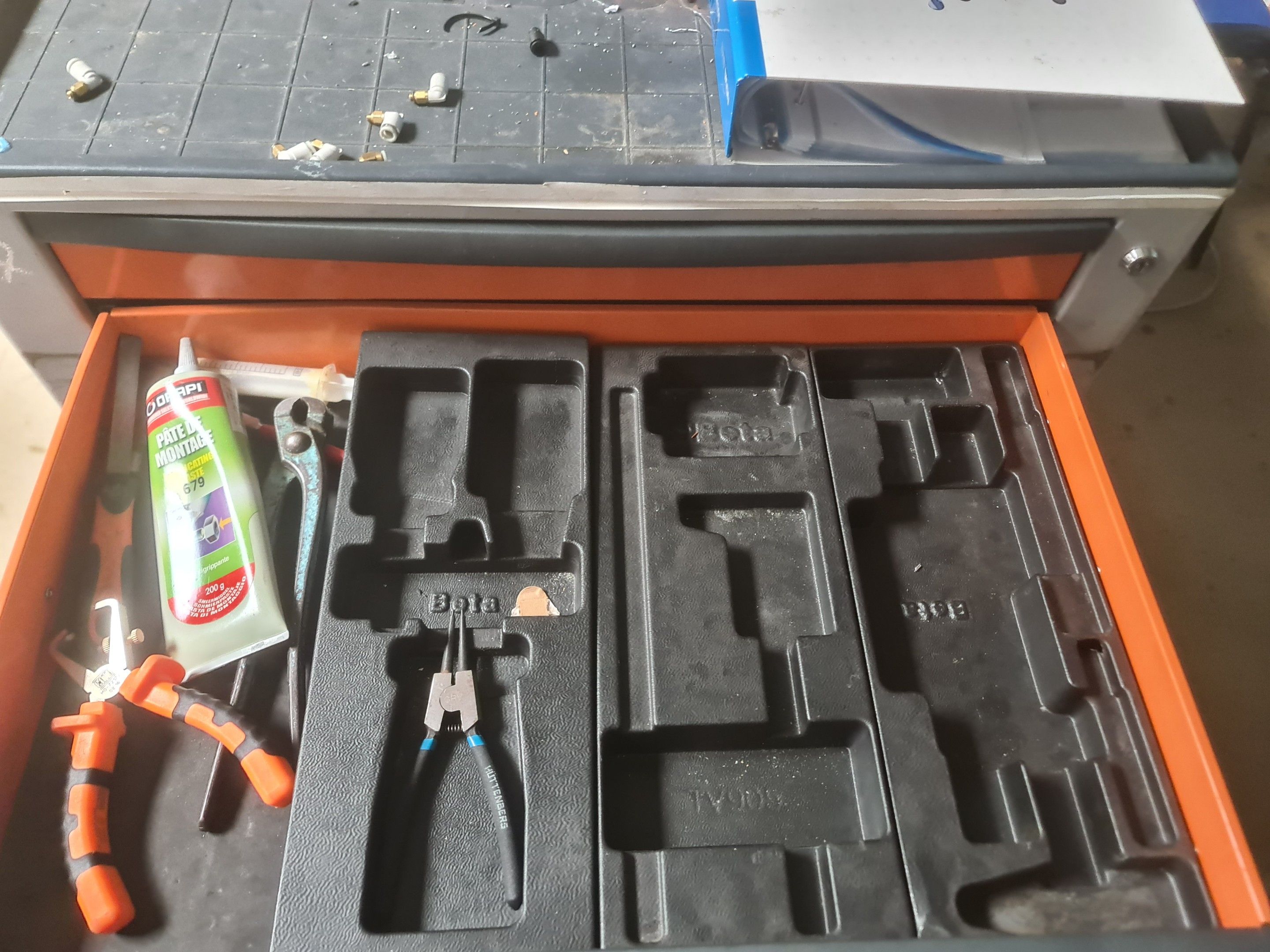 a partially upholstered BETA C24S workshop trolley (orange)