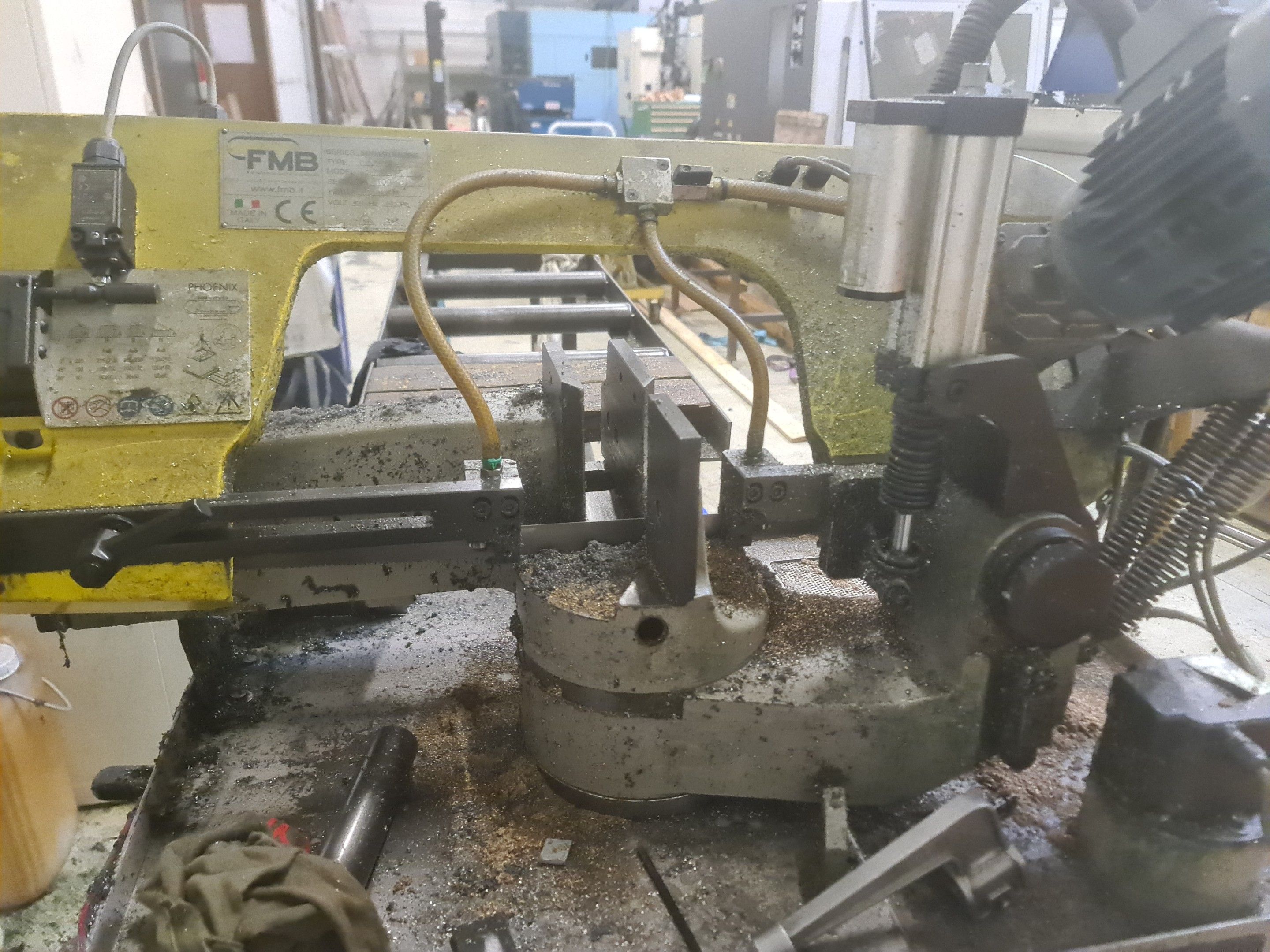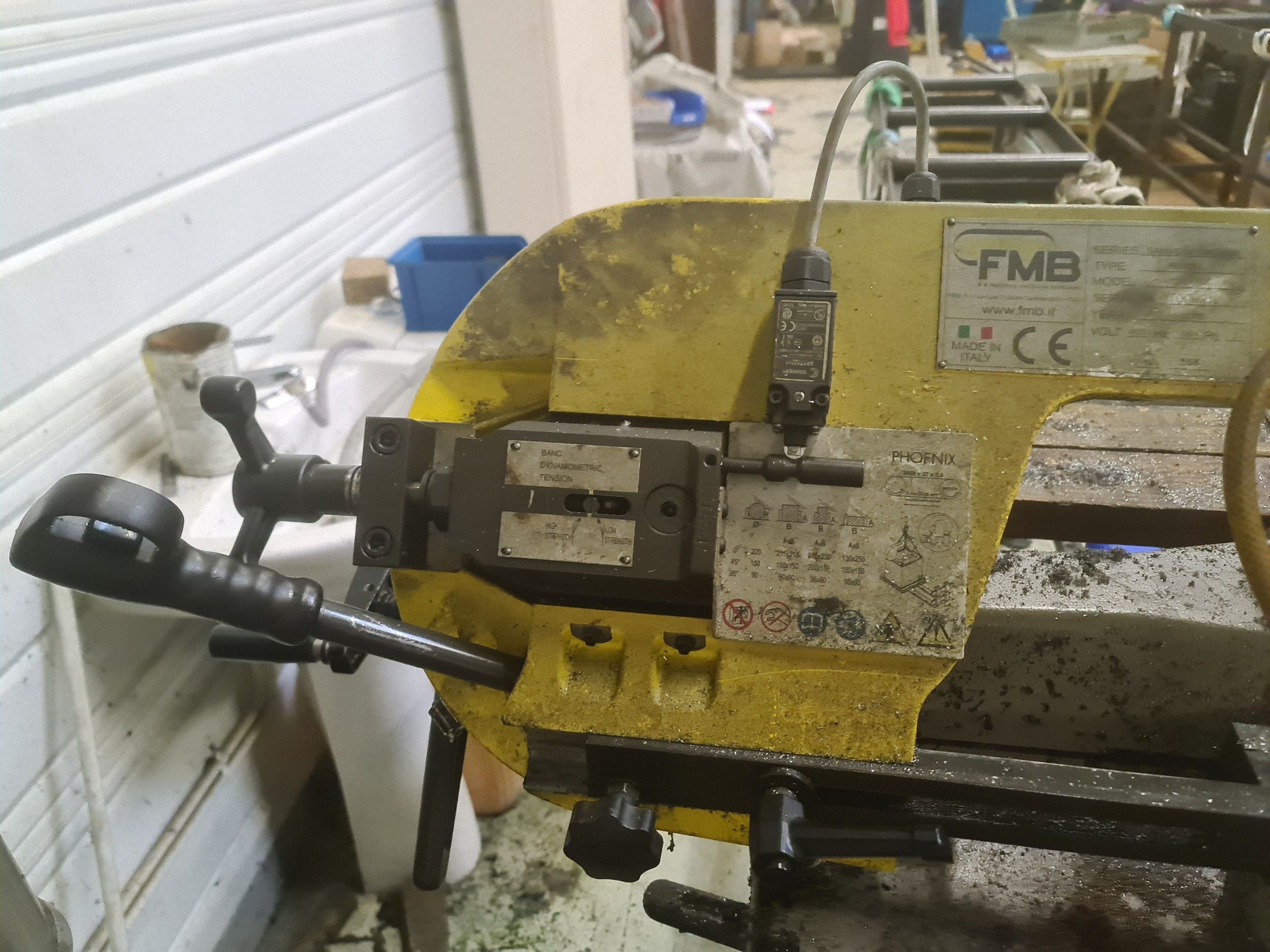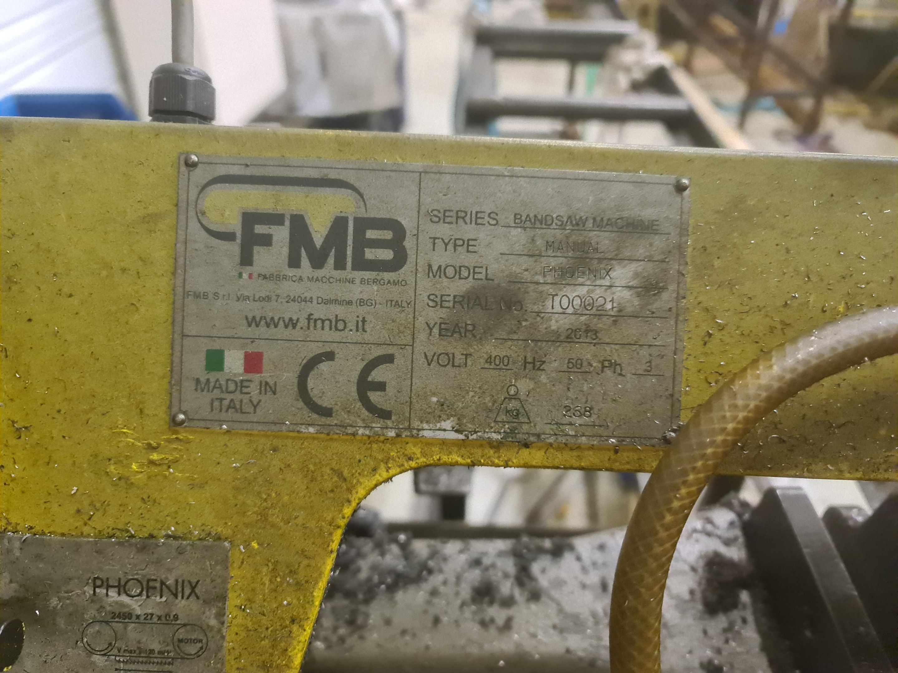 a 2013 FMB PHOENIX pedestal-mounted band saw with roller conveyors