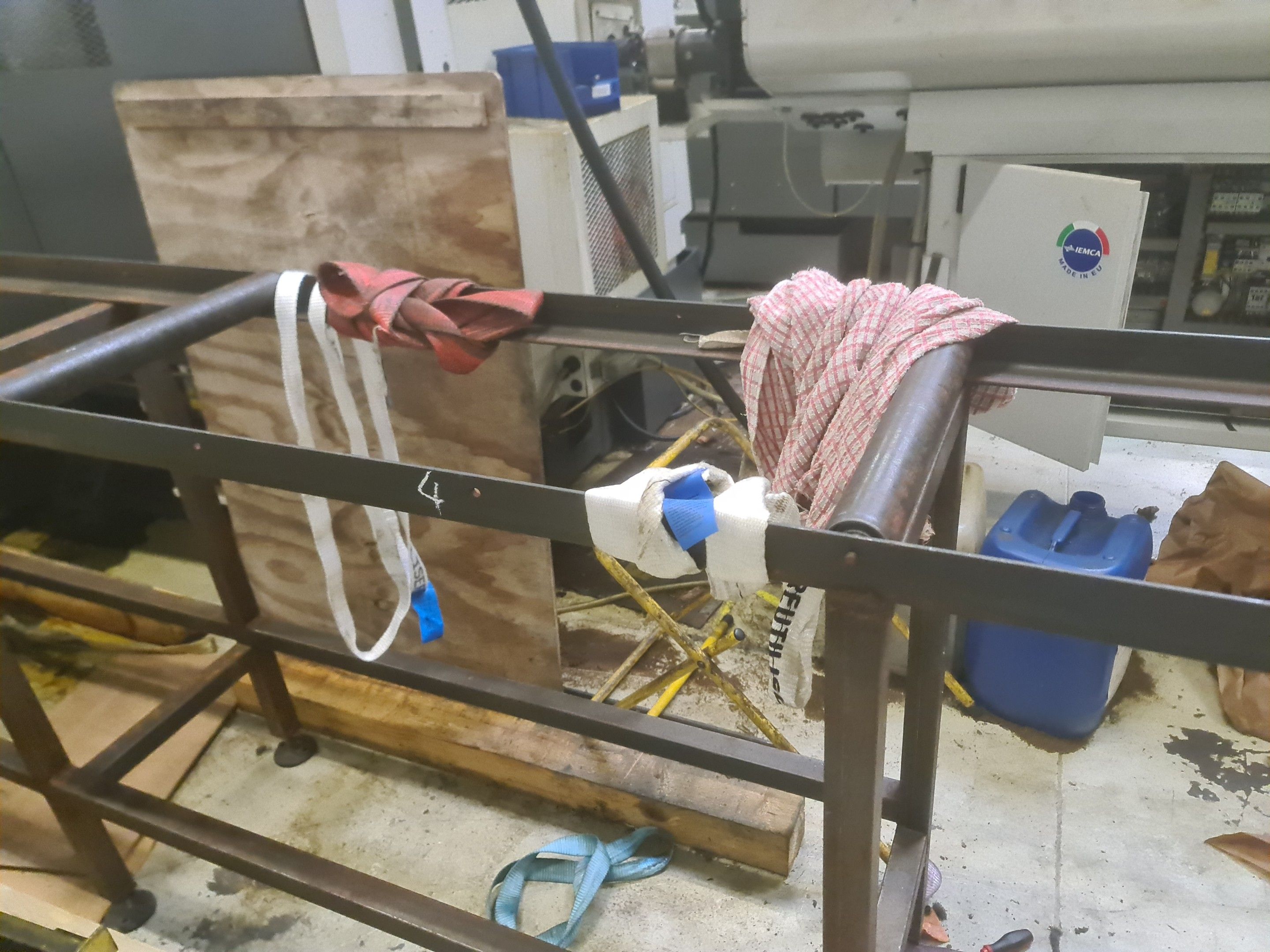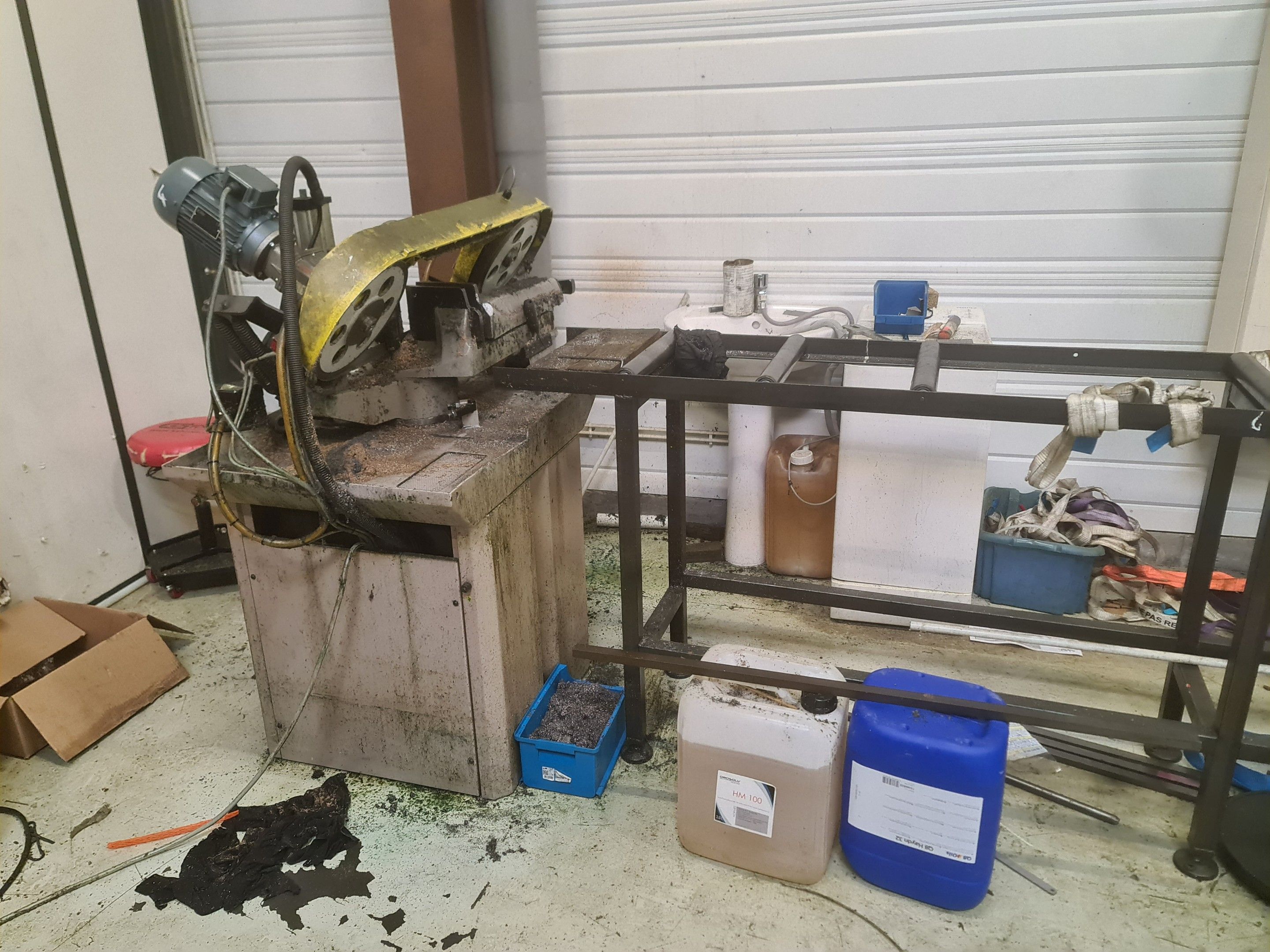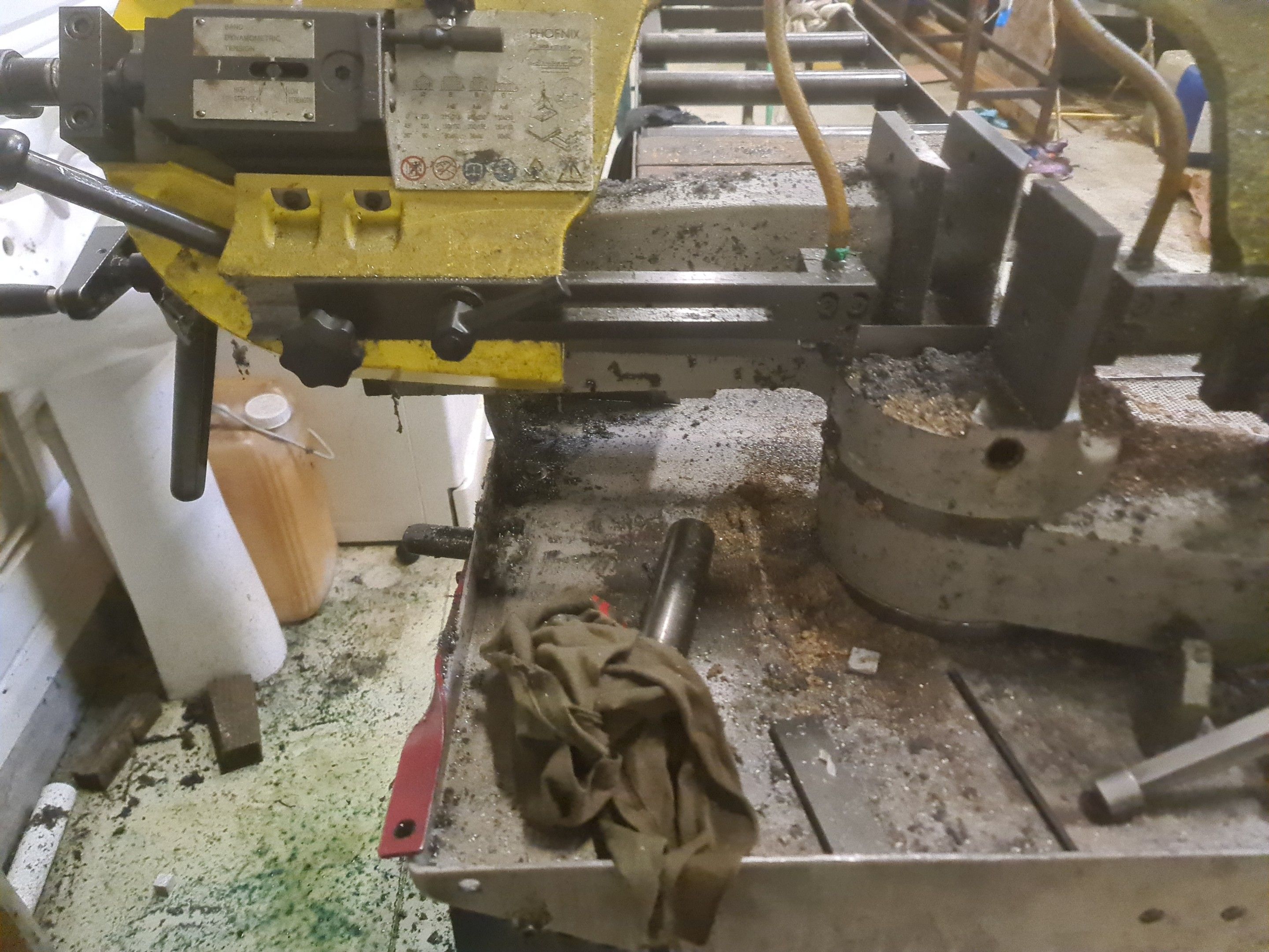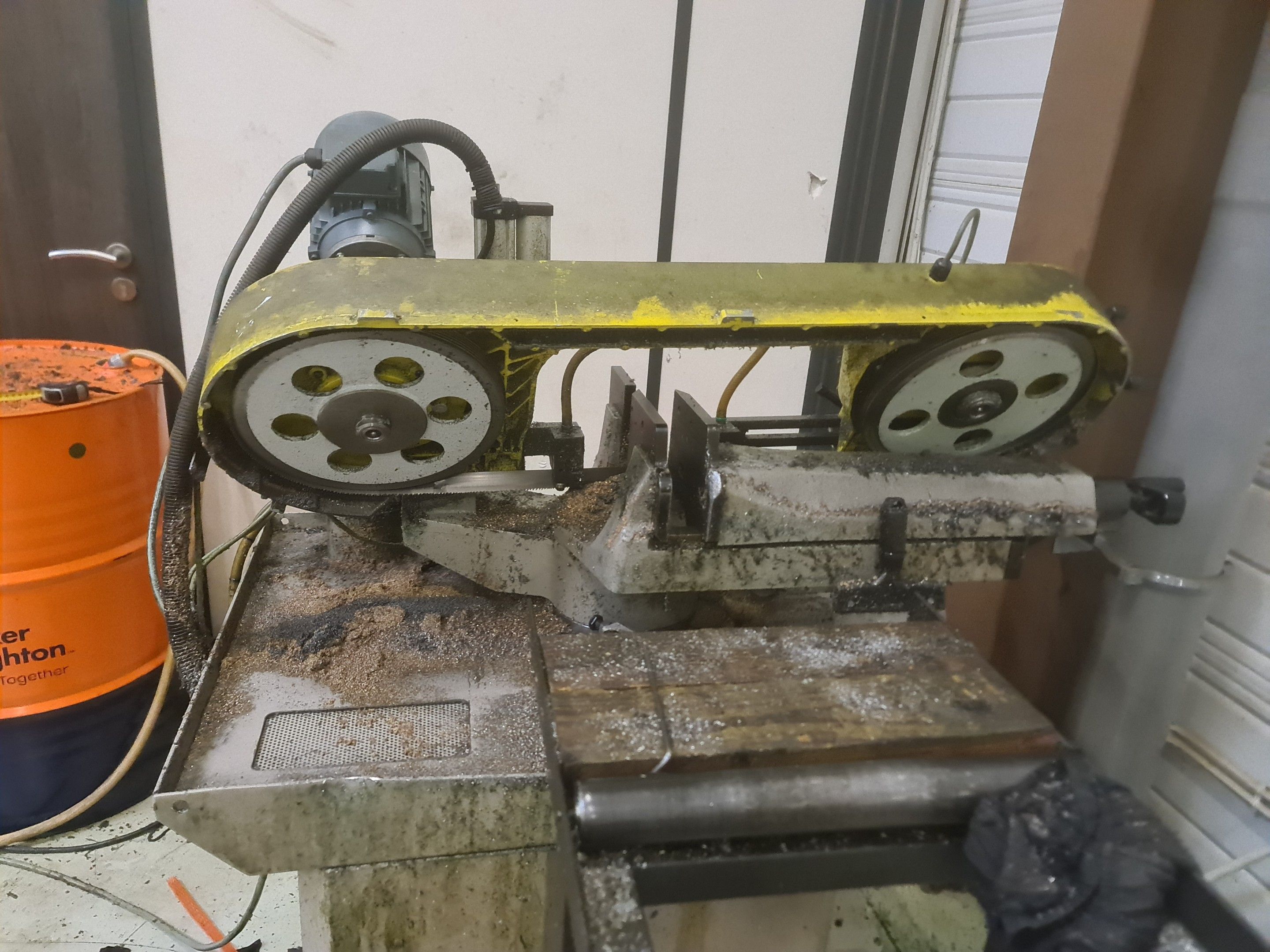 a 2013 FMB PHOENIX pedestal-mounted band saw with roller conveyors