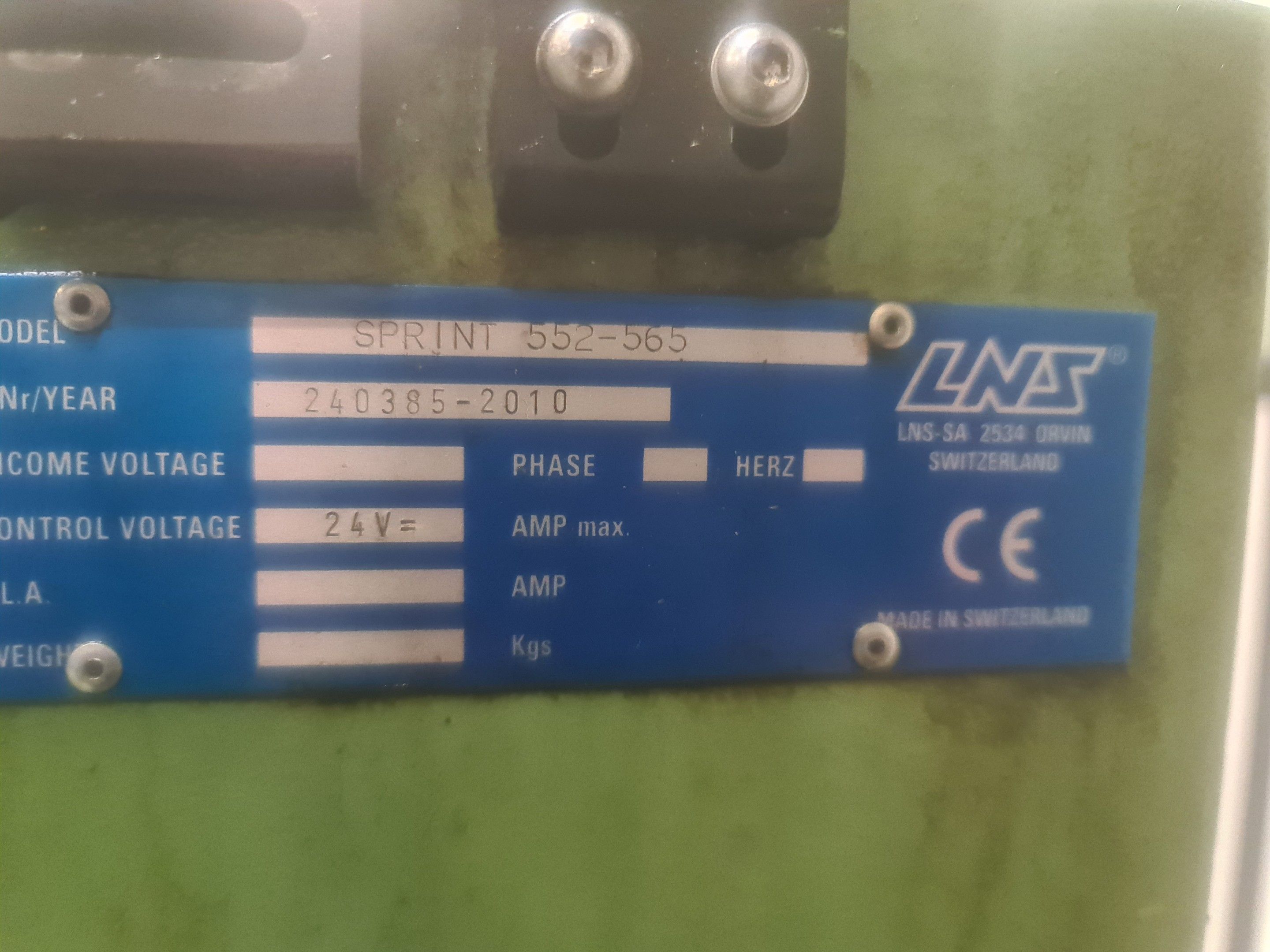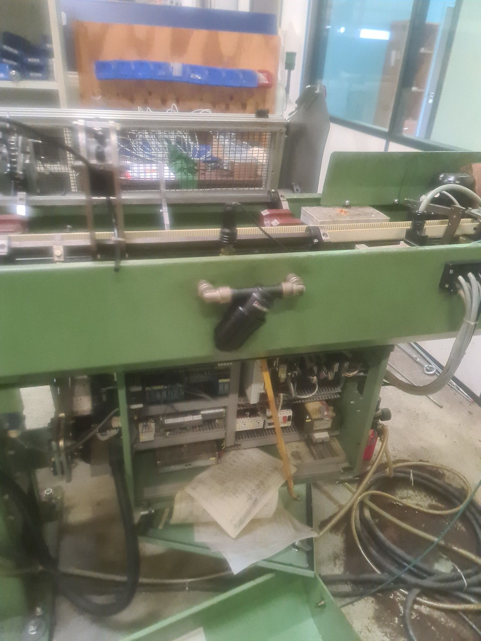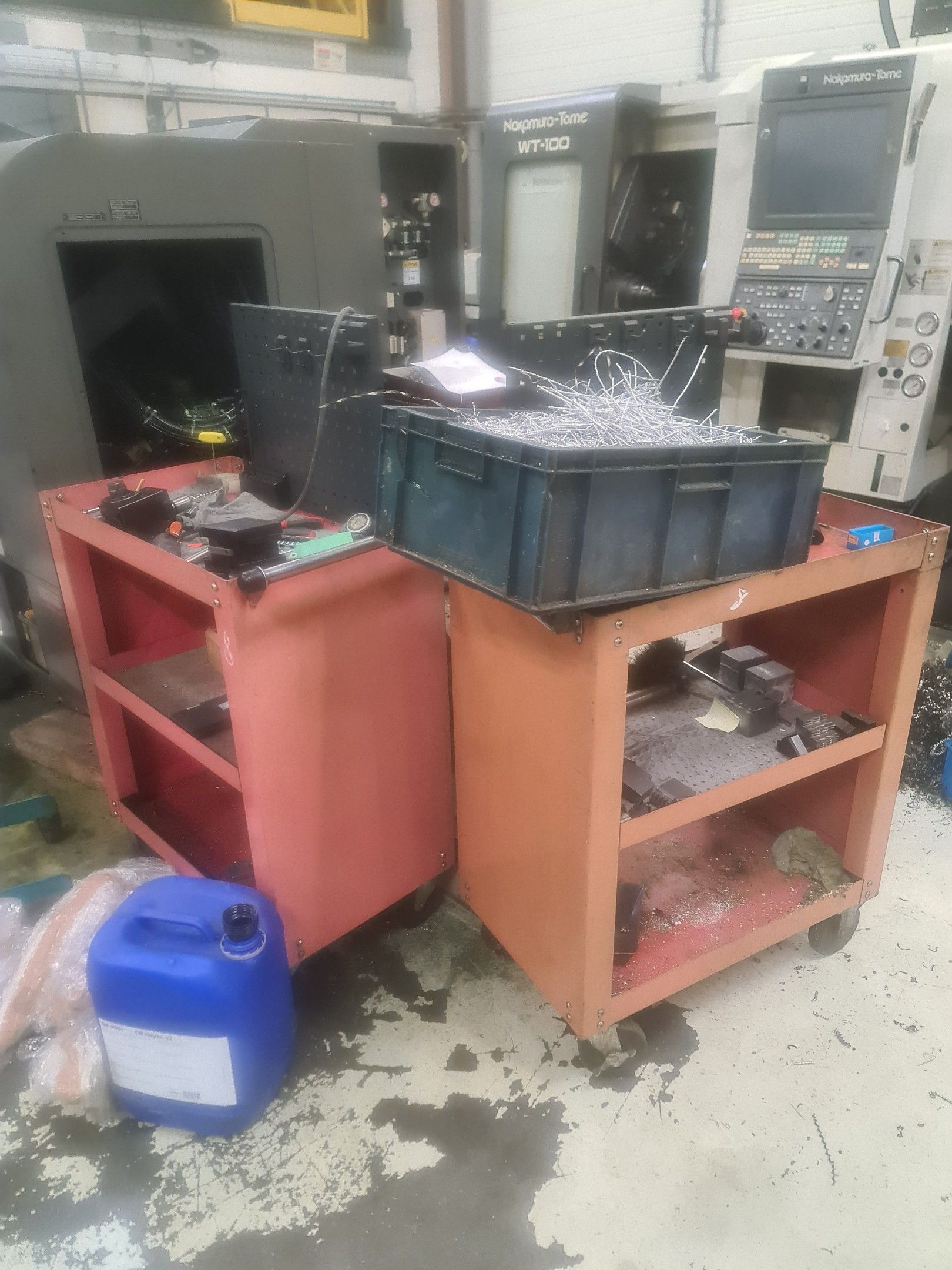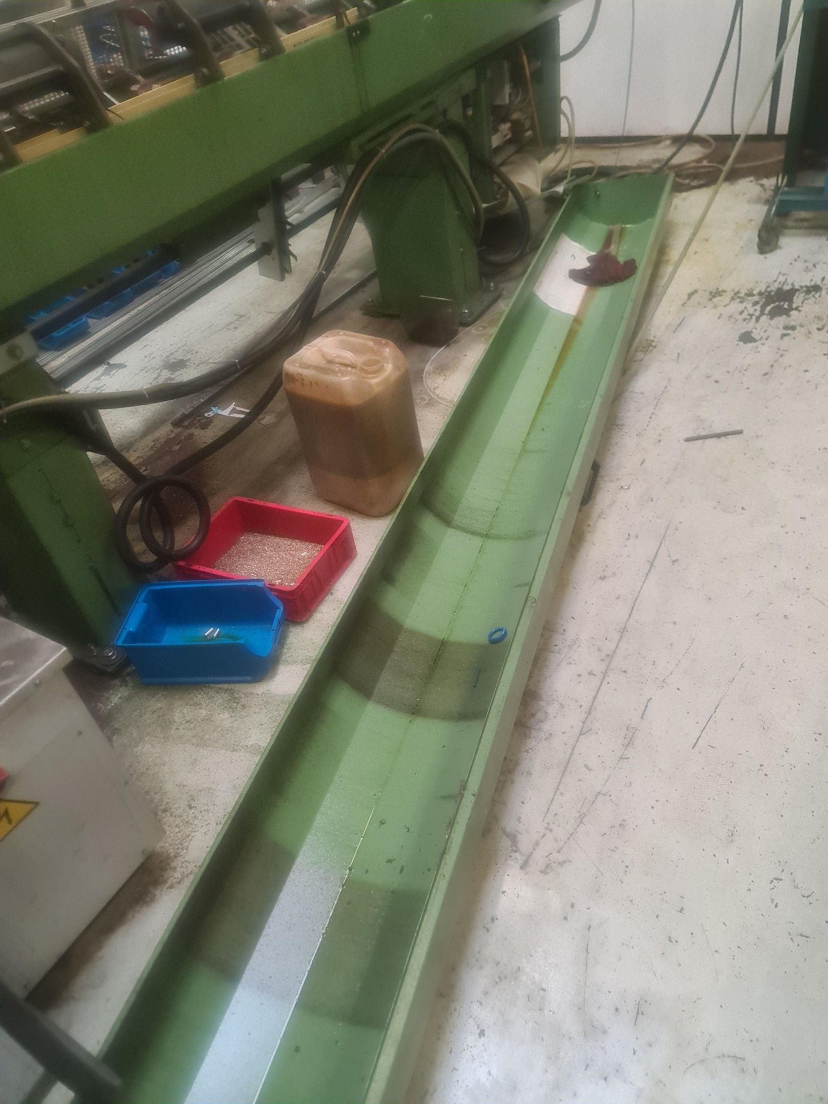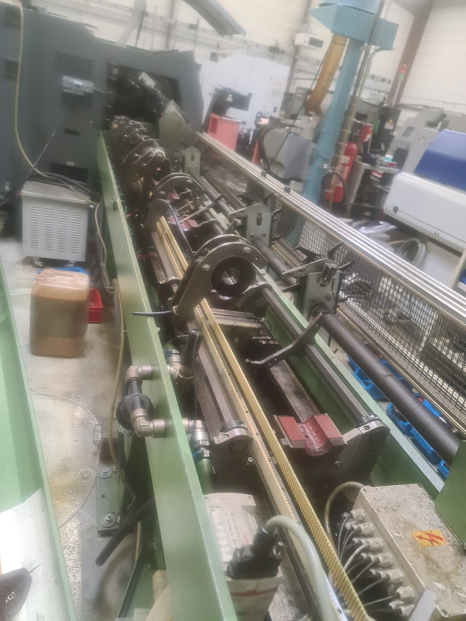 3 red metal sideboards, a blue metal console and an LNS bar feeder model SPRINT 552-265