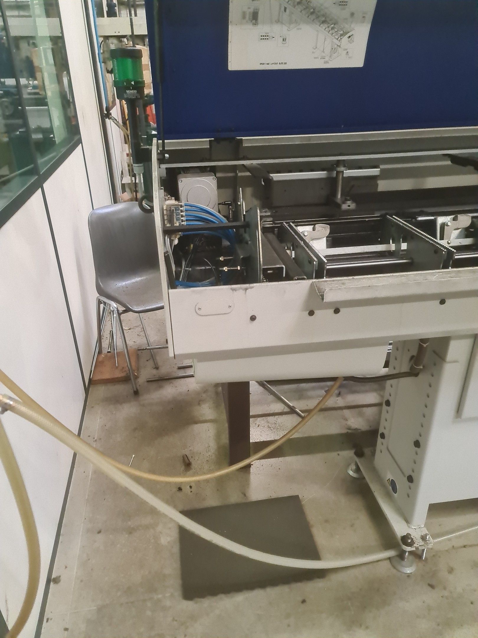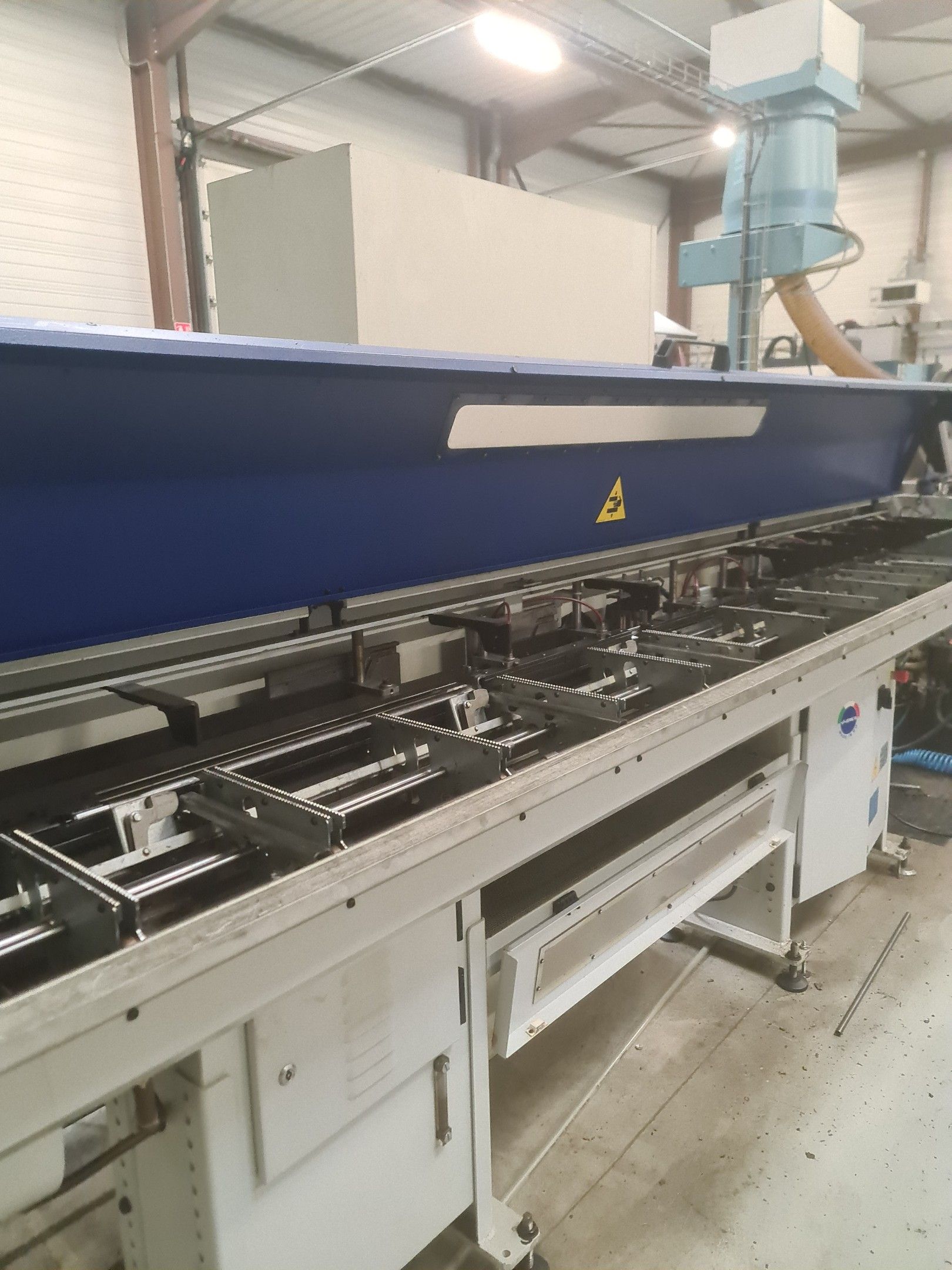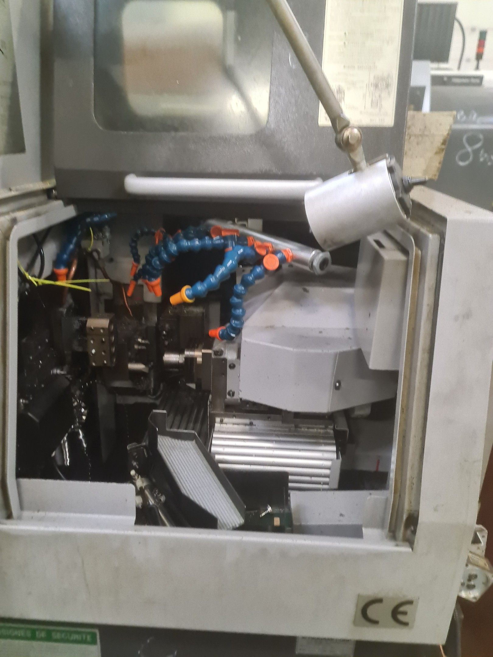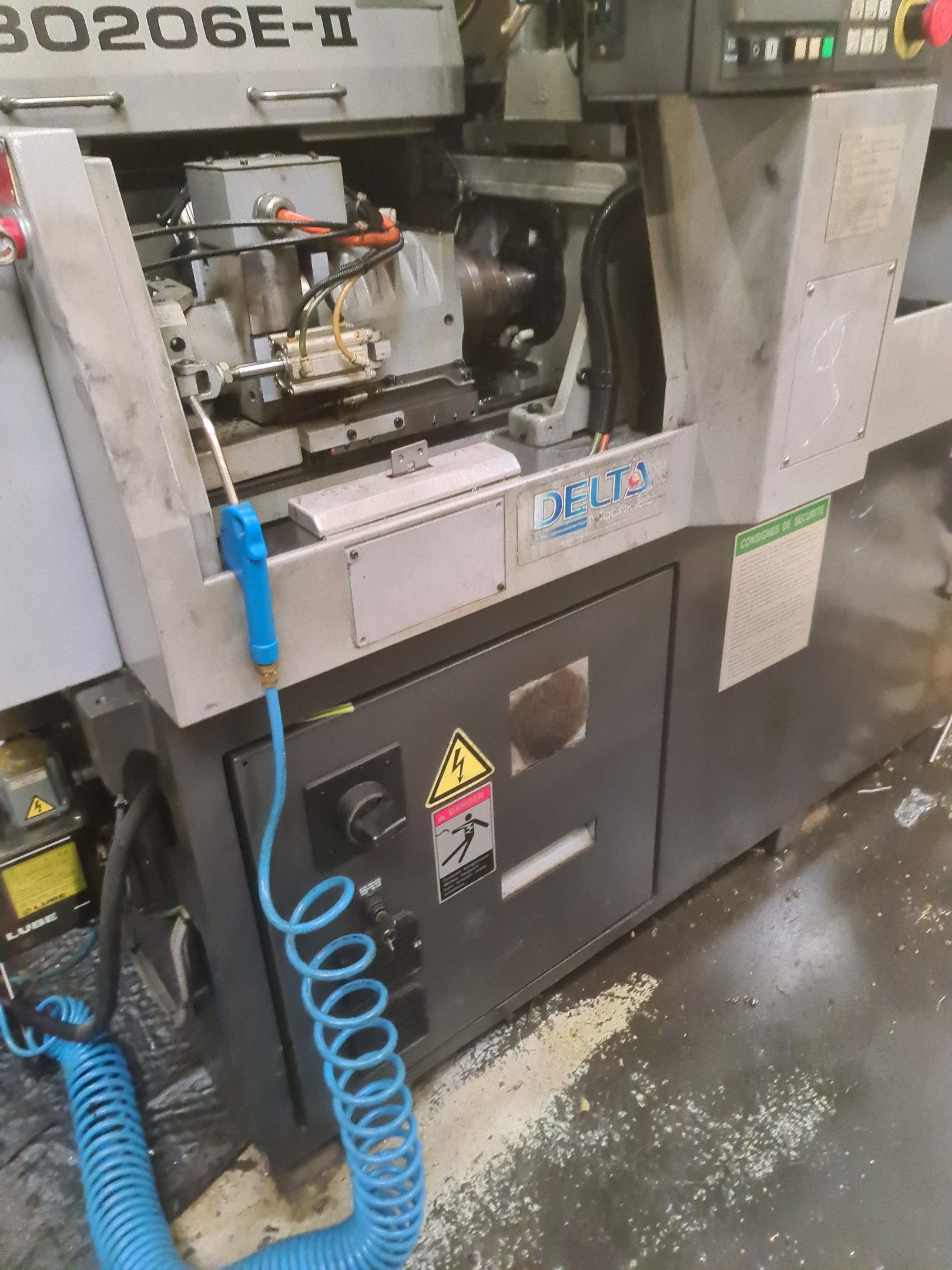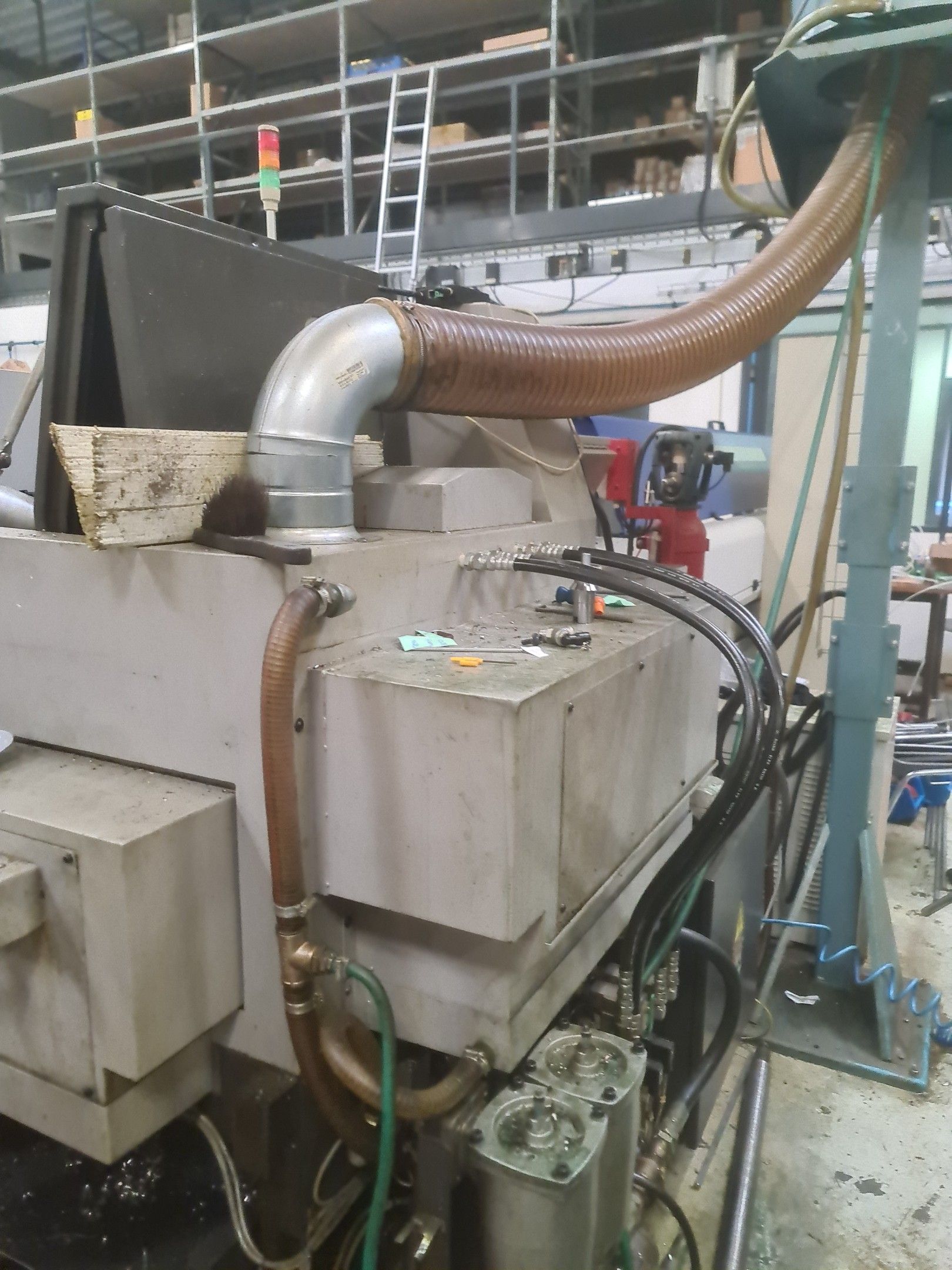 a TSUGAMI machining centre model BO206E-II, year 2014 with Fanuc Series 32i numerical control, model B, a suction system, a 2013 IEMCA Elite 220 bar feeder, a red metal sideboard, a metal cupboard, spout trays, tubes and metal parts.