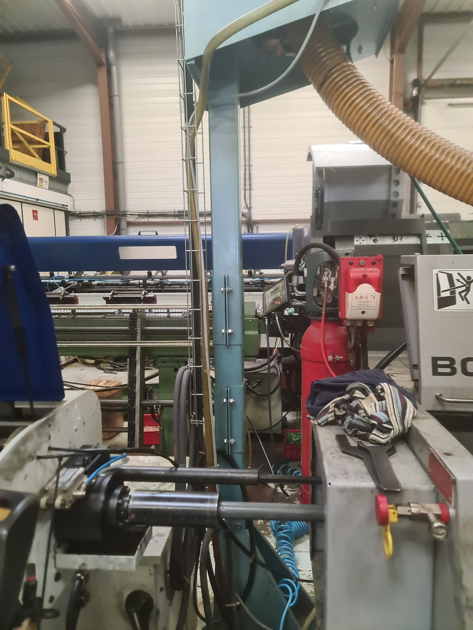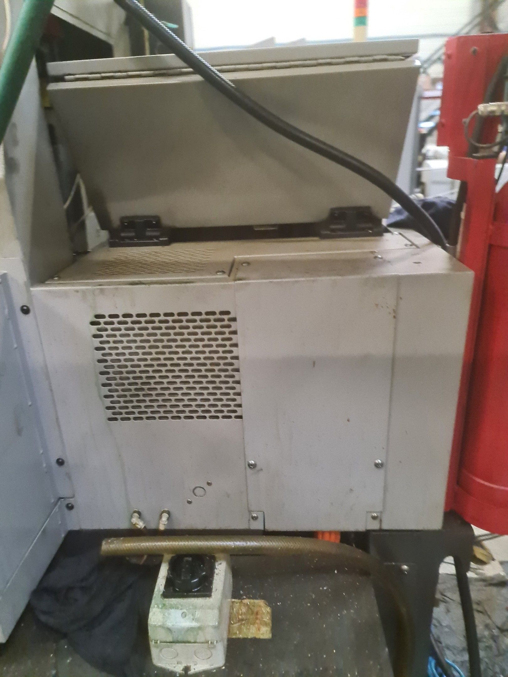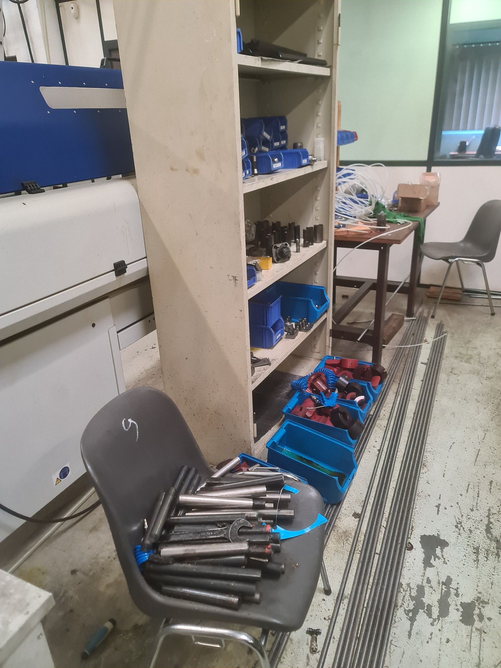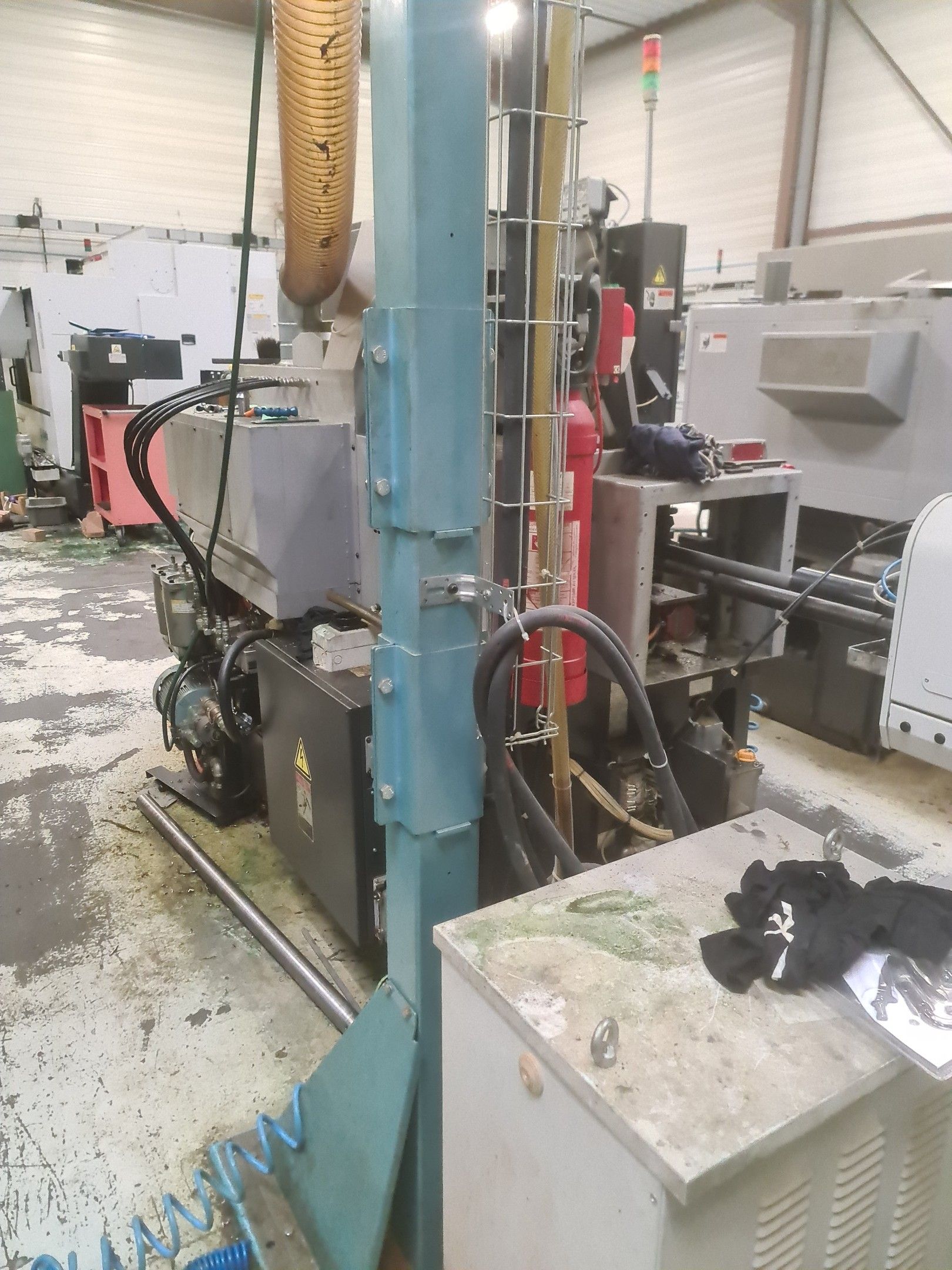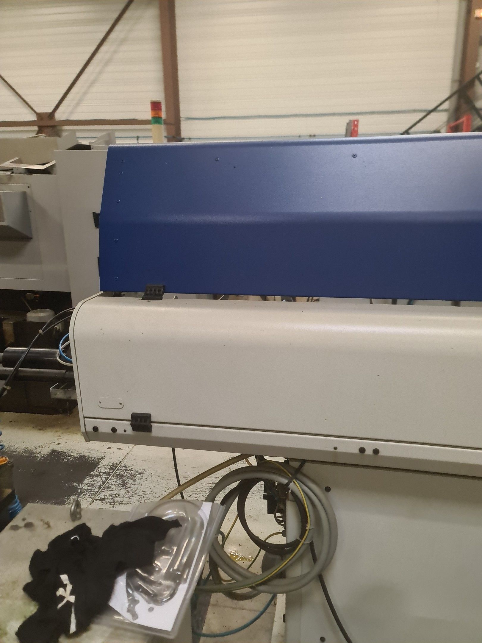 a TSUGAMI machining centre model BO206E-II, year 2014 with Fanuc Series 32i numerical control, model B, a suction system, a 2013 IEMCA Elite 220 bar feeder, a red metal sideboard, a metal cupboard, spout trays, tubes and metal parts.