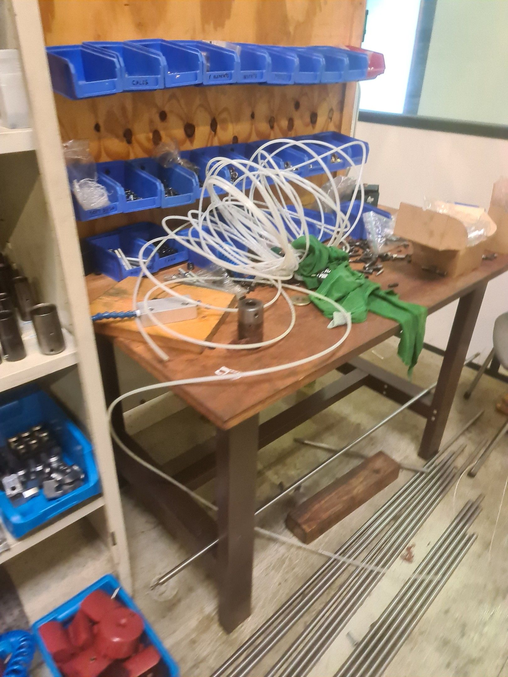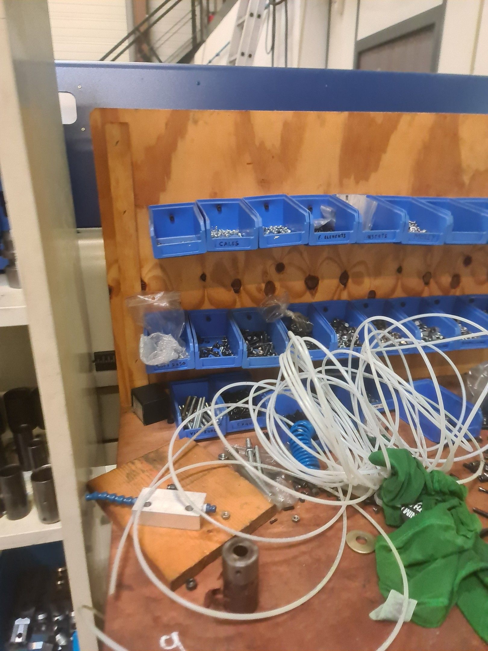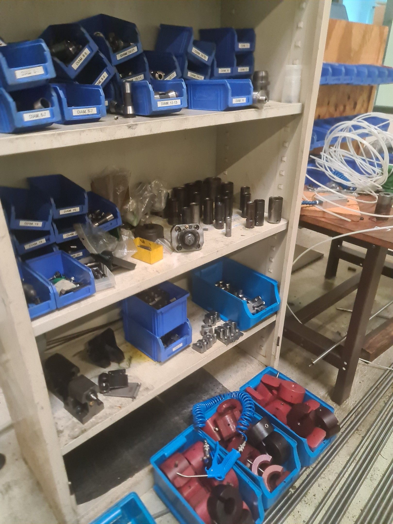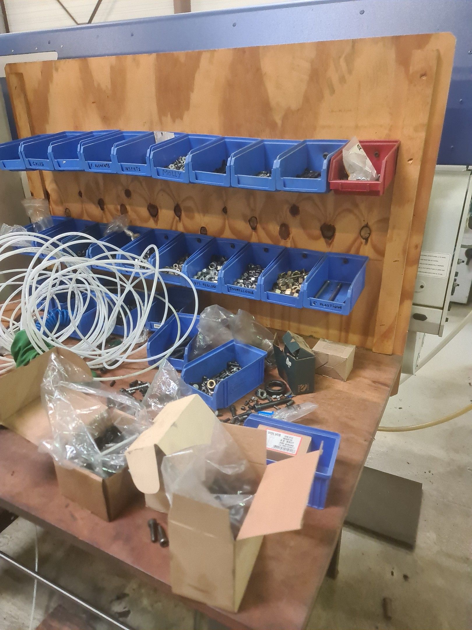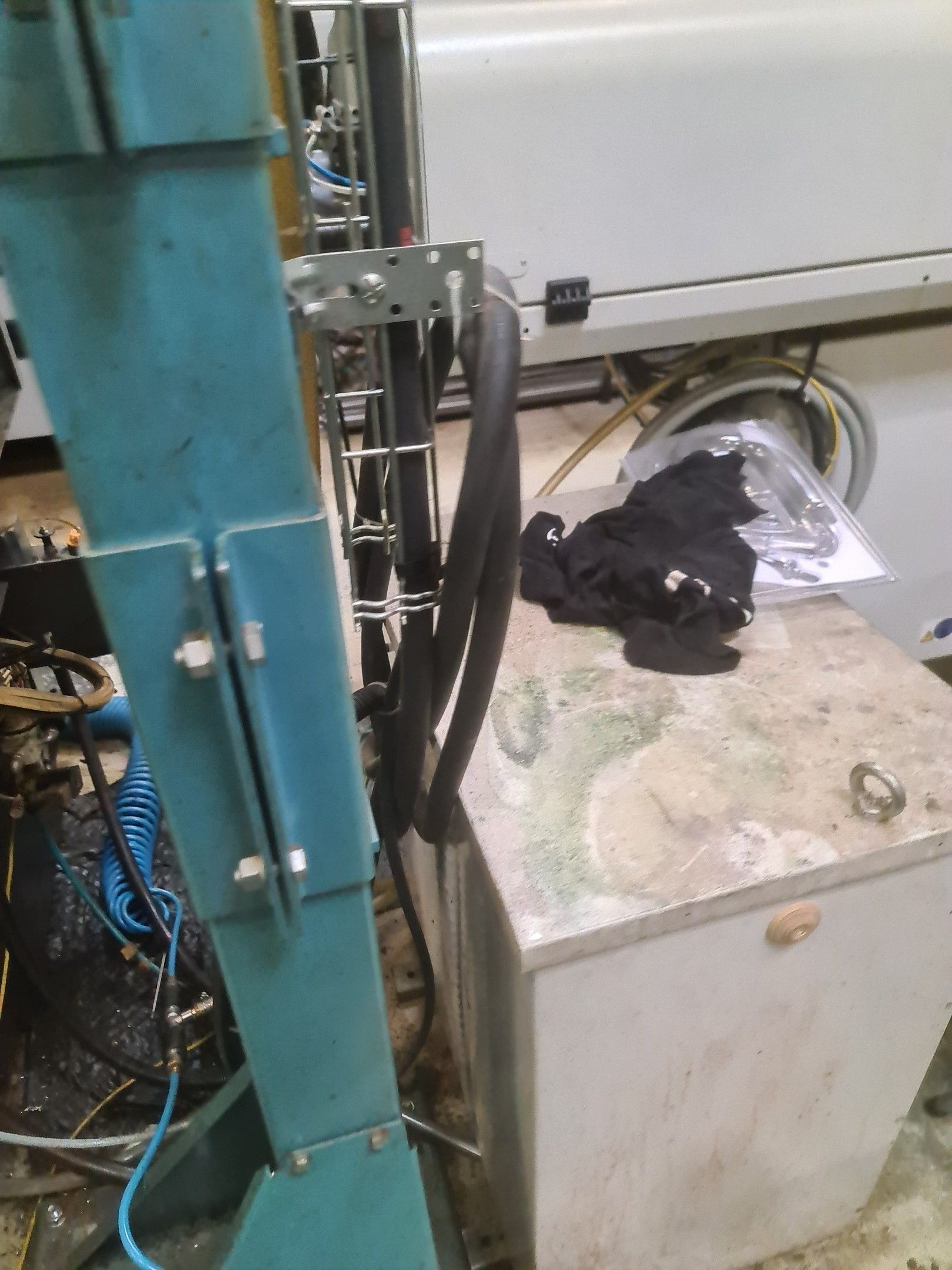 a TSUGAMI machining centre model BO206E-II, year 2014 with Fanuc Series 32i numerical control, model B, a suction system, a 2013 IEMCA Elite 220 bar feeder, a red metal sideboard, a metal cupboard, spout trays, tubes and metal parts.