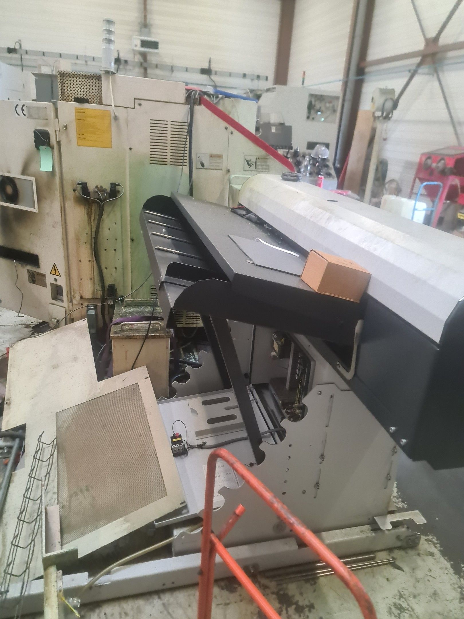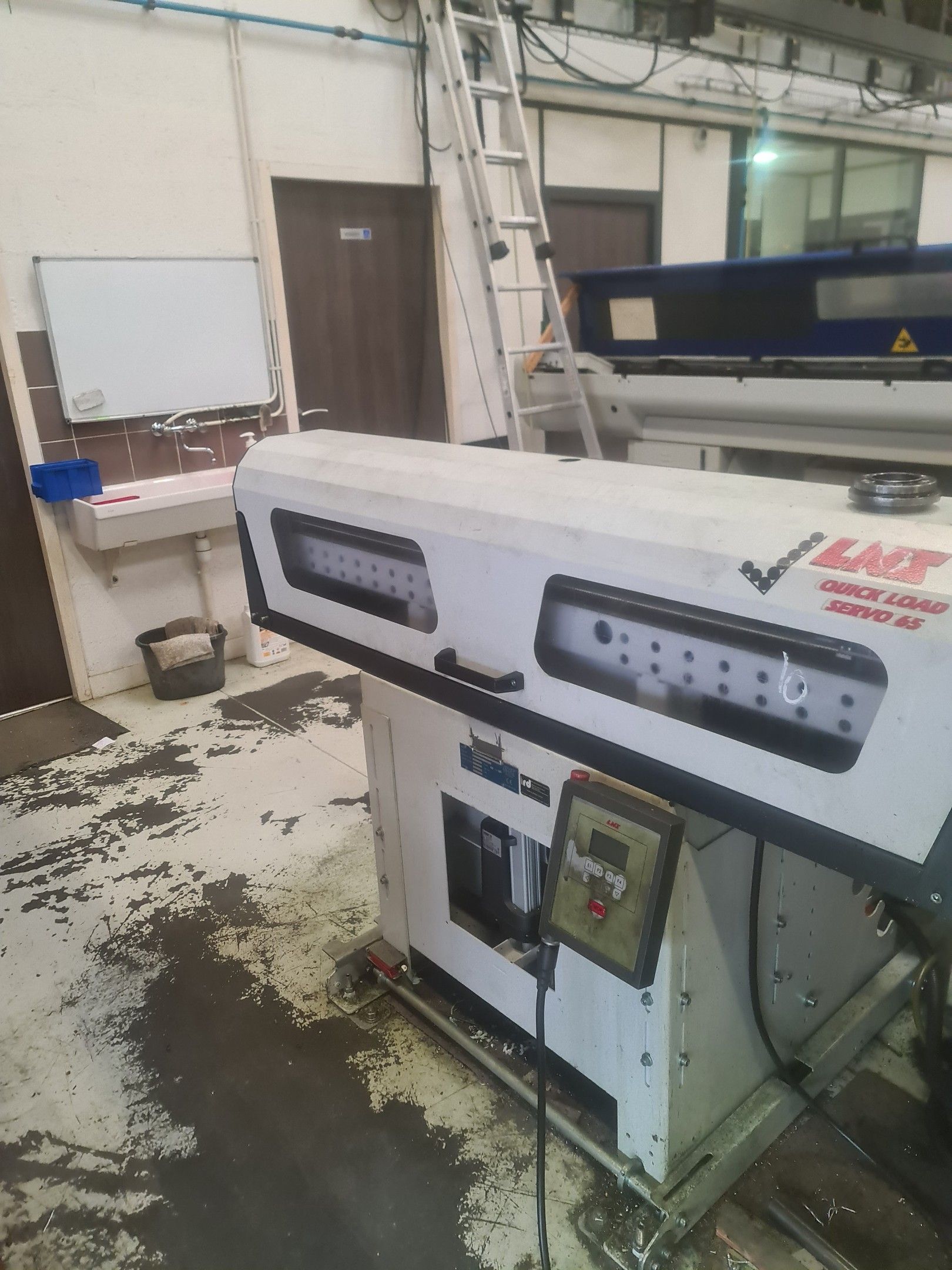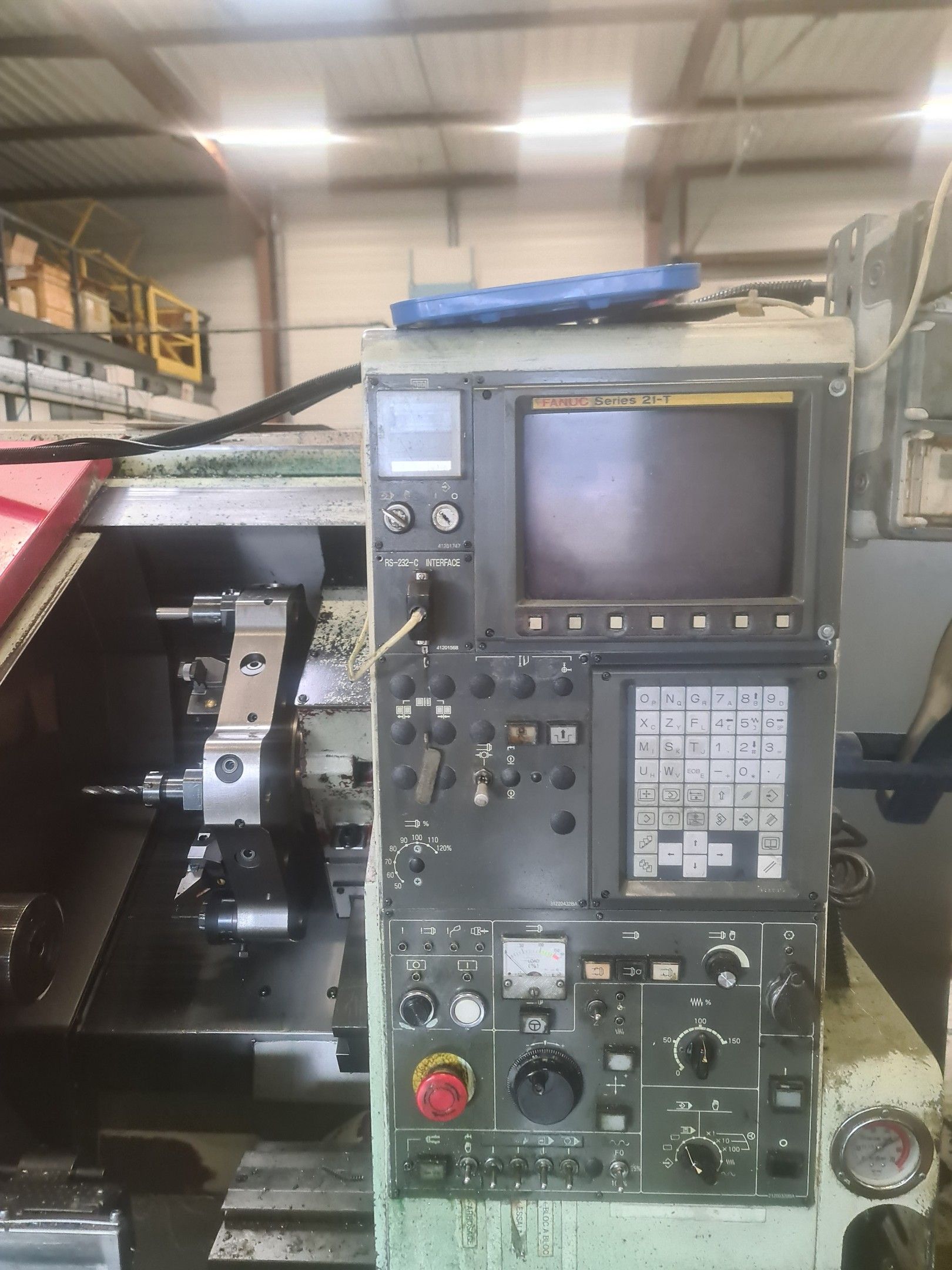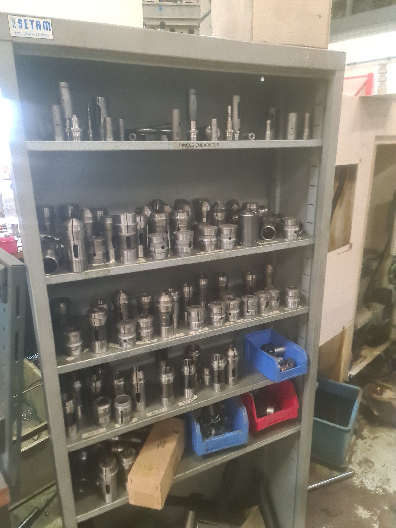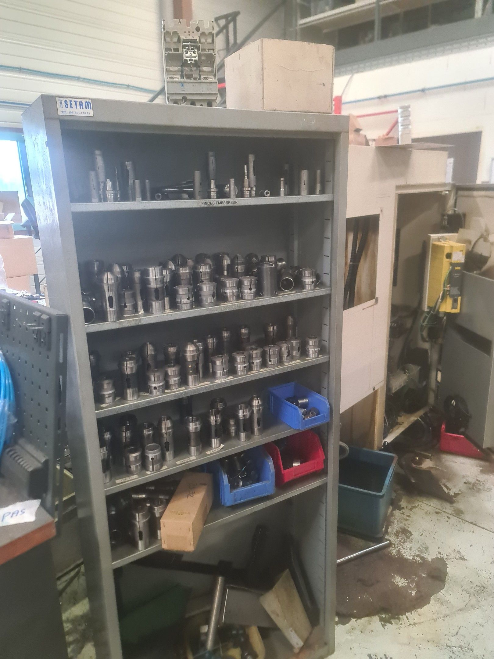 a NAKAMURA-TOME machining centre model TMC-18 year 1998, Meccanic Series 21 T numerical control, 2 grey wooden and metal workbenches with various accessories, LNS quick load servo 65 bar feeder, vice, an empty FACOM workshop trolley