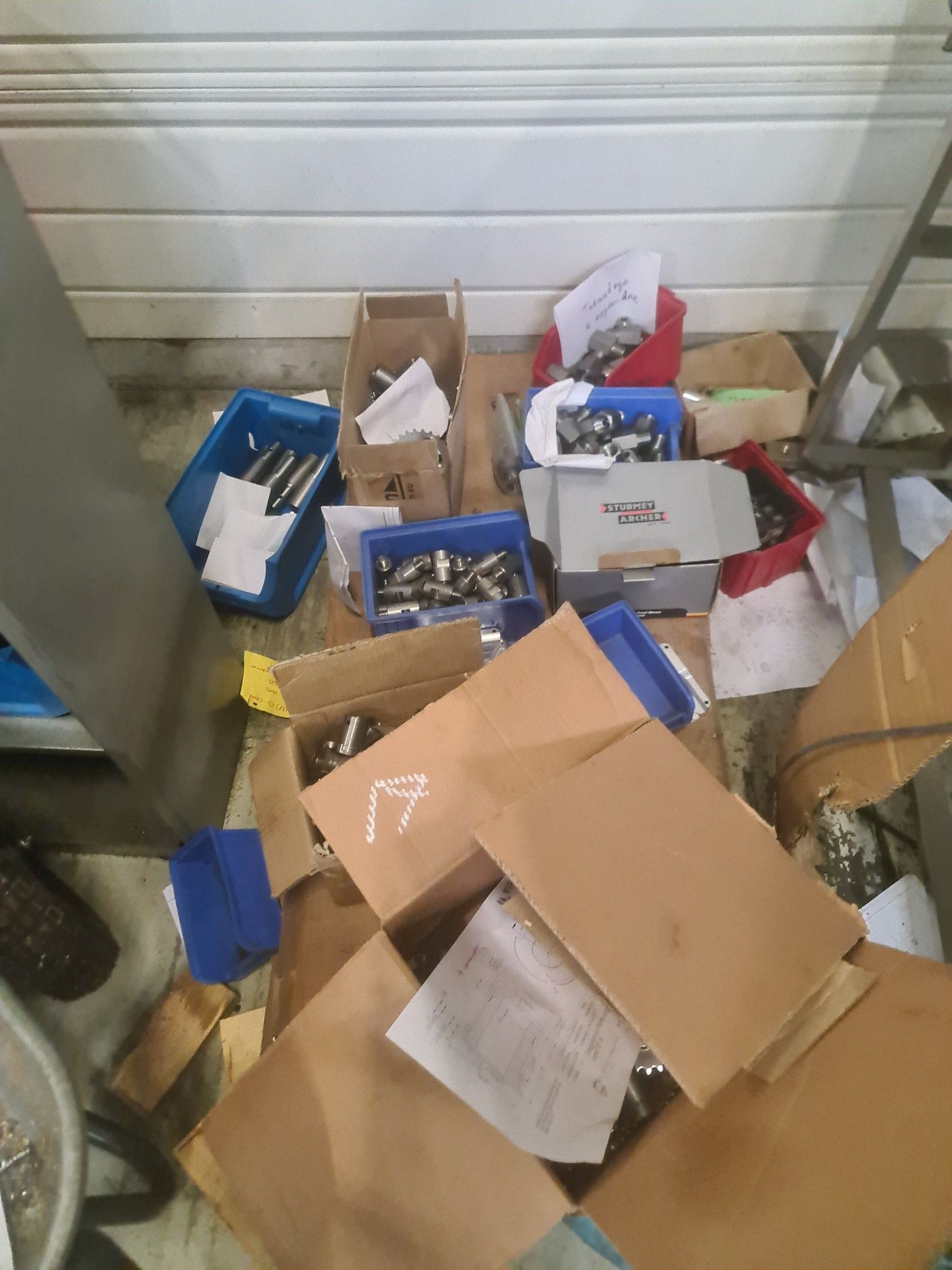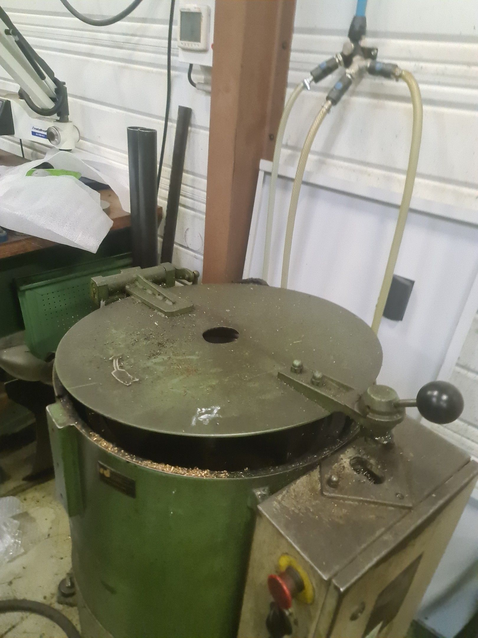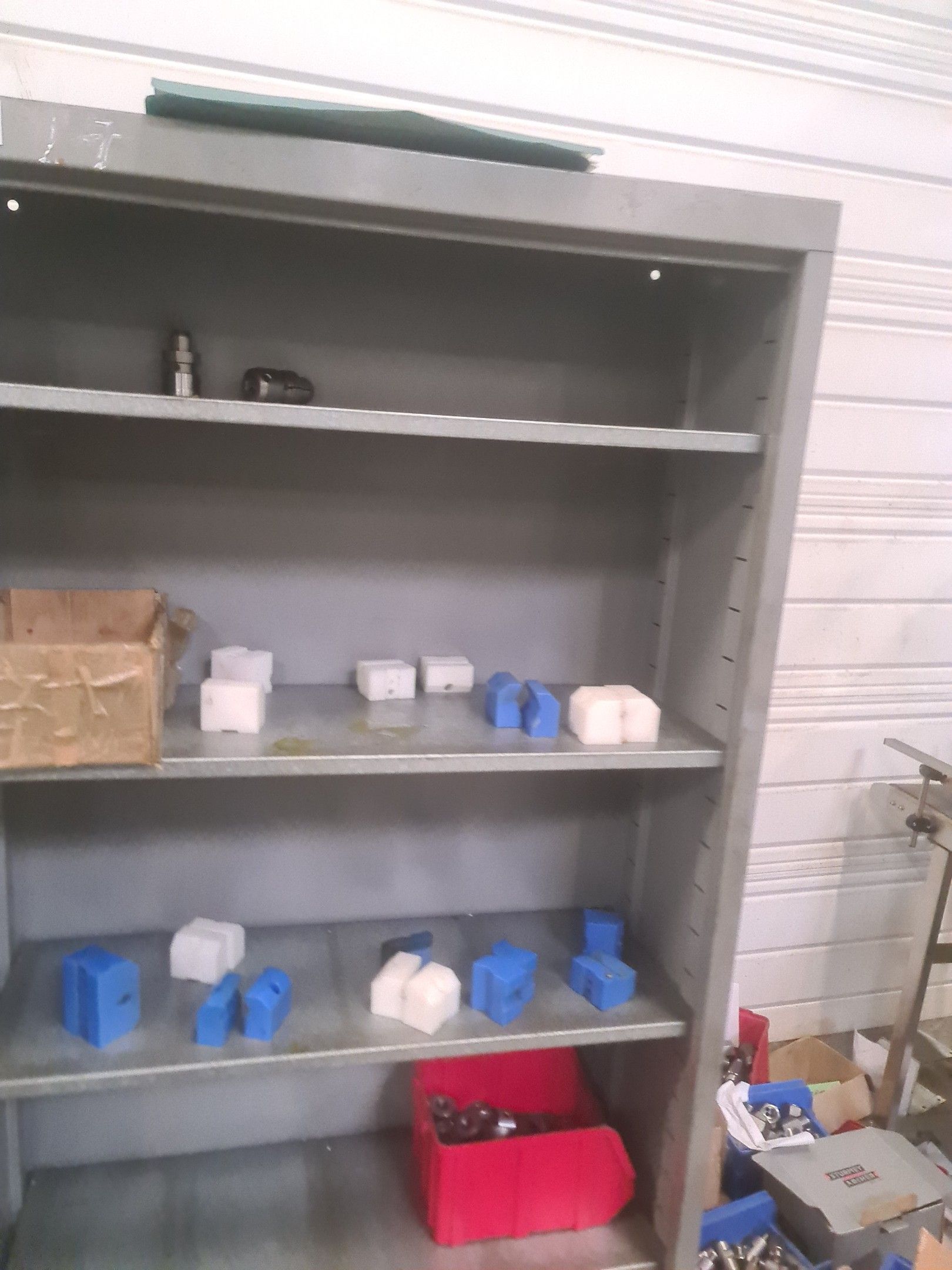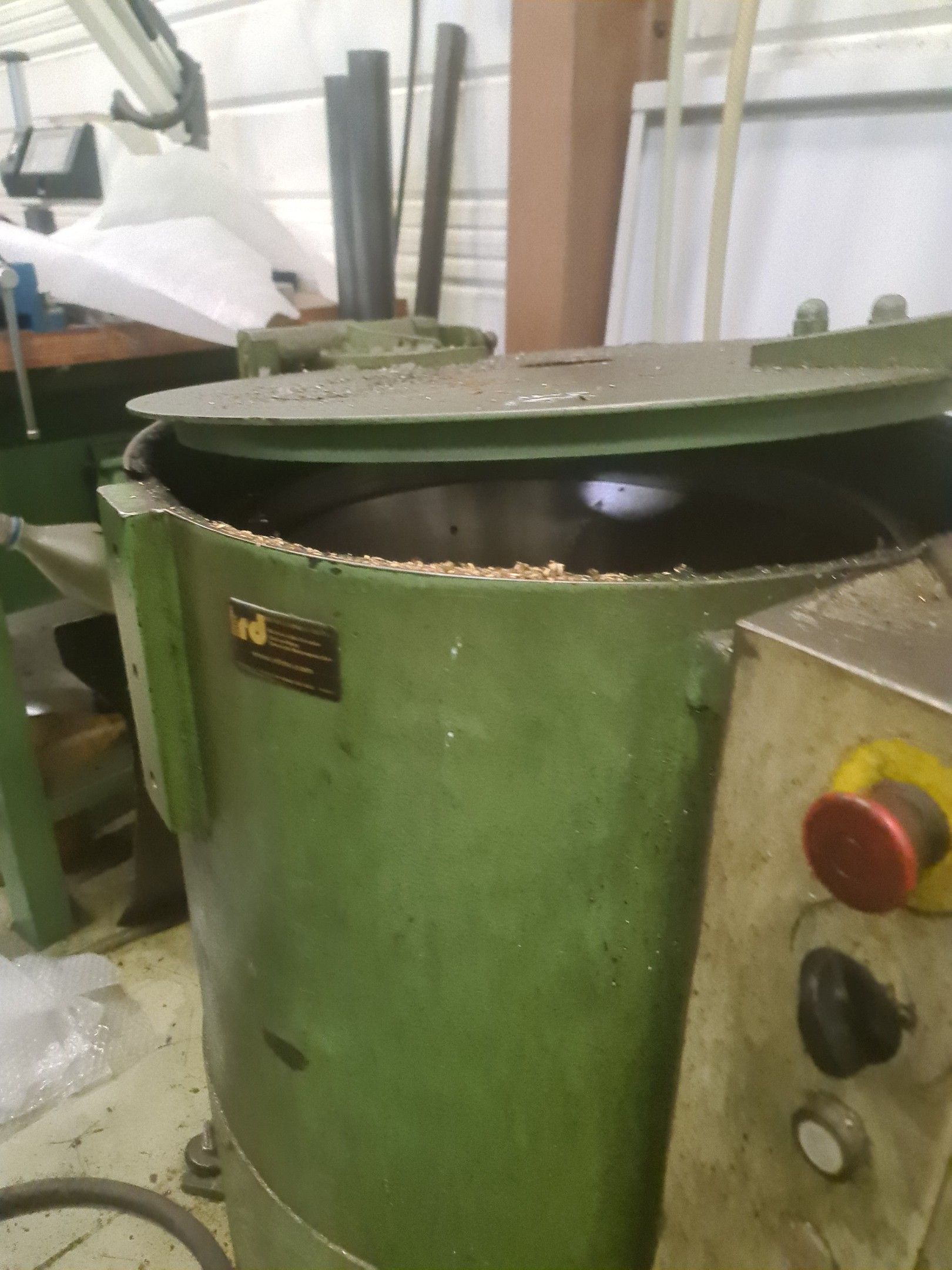 a STEIMEL chip wringer model CB year 1999, a metal cupboard, wheelbarrow, metal parts