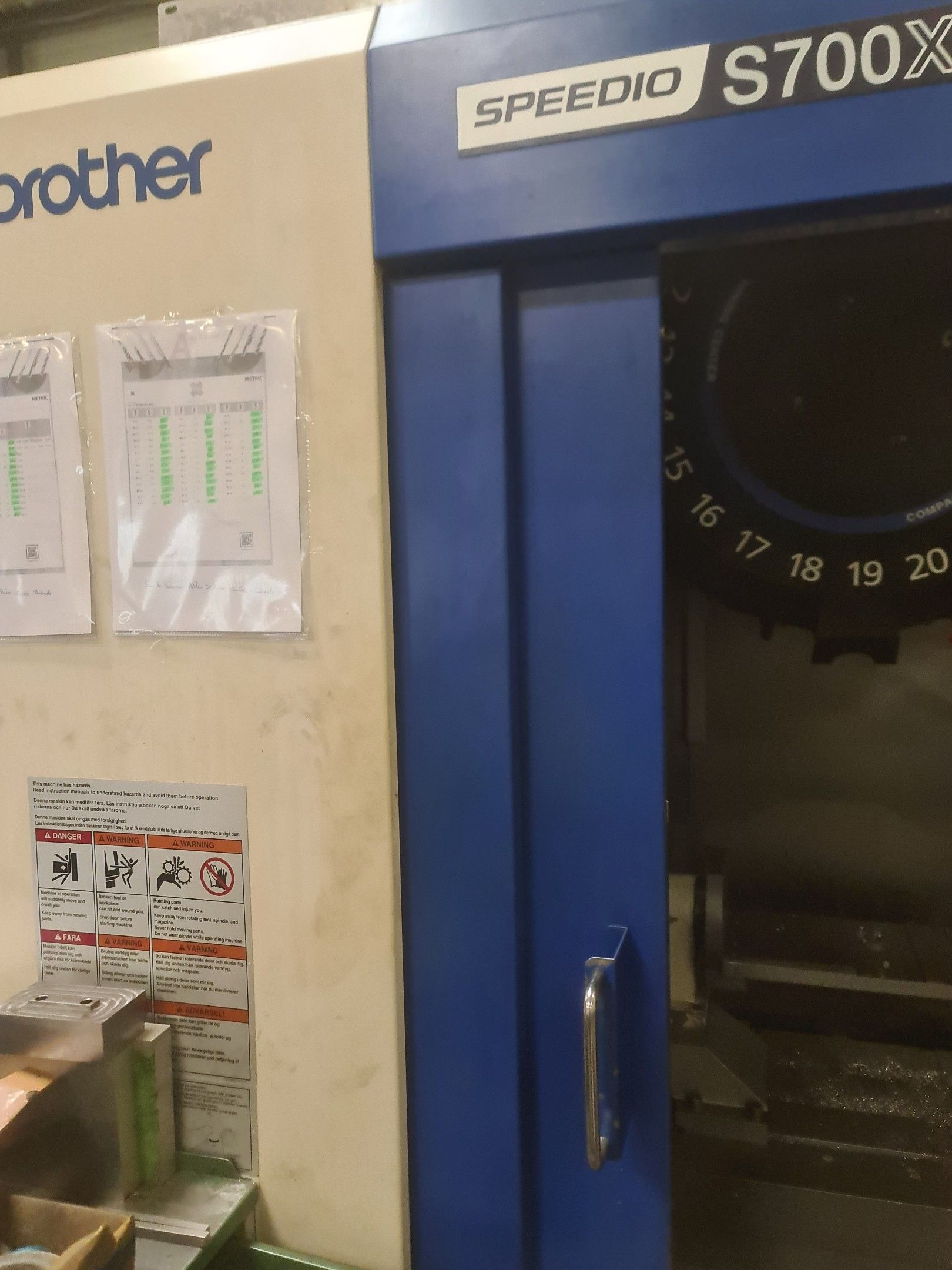 a four-axis machining centre BROTHER model Speedio S700 X1 year 2013, magazine capacity 21 tools, numerical control BROTHER