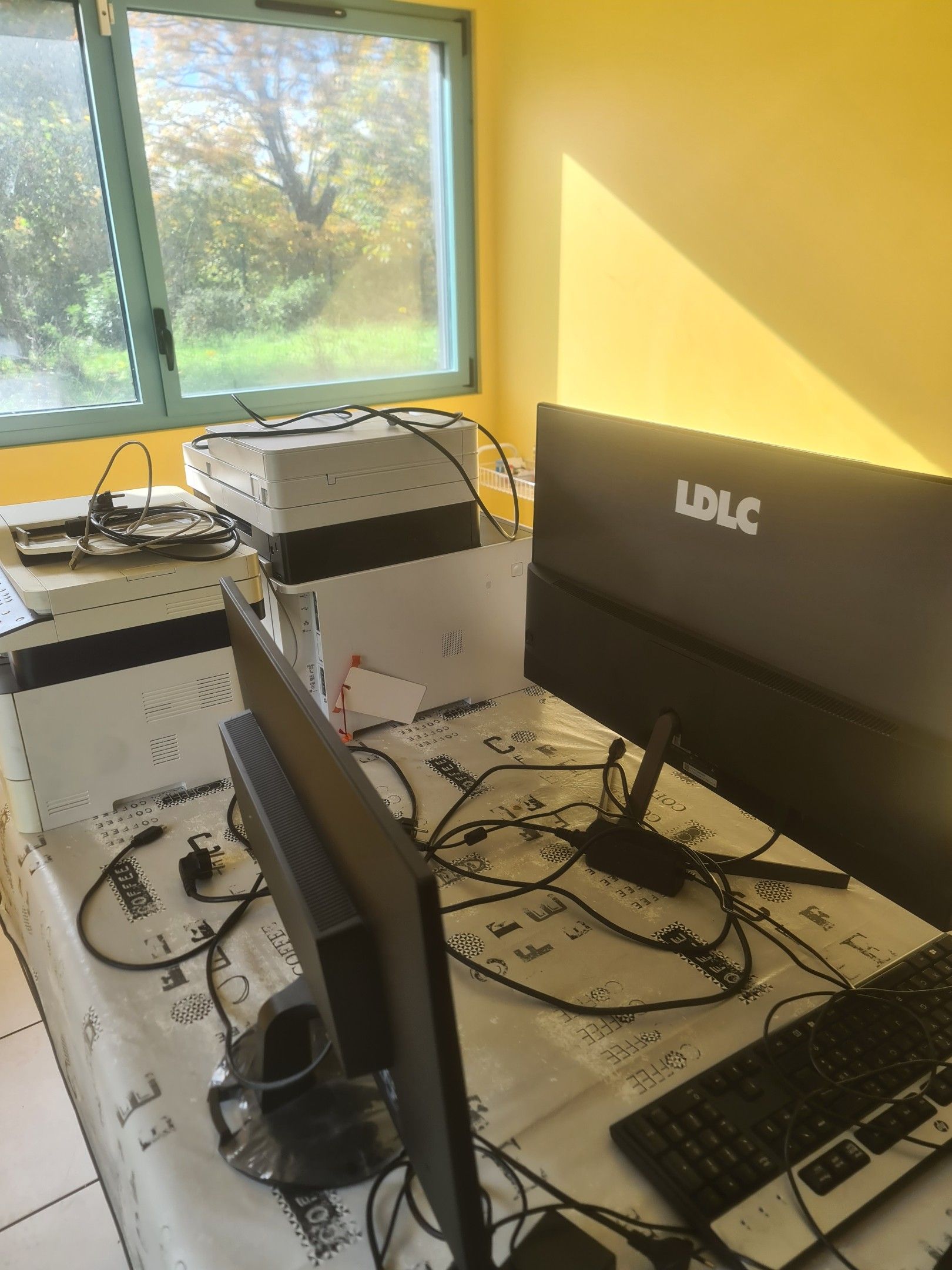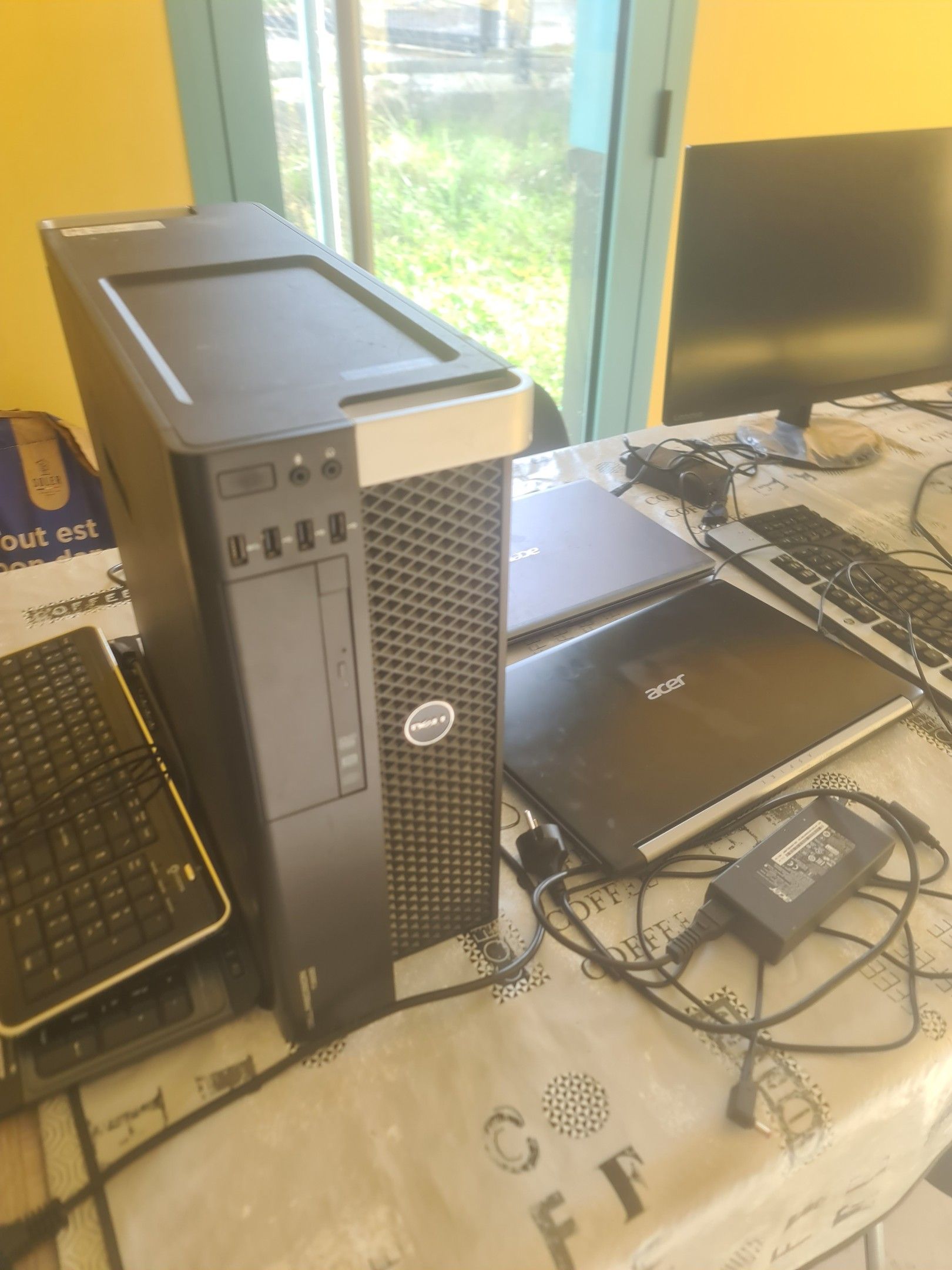 a BROTHER scanner, a DELL precision T3600 server, 2 ACER laptops, an LDLC monitor, a Xerox WorkCenter 3225 printer, a Canon MF744CDW printer, a Lenovo monitor