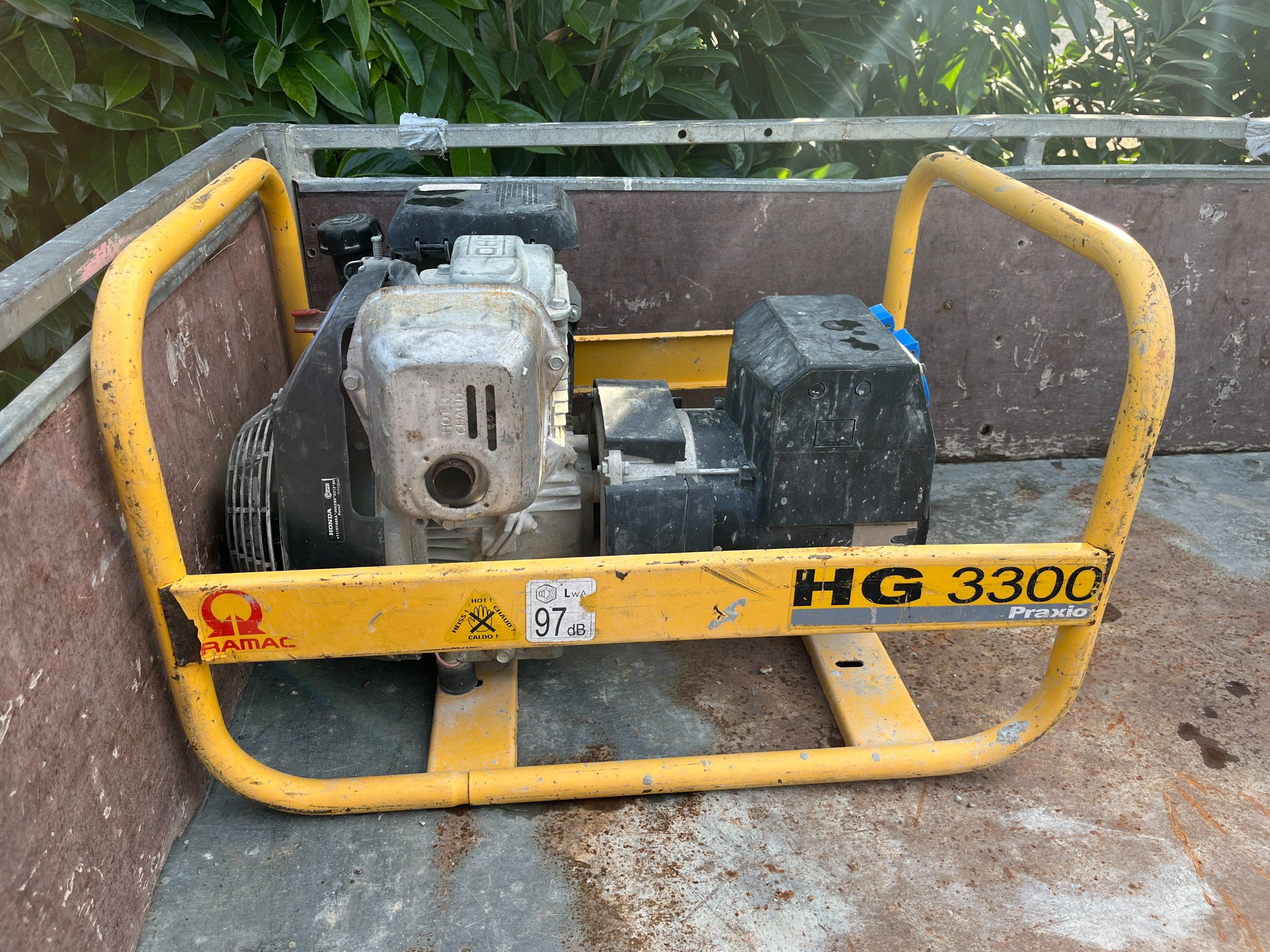 One HG 3300 230V generator and one MACC metal stepladder are attached.