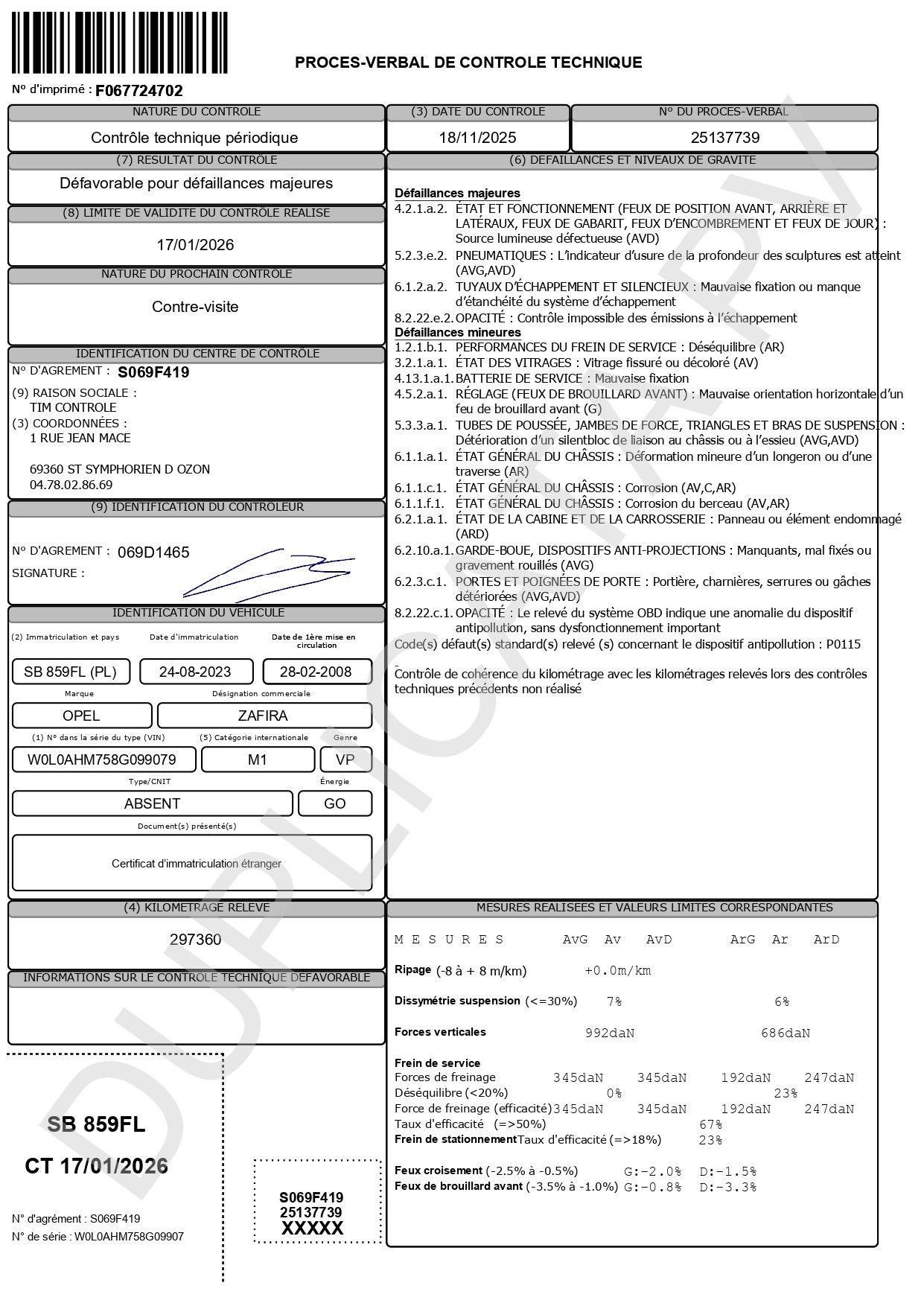 SB859SL OPEL ZAFIRA VP Polish registration, we have the original Polish document "WSPOLNOTA EUROPEJSKA RZECZPOSPOLITA POLSKA", vehicle dated 28/02/2008, diesel, 297351km, scratches and bumps, bumps to windscreen, corrosion, battery out of order, 2 keys, it is the buyer's responsibility to complete all the formalities and procedures for re-registration and to pay any costs associated with these procedures.