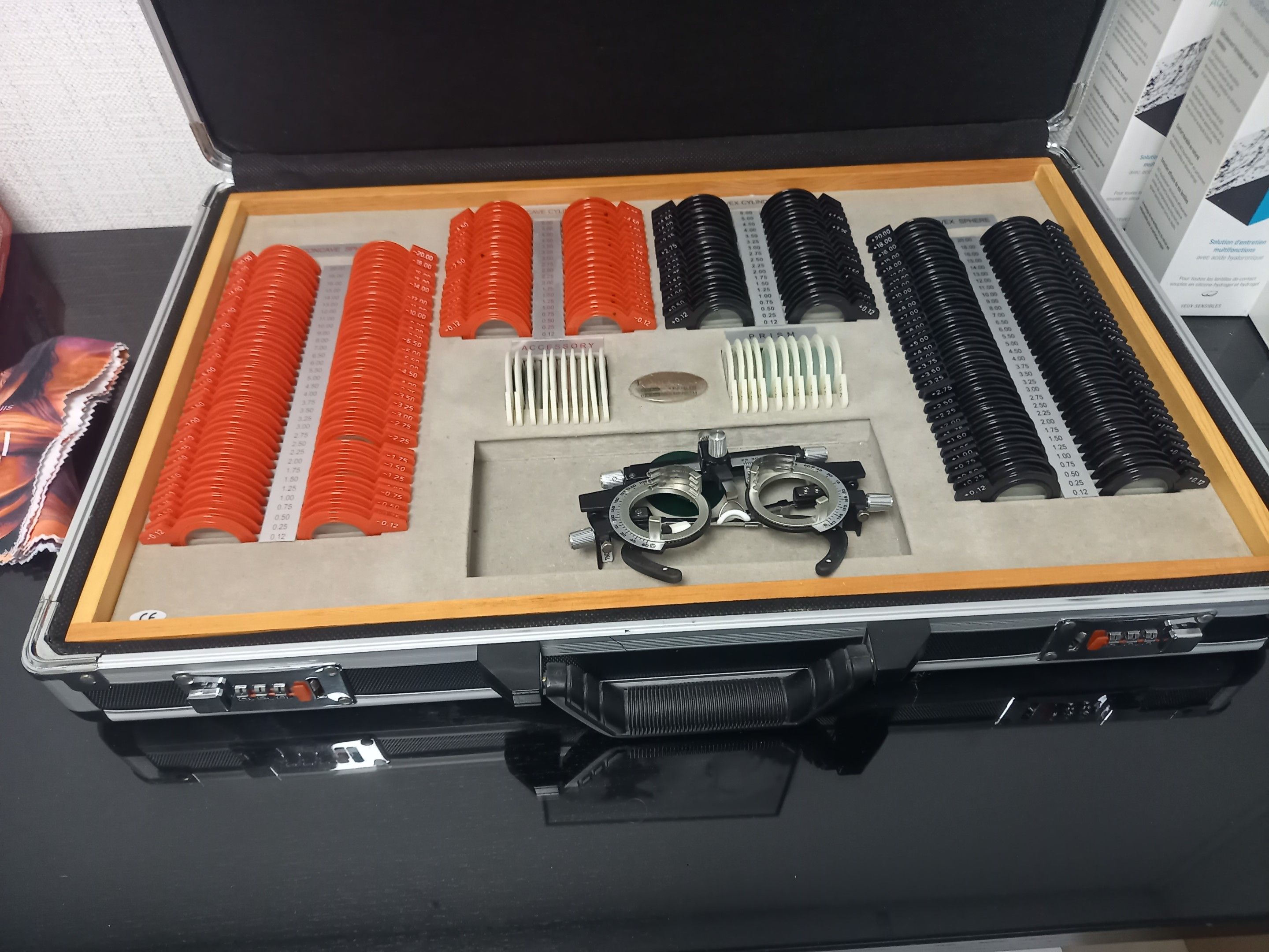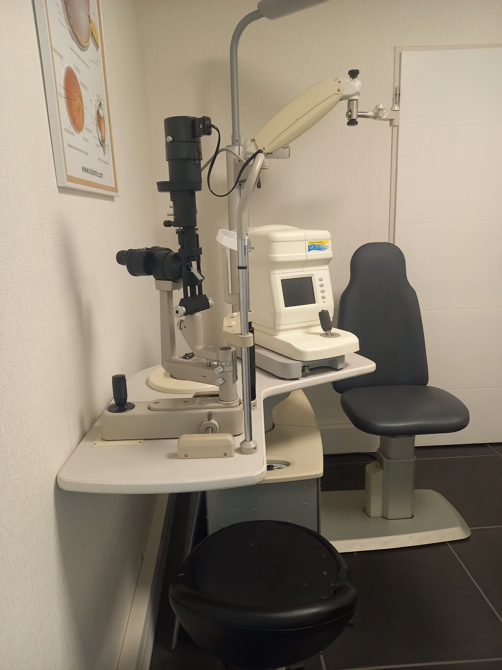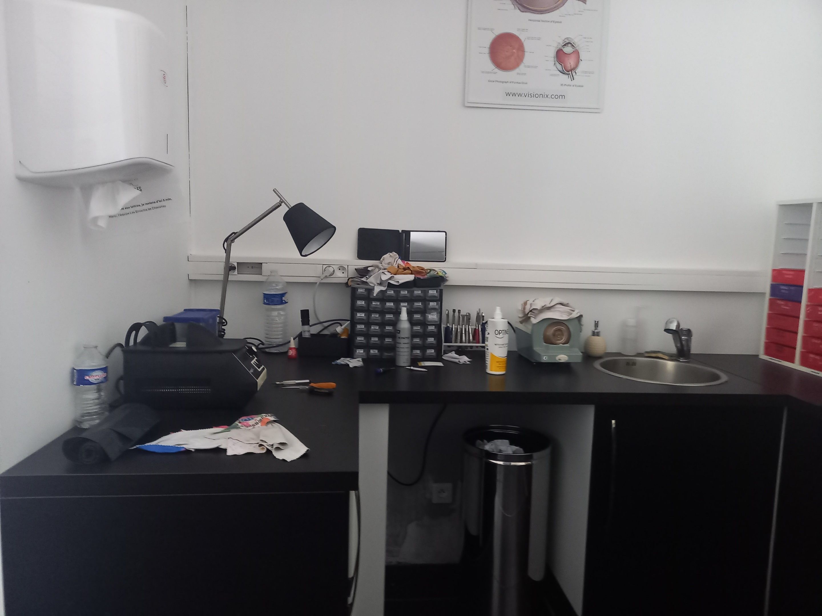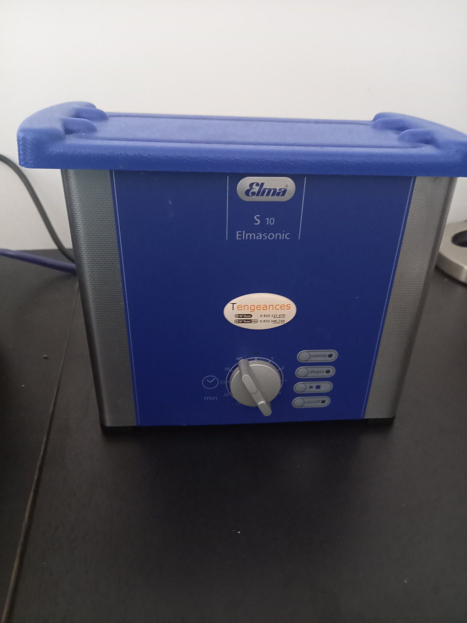 Frontofocometer VISIONIX DIGITAL LENSMETER (about 10 years old), Assembly line with grinder and centring machine ALTA XL BRIOT (year about 2009), Hand grinder TEAGEANCER AC 220 V 240 V 50/60 Hz, Various screws and clamps of different diameters, Blue ultrasonic tank ELMA S10 ELMASONIC, Chaufferette MAGAS, Lampe de bureau noir (Matériel ancien environ 10 ans) (Suite Liquidation Judiciaire GJB OPTICIENS / ALLIANCE MJ en date du 07/10/2025) (Exhibition on Tuesday 25 from 16 Heures to 16 Heures 30 au ZA de Verlieu, CC Leclerc, 42410 CHAVANAY)