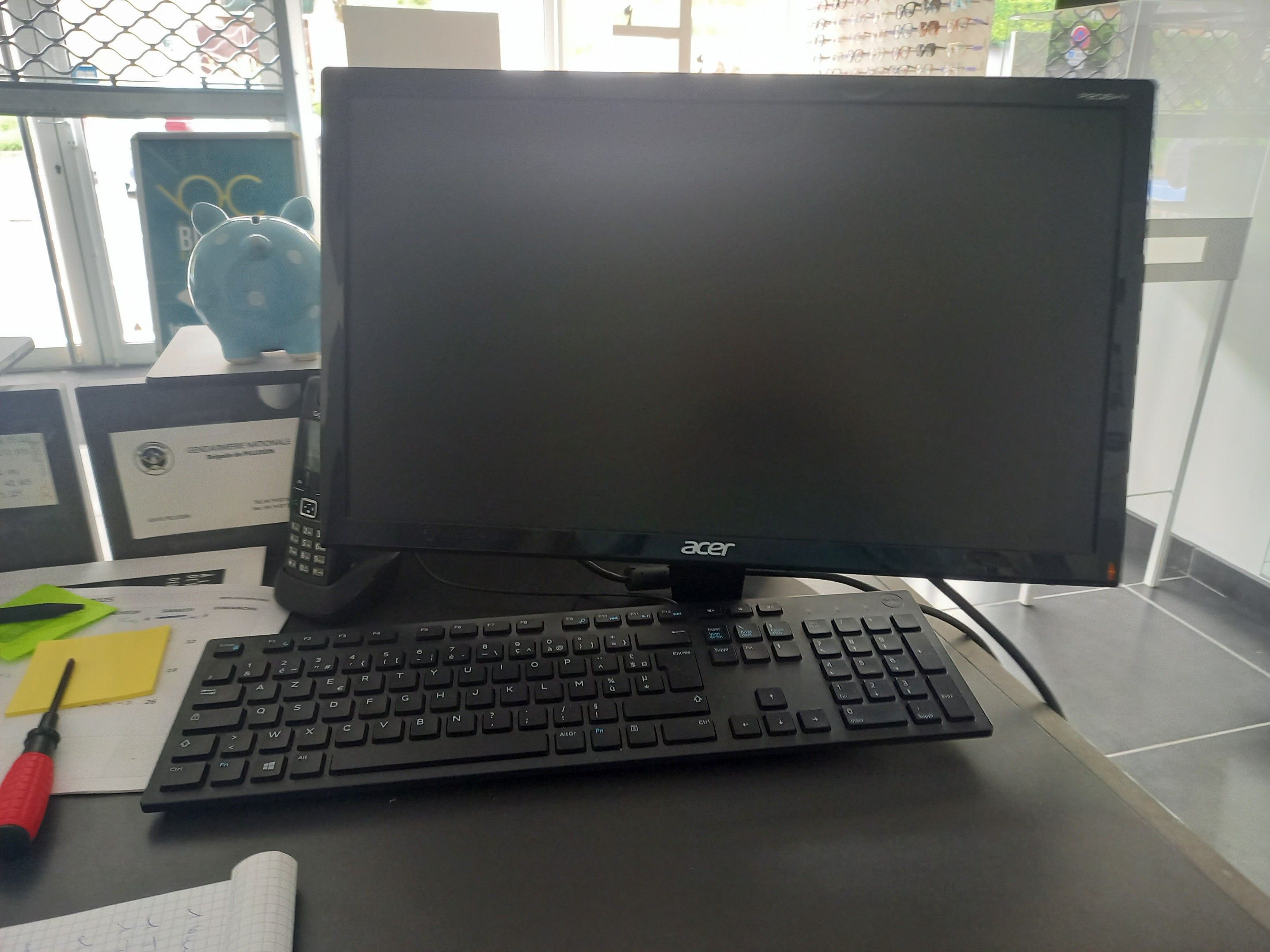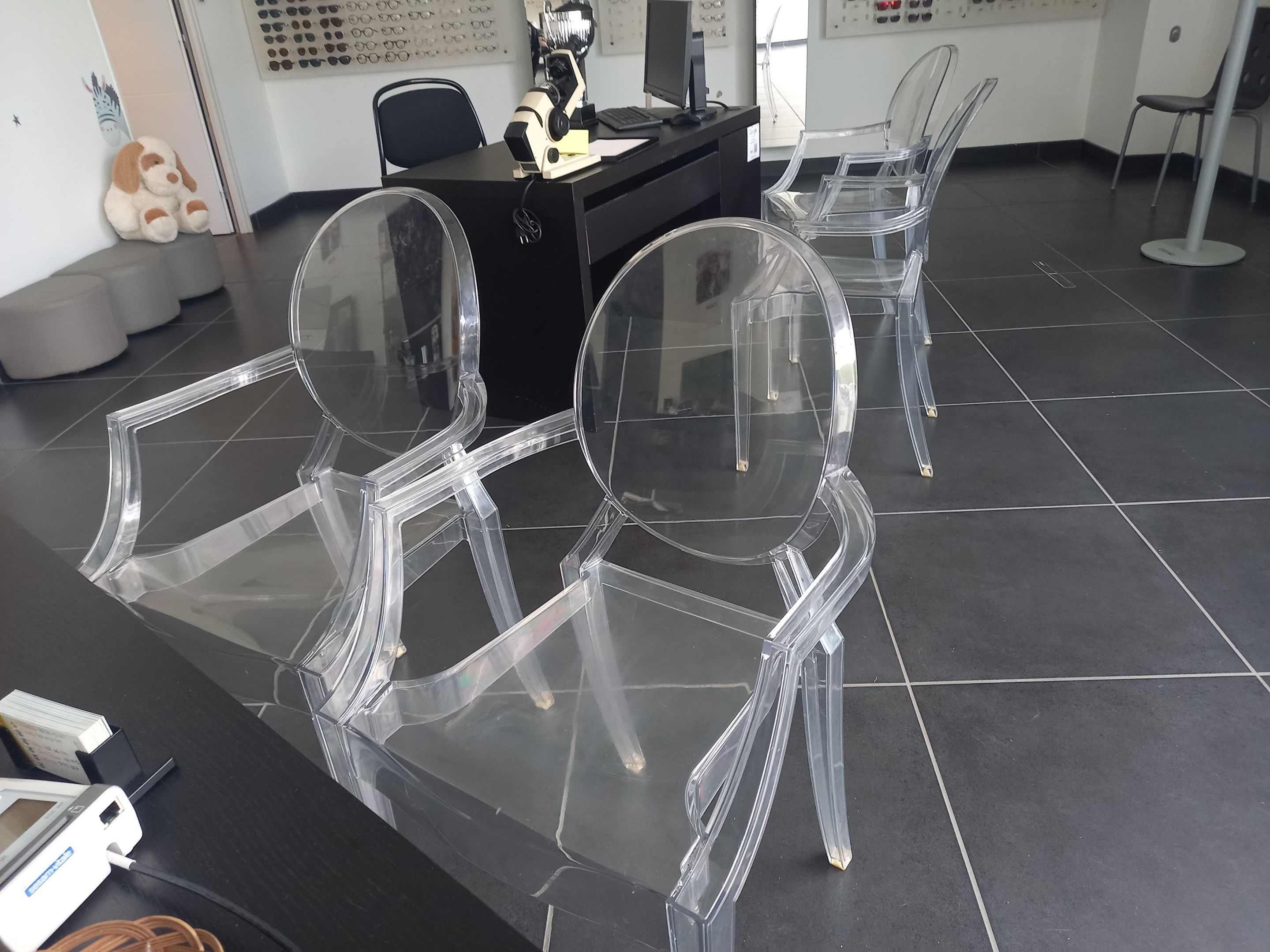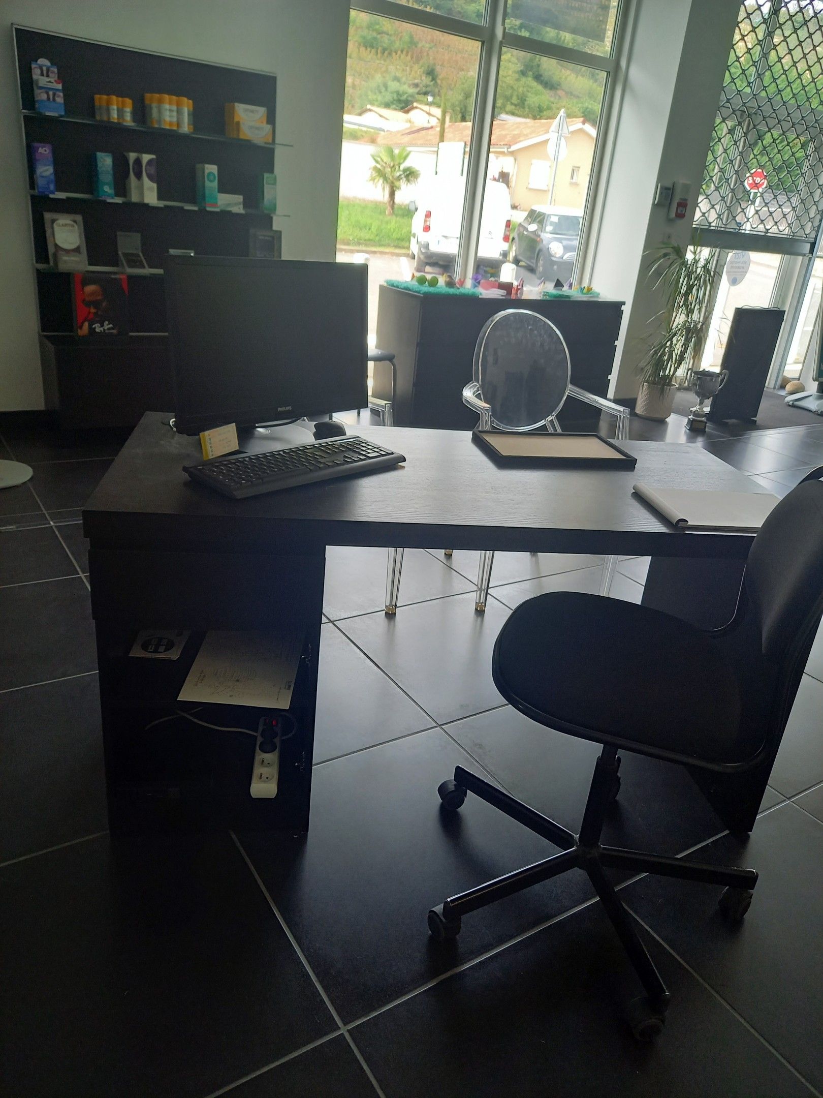 Desk with 2 levels and 1 drawer, ACER monitor, DELL central unit, armchair with castors, 6-drawer base unit with decoration, desk, DELL central unit, PHILIPS monitor, 4 transparent plastic chairs, 6-drawer base unit with CHIQ television with remote control, Desk, Chair, DELL central unit, PHILIPS PC, Display unit with drawer underneath and 3 shelves, 3 Poufs with 1 plush toy, AYA top fridge, 2 Low units with 6 drawers, Step ladder, DELL PC, PHILIPS monitor, Coffeemaker, Kettle, ROWENTA hoover.