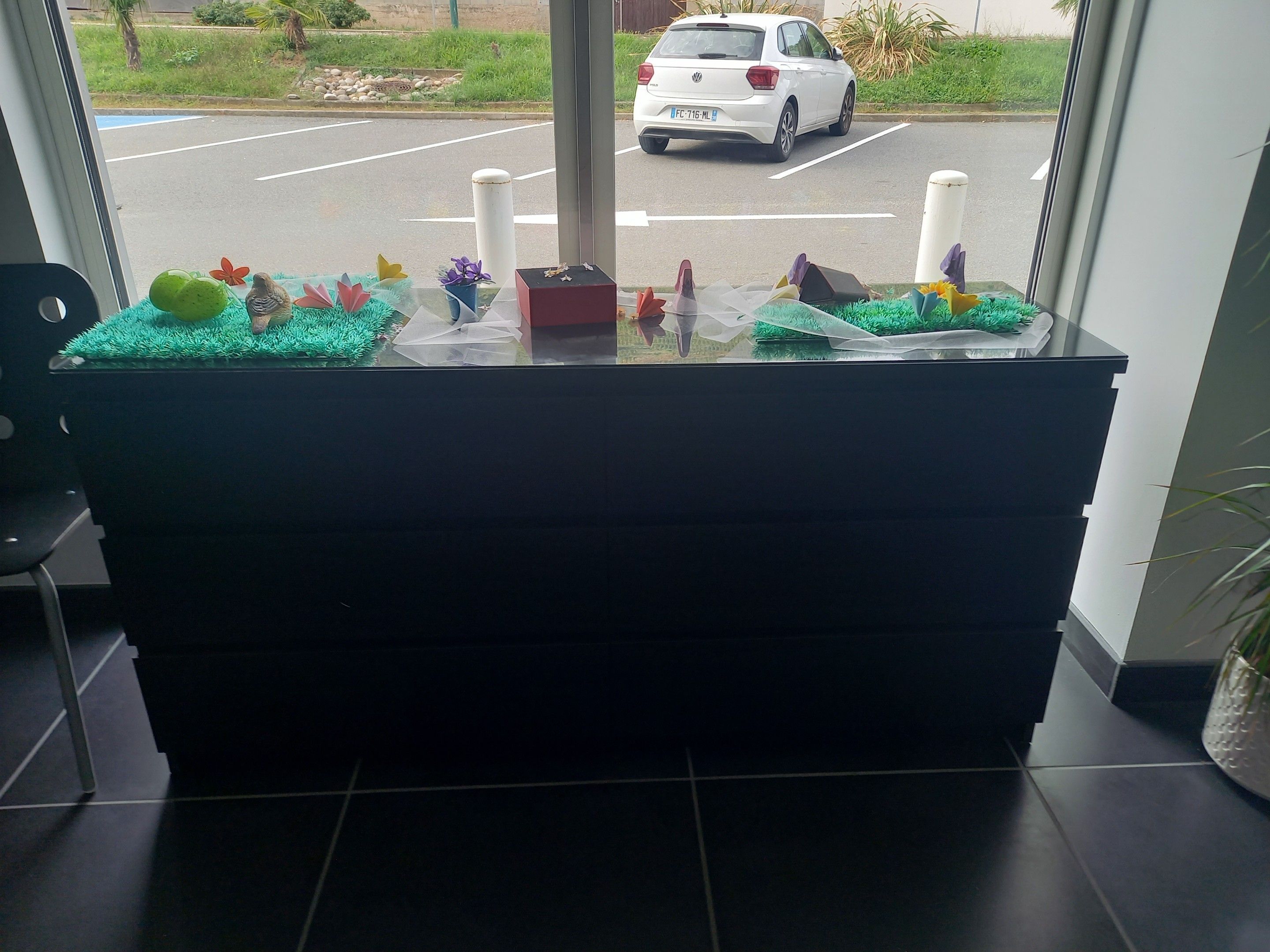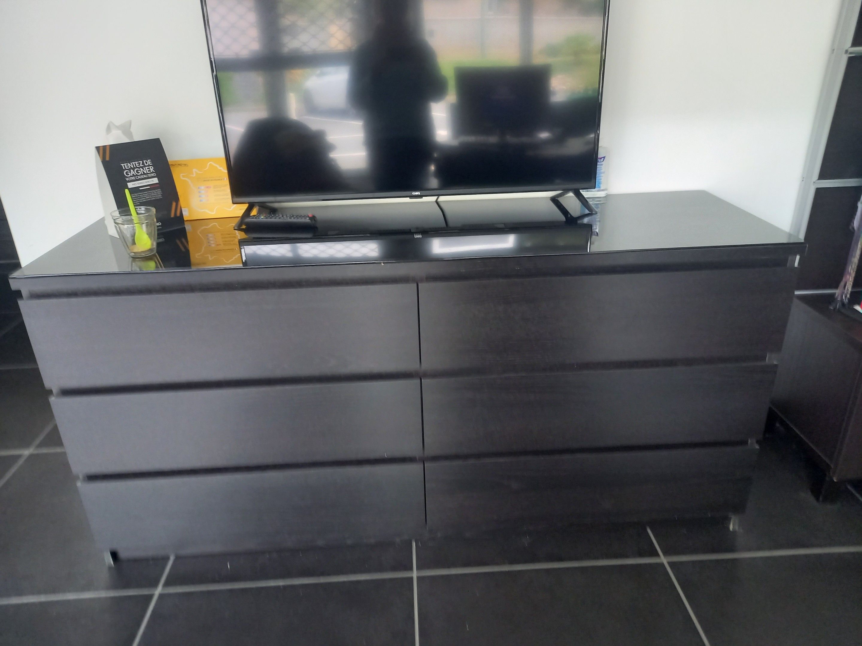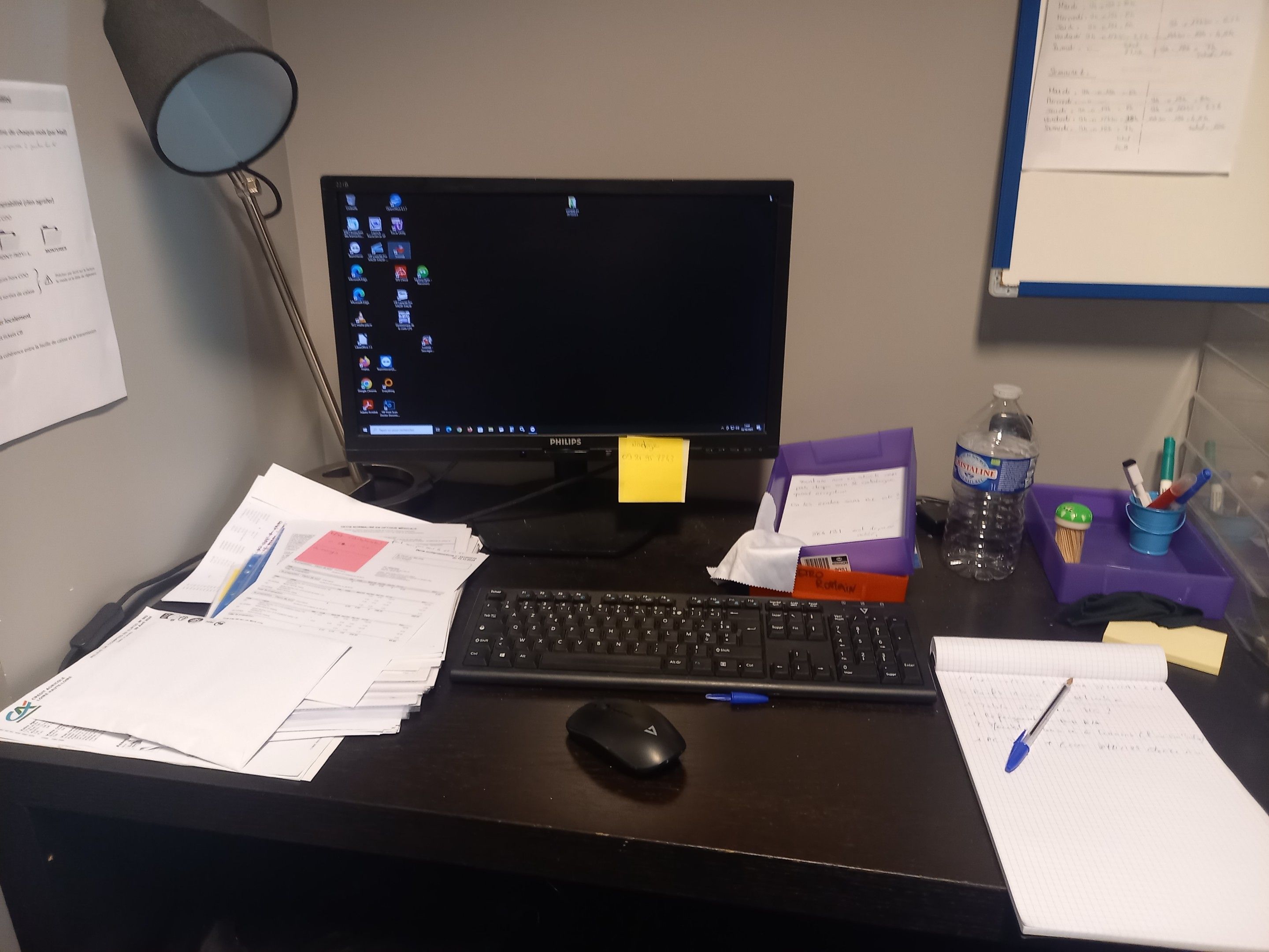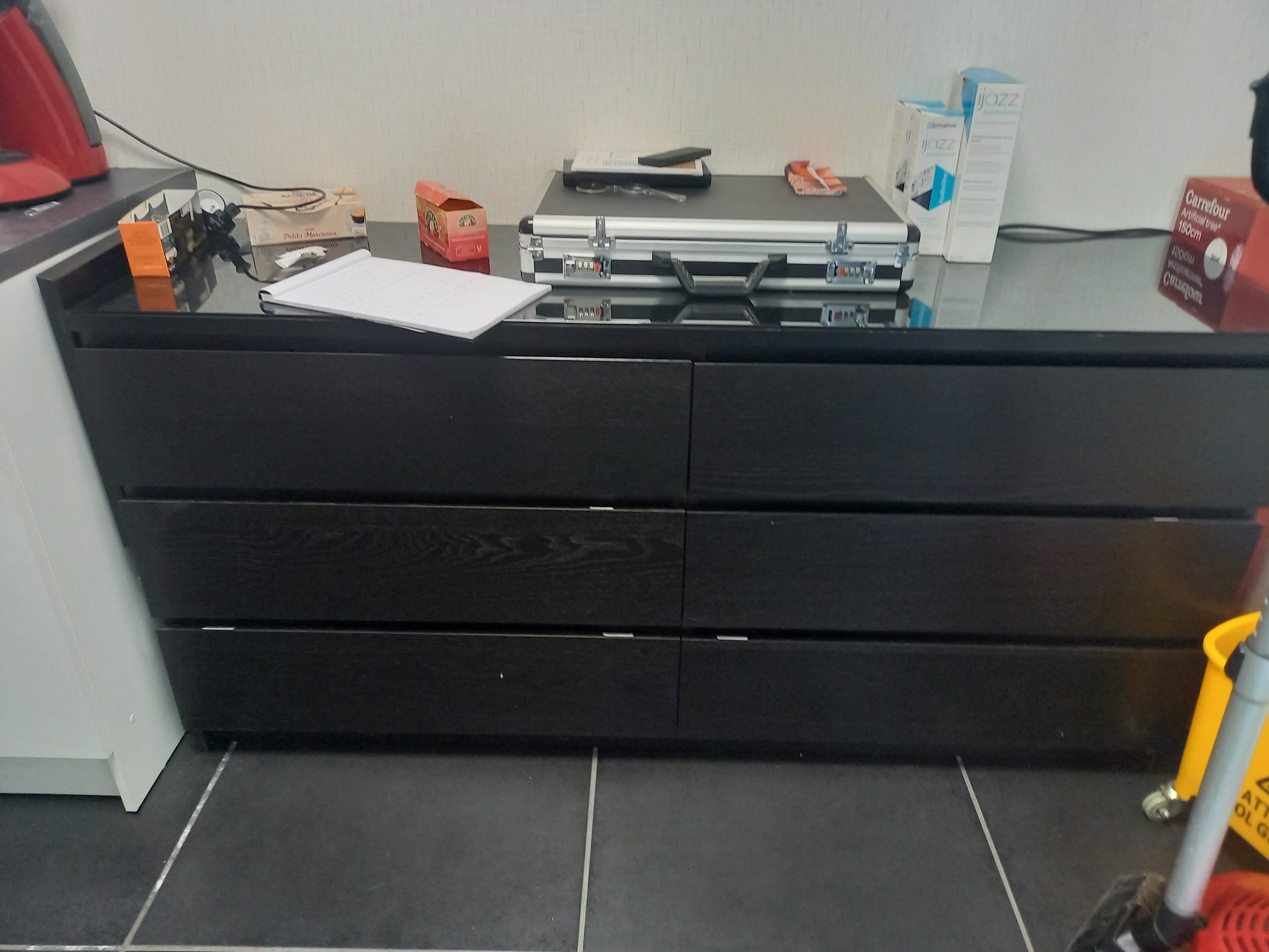 Desk with 2 levels and 1 drawer, ACER monitor, DELL central unit, armchair with castors, 6-drawer base unit with decoration, desk, DELL central unit, PHILIPS monitor, 4 transparent plastic chairs, 6-drawer base unit with CHIQ television with remote control, Desk, Chair, DELL central unit, PHILIPS PC, Display unit with drawer underneath and 3 shelves, 3 Poufs with 1 plush toy, AYA top fridge, 2 Low units with 6 drawers, Step ladder, DELL PC, PHILIPS monitor, Coffeemaker, Kettle, ROWENTA hoover.