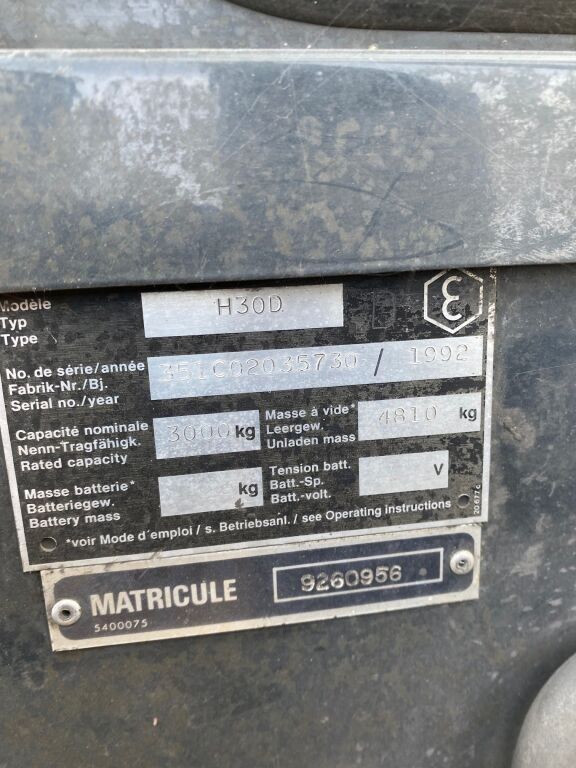 Fenwick h30 diesel forklift (3t) in good working order (brakes to be reviewed), 1588 hours (not guaranteed)