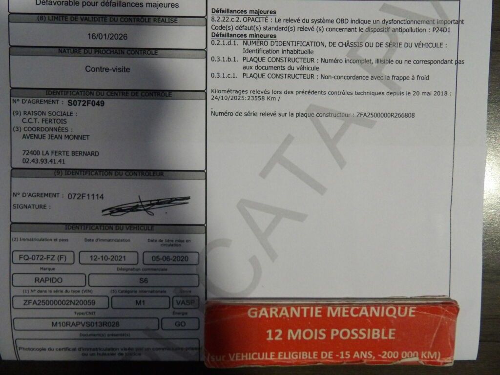 RAPIDO DUCATO CAMPING CAR 2.3 MJT 140CV 696F - Type: VASP - Body: CARAVAN - Energy: GO - Colour: WHITE - Odometer reading: 23680 - 1st E.M.C: 05/06/2020 - Power: 8 - Mine type: M10RAPVS013R028 - Seats: 4 - Length: 749 - Width: 235 - Height: 290 - Remarks: - FRONT RIGHT ELECTRIC WINDOW MALFUNCTION.