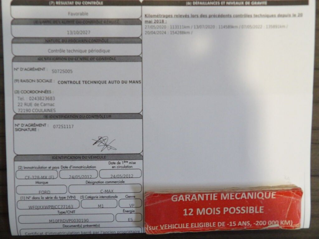 FORD C-MAX 1.6 SCTI 150CV S&S ECOBOOST TITANIUM - Type: PC - Body: BREAK - Energy: ES - Colour: GREY - Odometer reading: 159775 - 1ere M.E.C: 24/05/2012 - Power: 8 - Mine type: M10FRDVP0030190 - Seats: 5 - Length: 438 - Width: 183 - Height: 160 - Remarks : LINE 6 - 102 - Equipment : LIGHT SENSOR / REVERSING RADARS FRONT AND REAR / ALLOY WHEELS / CENTRAL LOCKING / GPS / GEARBOX 6 / RAIN SENSOR / ELECTRIC MIRRORS / RADIO CD / PREVOIR MAINTENANCE / CRUISE CONTROL / AIR BAGS / ELECTRIC WINDOWS / FRONT FOG LIGHTS / DUAL KEYS / AUTOMATIC CLIMATE CONTROL / BLUETOOTH