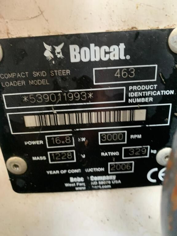 BOBCAT MINI LOADER Type 463, 2159 hours, year 2006, sold by …