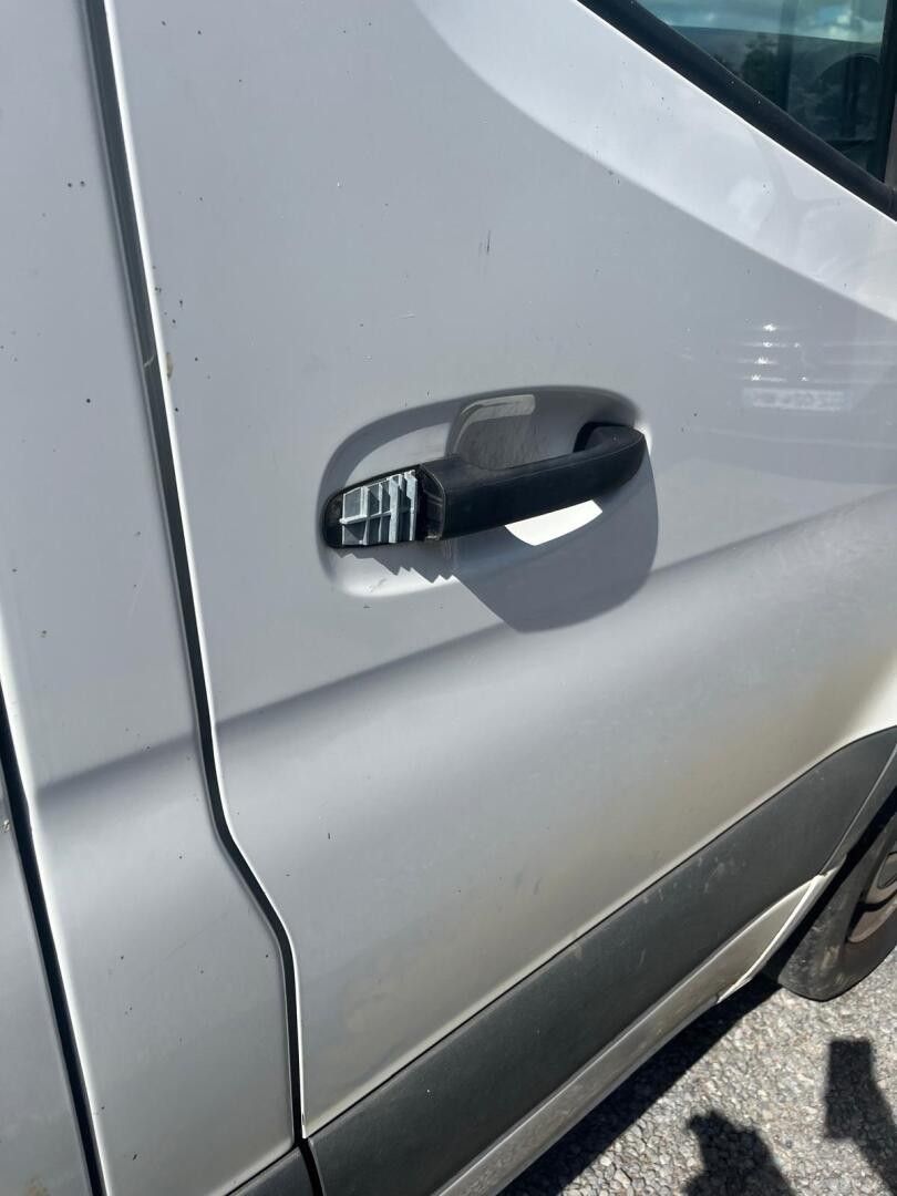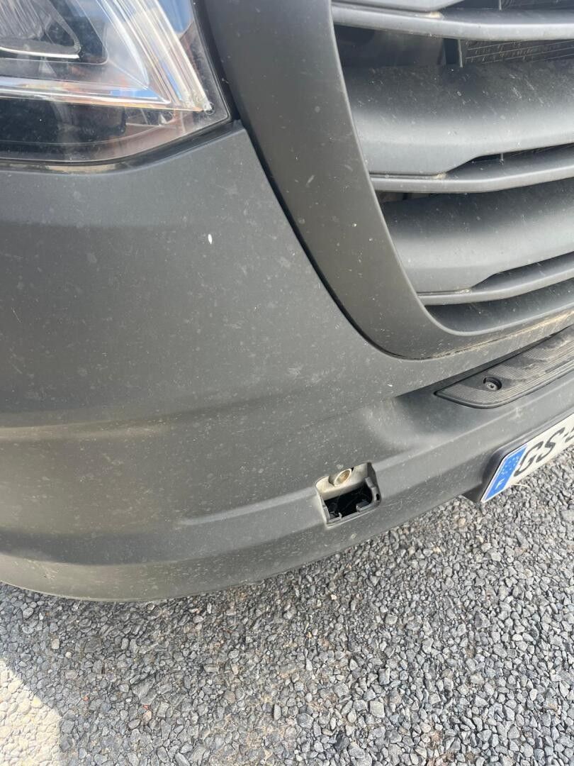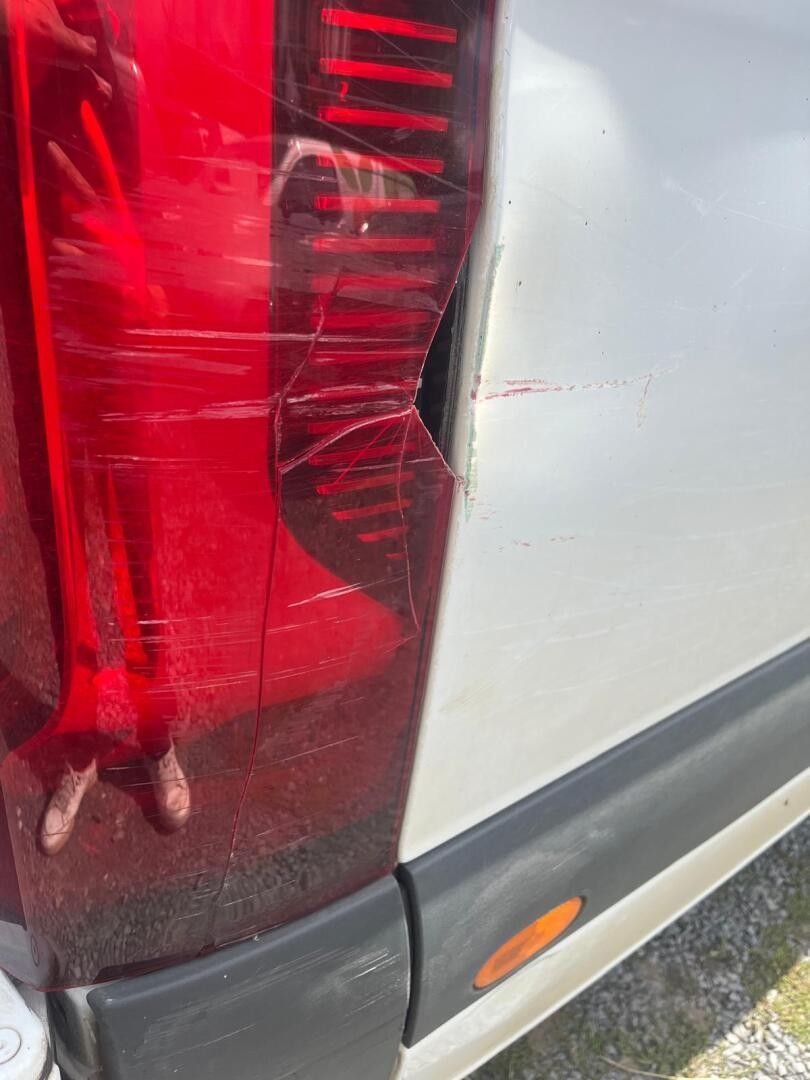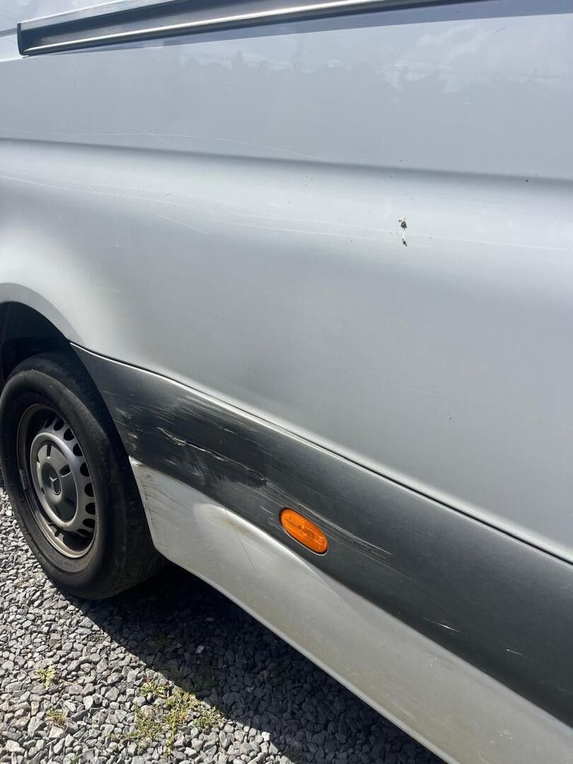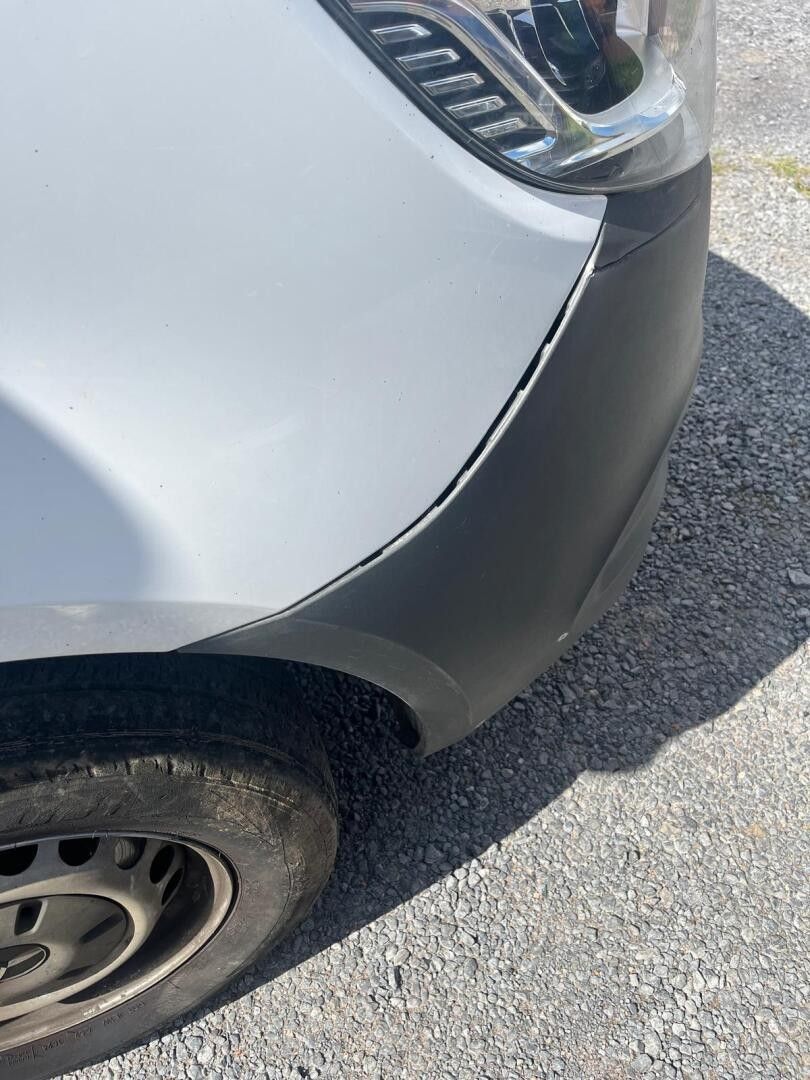Porte latérale, Rétroviseur droit cassé, voyant pneu, plastique parechoc avant mal fixé, rétroviseur cassé, rayures, insigne manquant, morceau parechoc arrière manquant, phares cassés, marche cassée, cache plastique poignée porte manquant,chocs et rayures