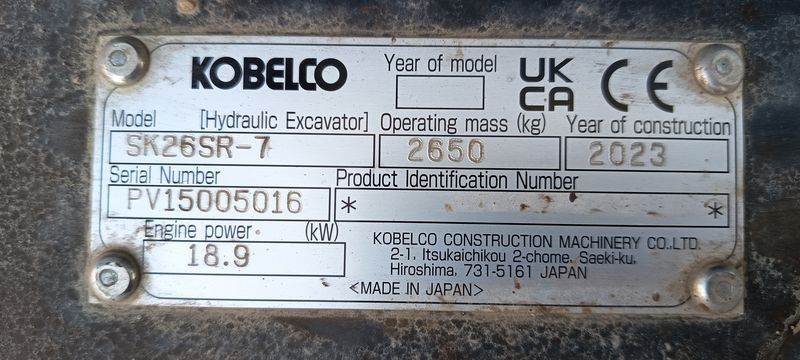 TP KOBELCO MINIPELLE SK26SR-7 SUR CHENILLE DIESEL 2,6 TONNES - 296 HEURES - ANNEE 2023-Energie : GO-TVA récupérable-Equipements : MATERIEL FONCTIONNEL/HORAMETRE : 296 HEURES/MATERIEL PLAQUE CE/EQUIPE AVEC 1 GODET DE CURAGE ET 3 GODETS RETRO/GODET DE CURAGE : 1180 MM X 320 MM/GODET RETRO : TLU 0300 H03025 DE 2023/DIMENSIONS : 280 MM X 400 MM/GODET RETRO :TLU 0450 H 03030/DIMENSIONS : 430 MM X 430 MM/GODET RETRO : TLU 0700 H 03030 DE 2024/DIMENSIONS : 680 MM X 430 MM/PRESENTATION VIDEO : https://youtu.be/7xFFAfuow_Q/VGP OK/