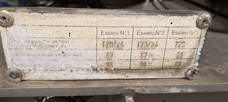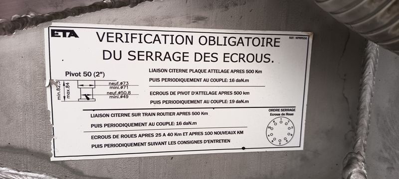 SREM ETA SEMI REMORQUE SR3A CITERNE ALIMENTAIRE 3 ESSIEUX - PTAC : 38 TONNES - ANNEE 2016 - Dmec : 07/10/2016-Carrosserie : CIT ALIM-TVA récupérable-Equipements : HISTORIQUE CONTROLE TECHNIQUE/FEUX DE SIGNALISATION NON TESTE/CITERNE NON TESTE/PV : 6,34TONNES/PTAC : 38 TONNES/CHARGES UTILES : 31 TONNES/VOLUMES : 29000M3/-CARTE GRISE DISPONIBLE
